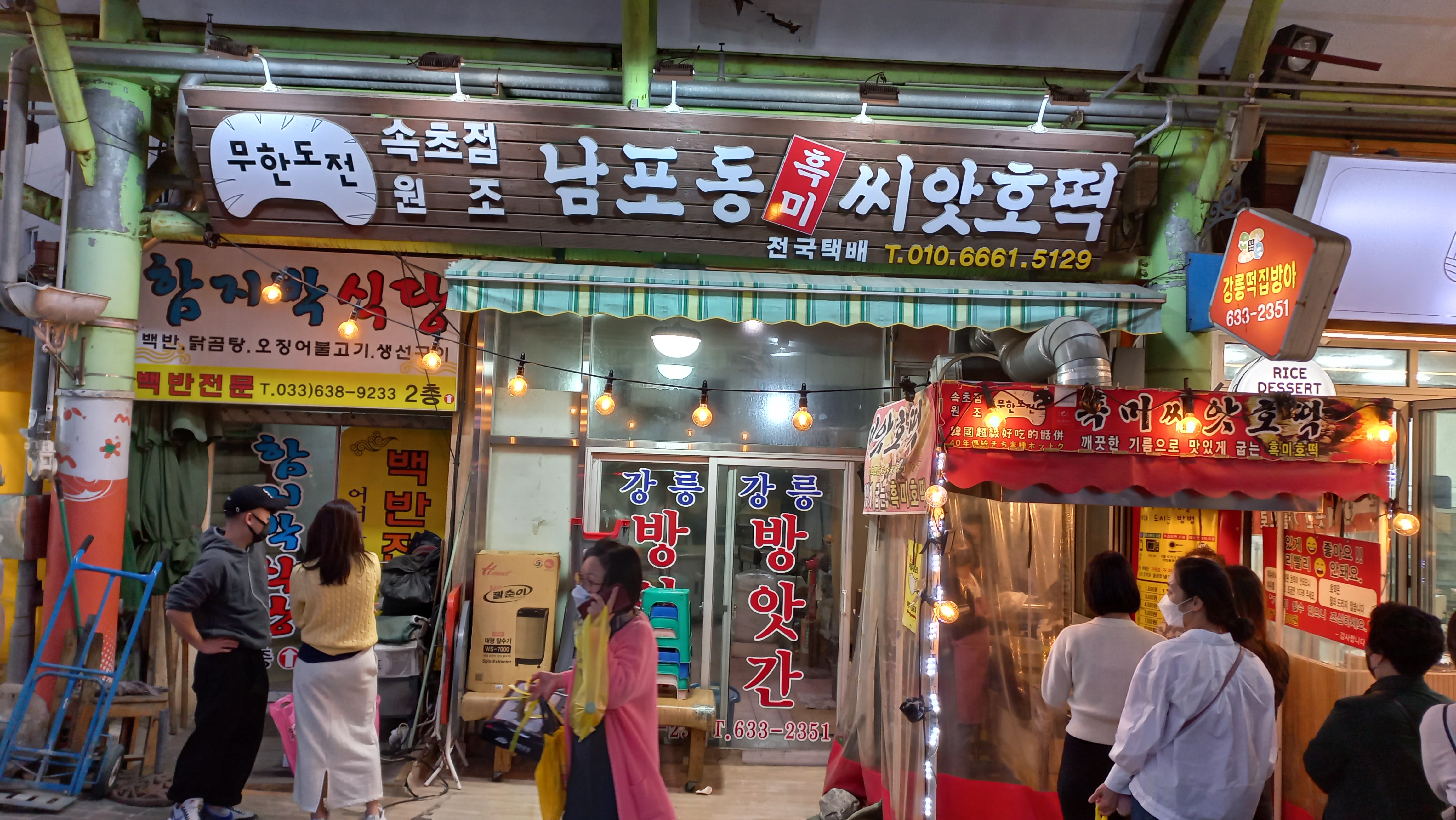 속초관광수산시장은 만석닭강정의 인기로 닭강정 골목이 형성될 정도로 점포가 많아졌습니다.