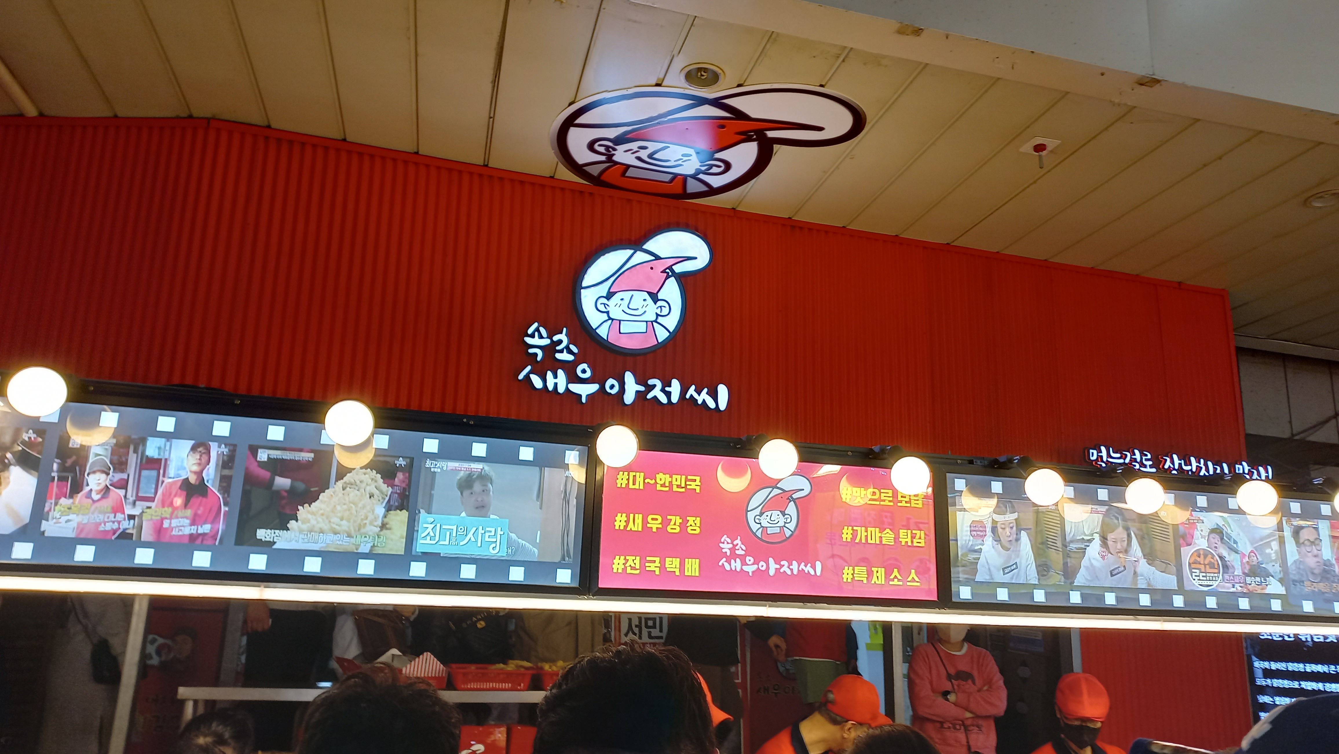 속초관광수산시장에는 홍게, 닭강정, 새우튀김, 오징어순대, 씨앗호떡 등 정말 먹거리가 풍성해서 좋습니다.