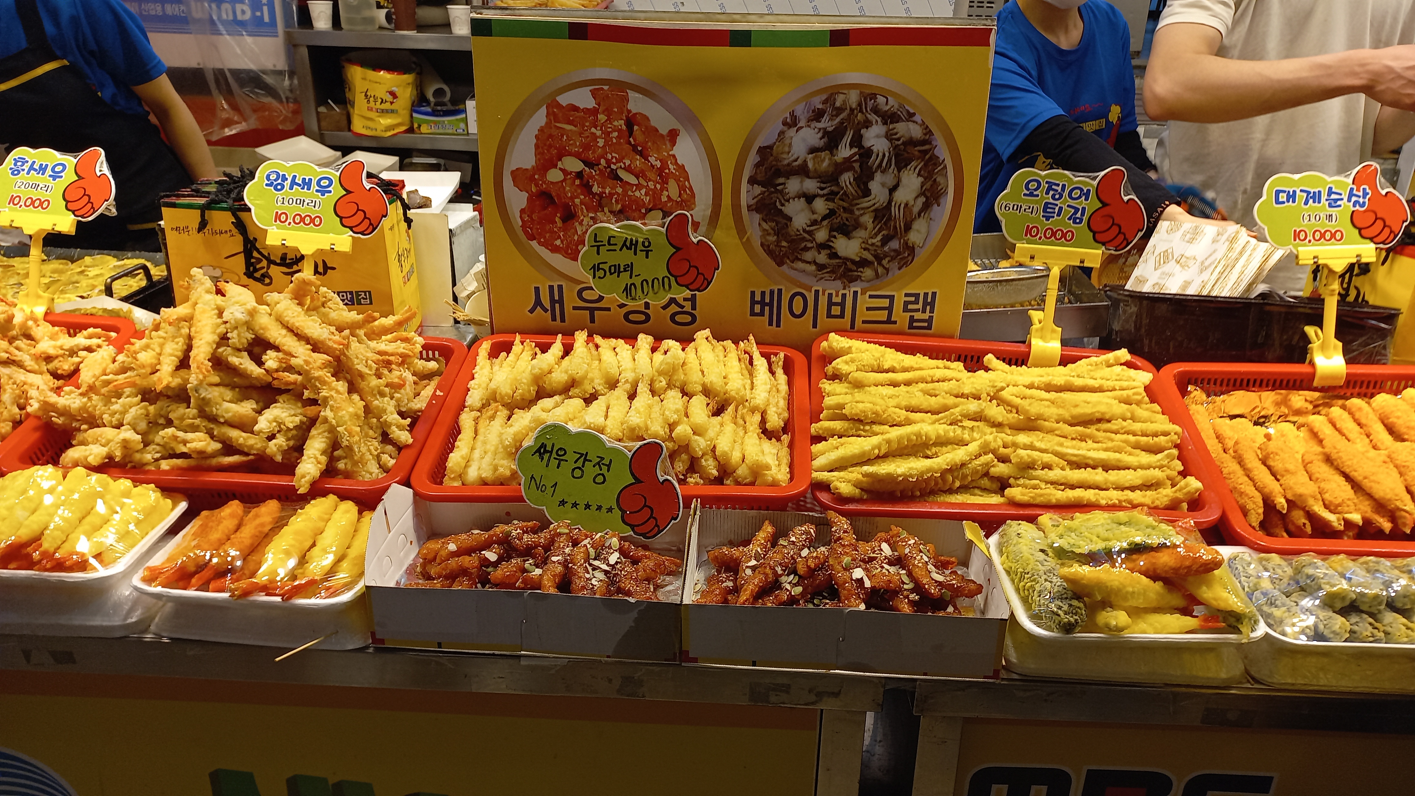 새우튀김 등 다양한 튀김종류도 속초관광수산시장의 대표적인 먹거리입니다.