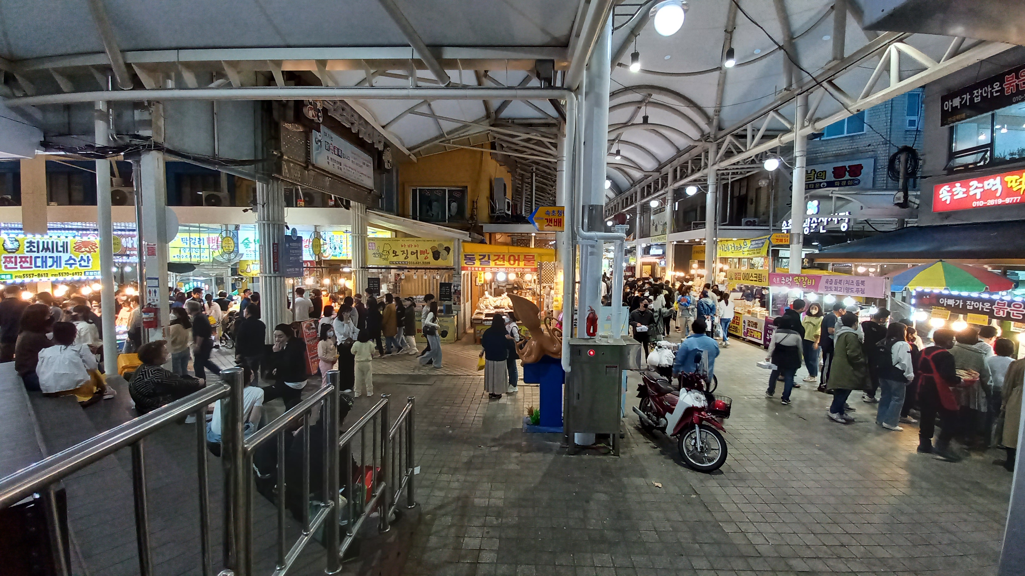 청과와 순대, 닭강정, 회, 수산물 등이 주로 거래되며, 품목에 따라 전문화된 골목들이 있으며, 대형 주차장 등이 마련되어 있어 시장 이용이 편리합니다.