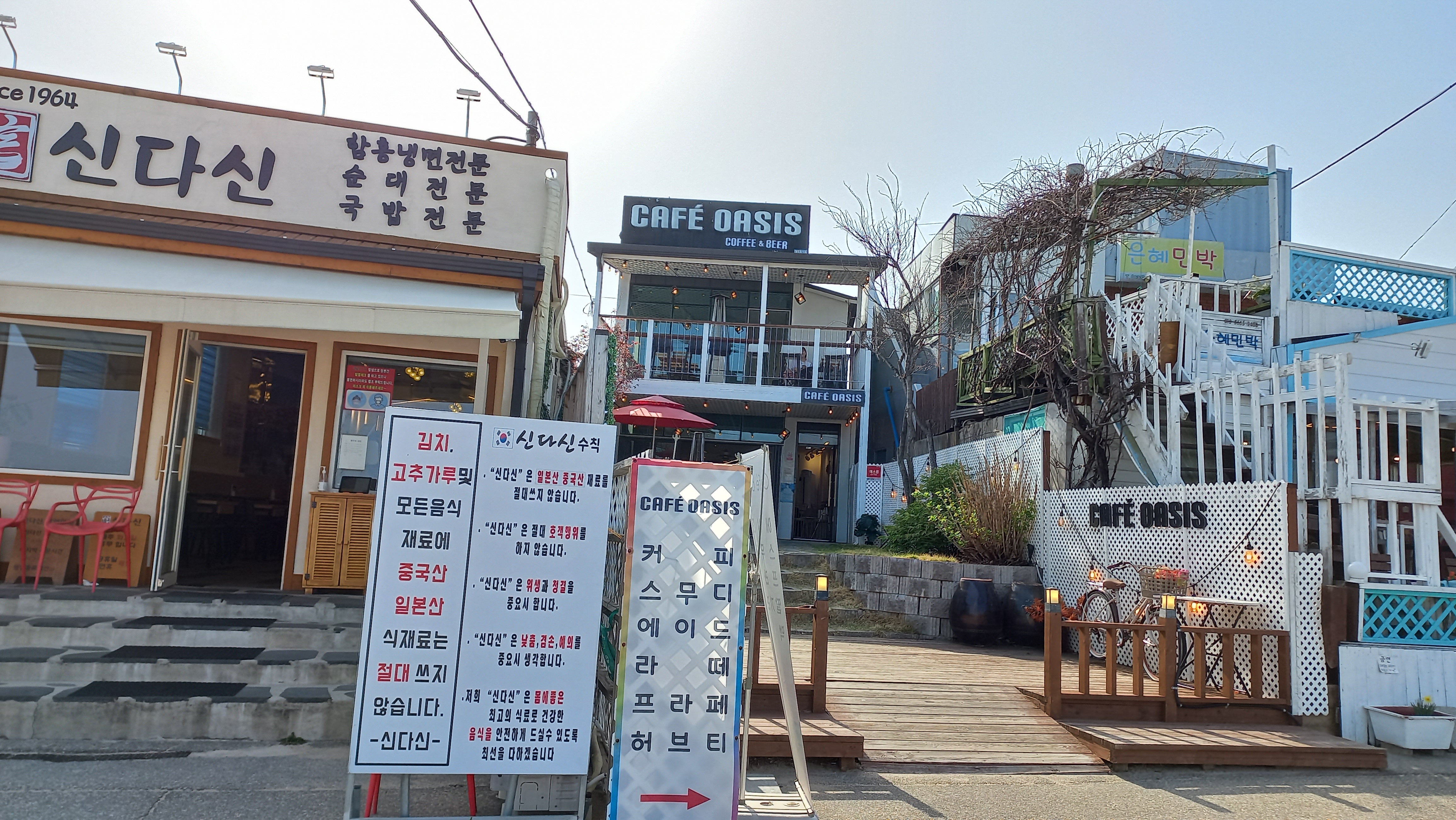 카페 오아시스는 아바이마을 주차장이 있는 곳, 아바이마을 동상이 있는 곳에 위치합니다.