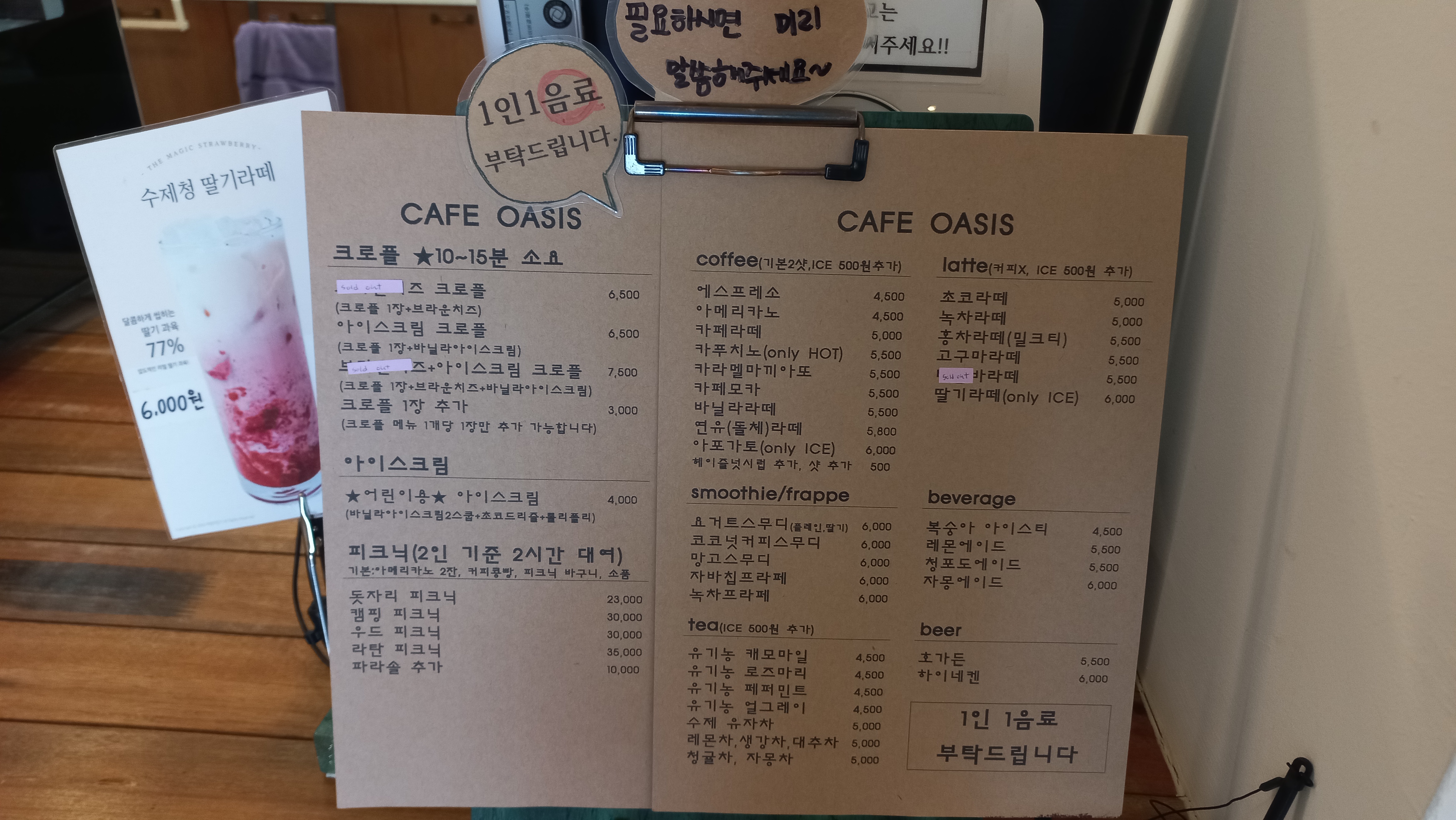 작은 카페지만 가격은 예상보다 비싼 편이네요.