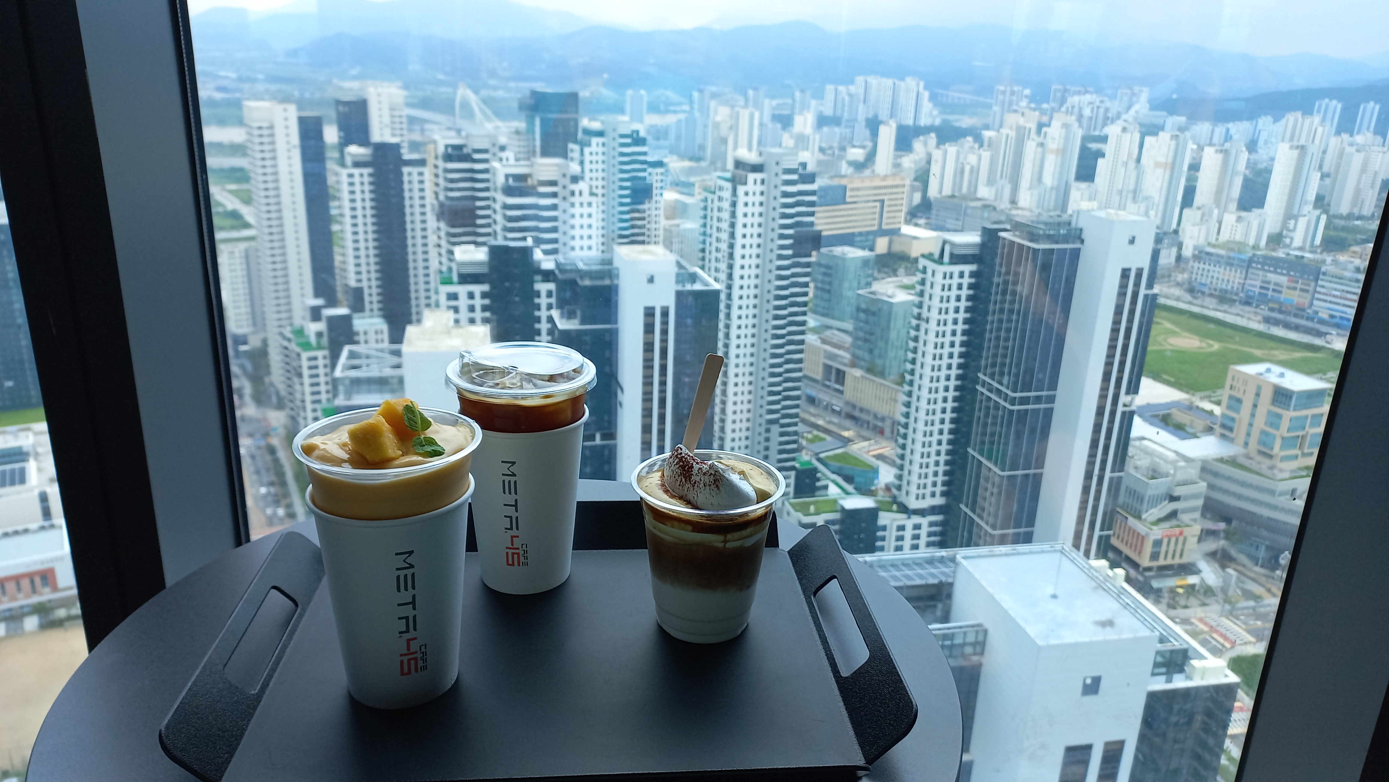 카페 메타45는 세종시에서 가장 높은 45층(200m)에 있는 카페로 세종시 스카이뷰를 감상하면서 커피 한 잔의 여유를 즐길 수 있는 곳입니다.