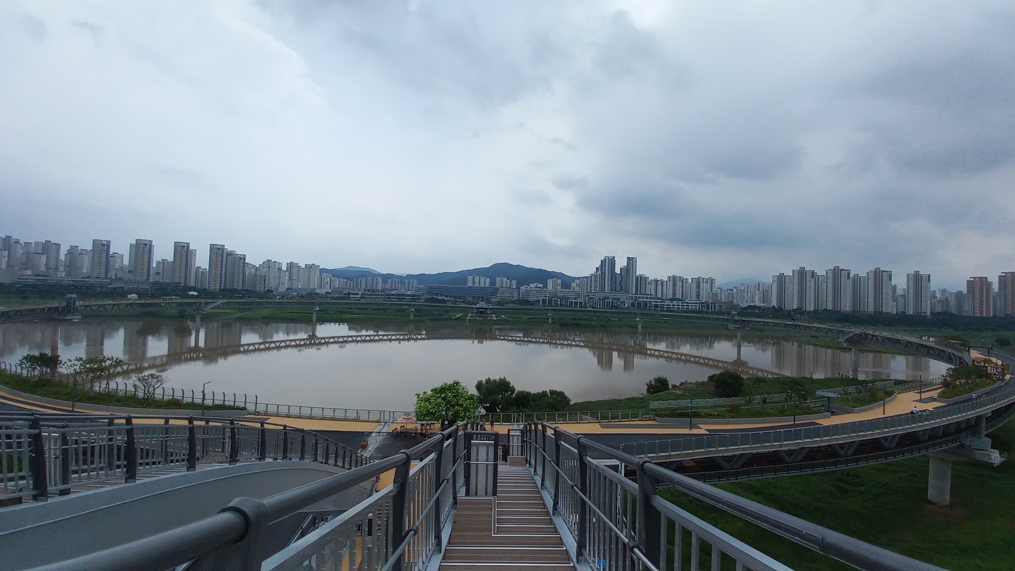 국내 최초로 1100억 여원을 들여 복층(보행, 자전거길) 일면 강관 트러스트로 지어졌고, 세종대왕이 한글을 반포한 1446년을 기념하여 폭 12m, 둘레를 1446m로 정한 한글 'ㅇ'(이응다리)을 모티브로 만들었습니다.