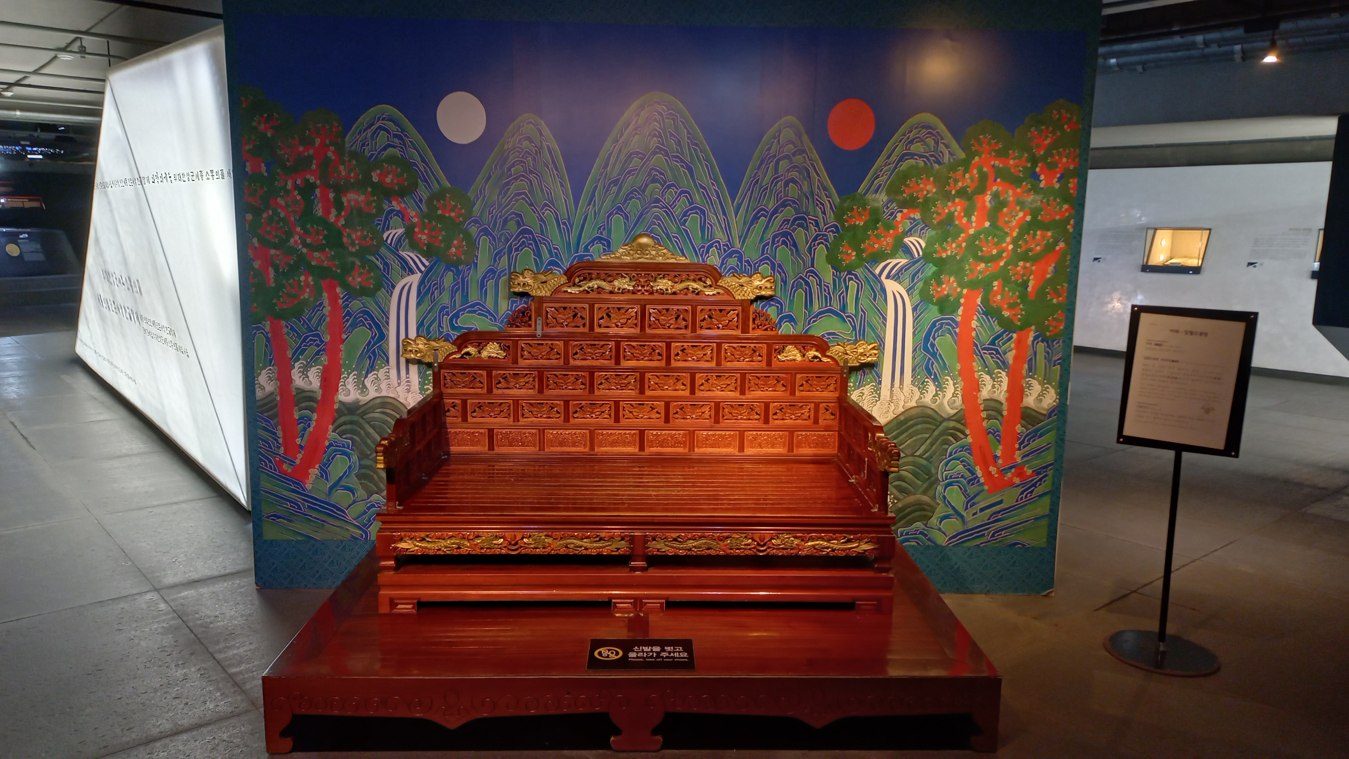 어좌는 임금님이 앉는 의자이며, 그 의자 뒤에는 항상 일월오병병을 배치했습니다.