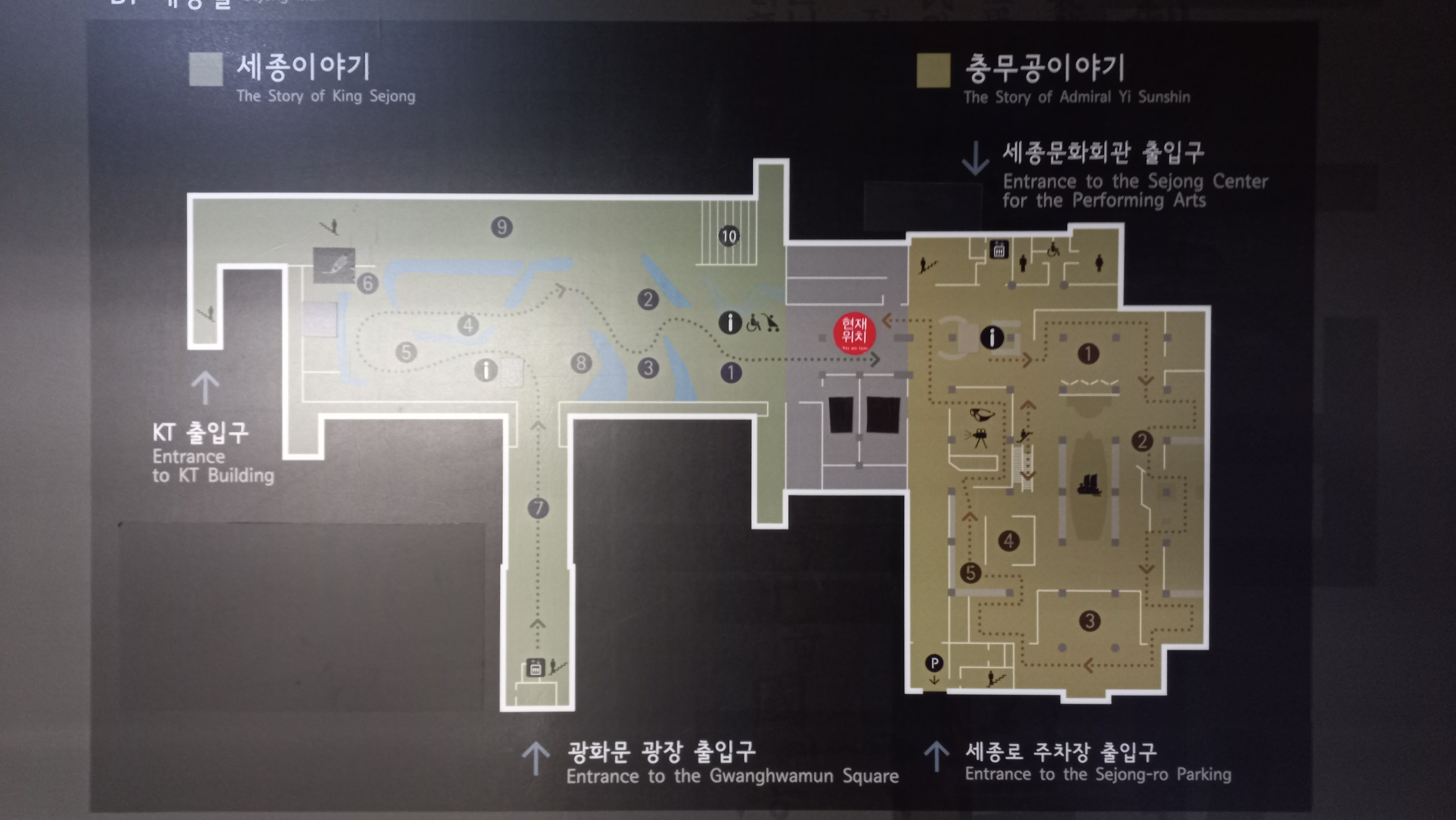 광화문 세종이야기와 충무공이야기 전시관 안내도