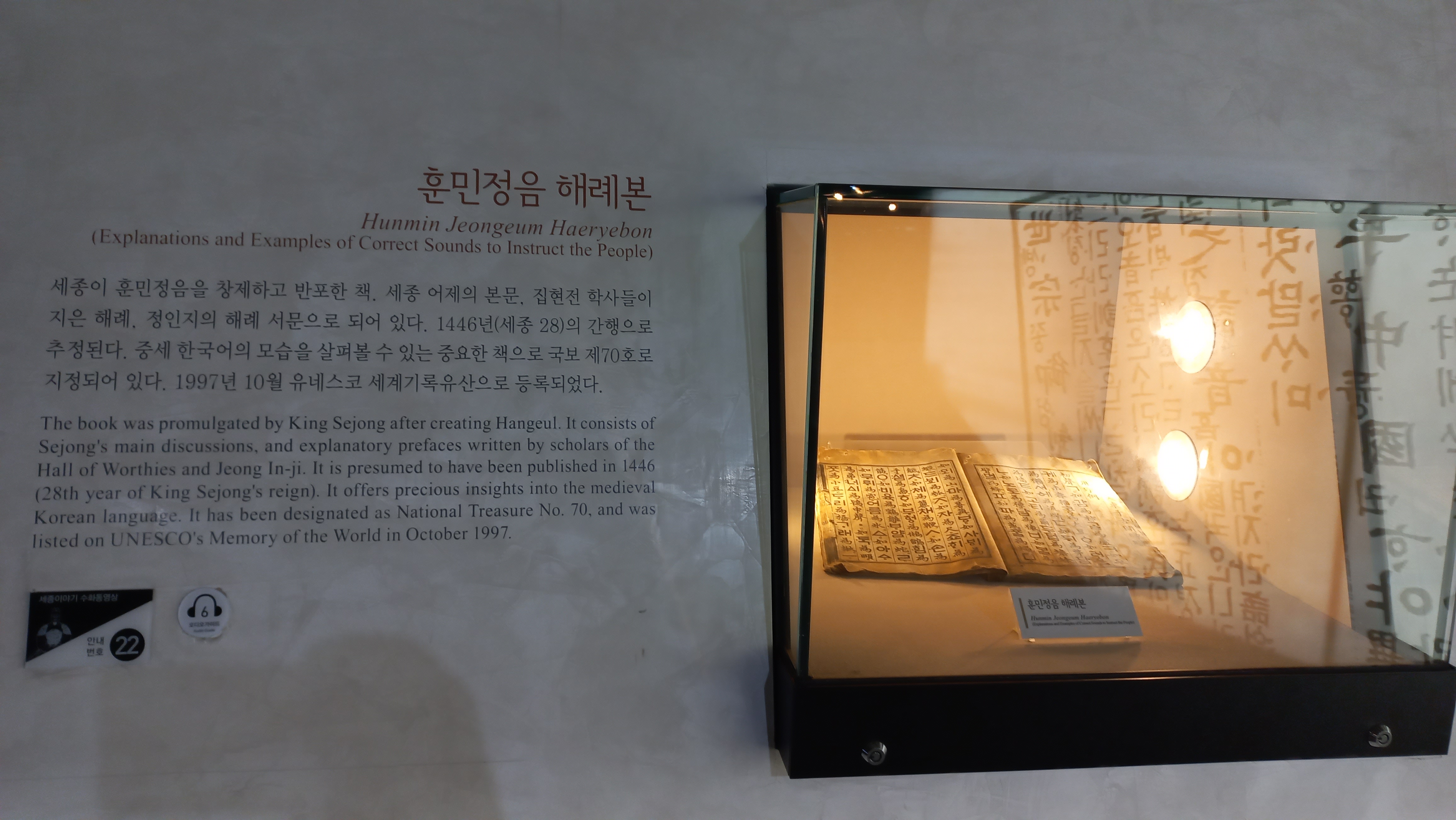 세종대왕이 훈민정음을 창제하고 반포한 책으로 세종 어제의 본문, 집현전 학사들이 지은 해례, 정인지의 해례 서문으로 되어 있습니다.