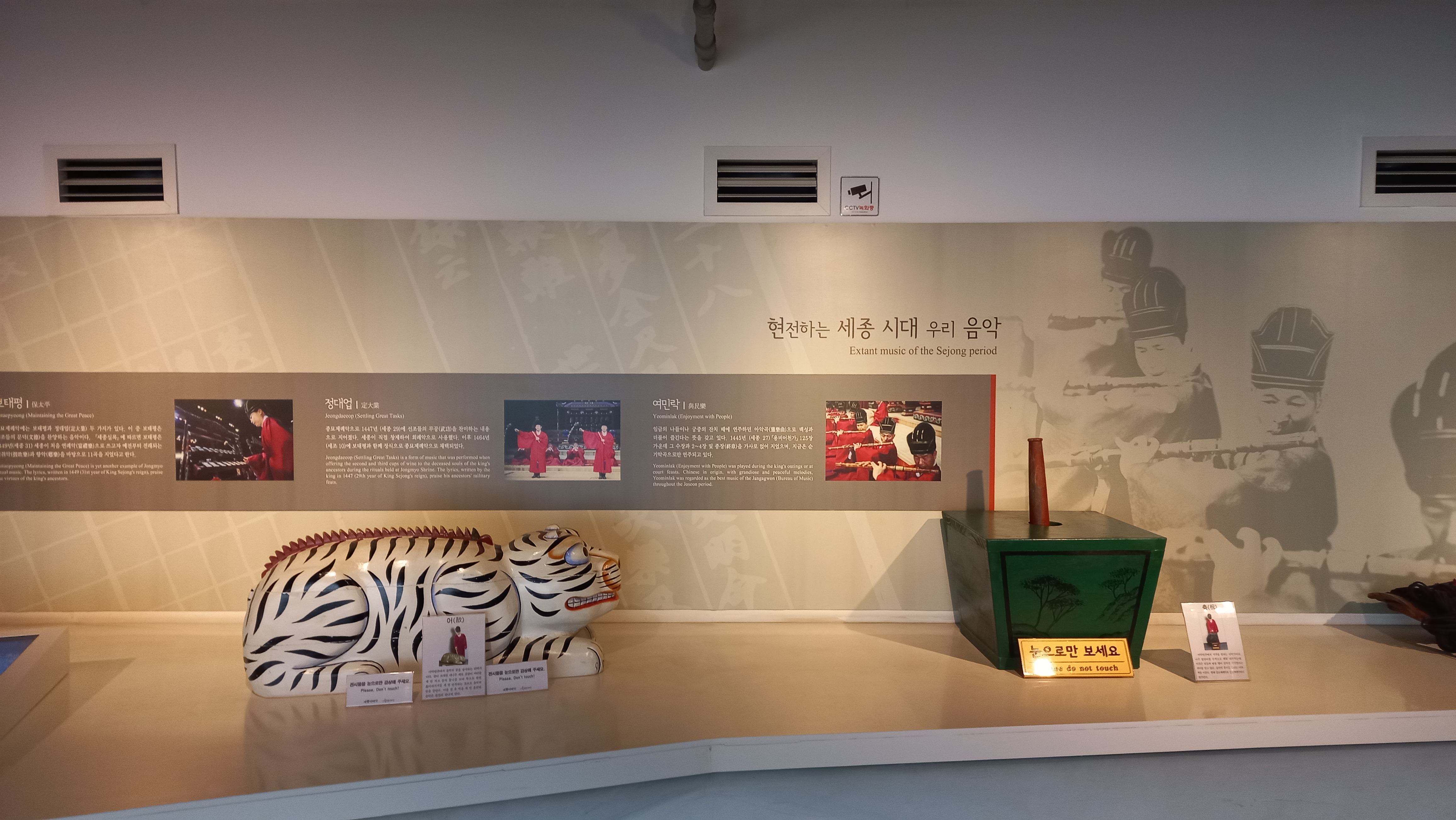 보태평(종묘제례악, 왕조의 문덕을 찬양하는 음악), 정대업(종묘제례악, 선조들의 무공을 찬미하는 음악), 여민락(임금의 나들이나 궁중의 잔치 때에 연주하던 아악곡) 등