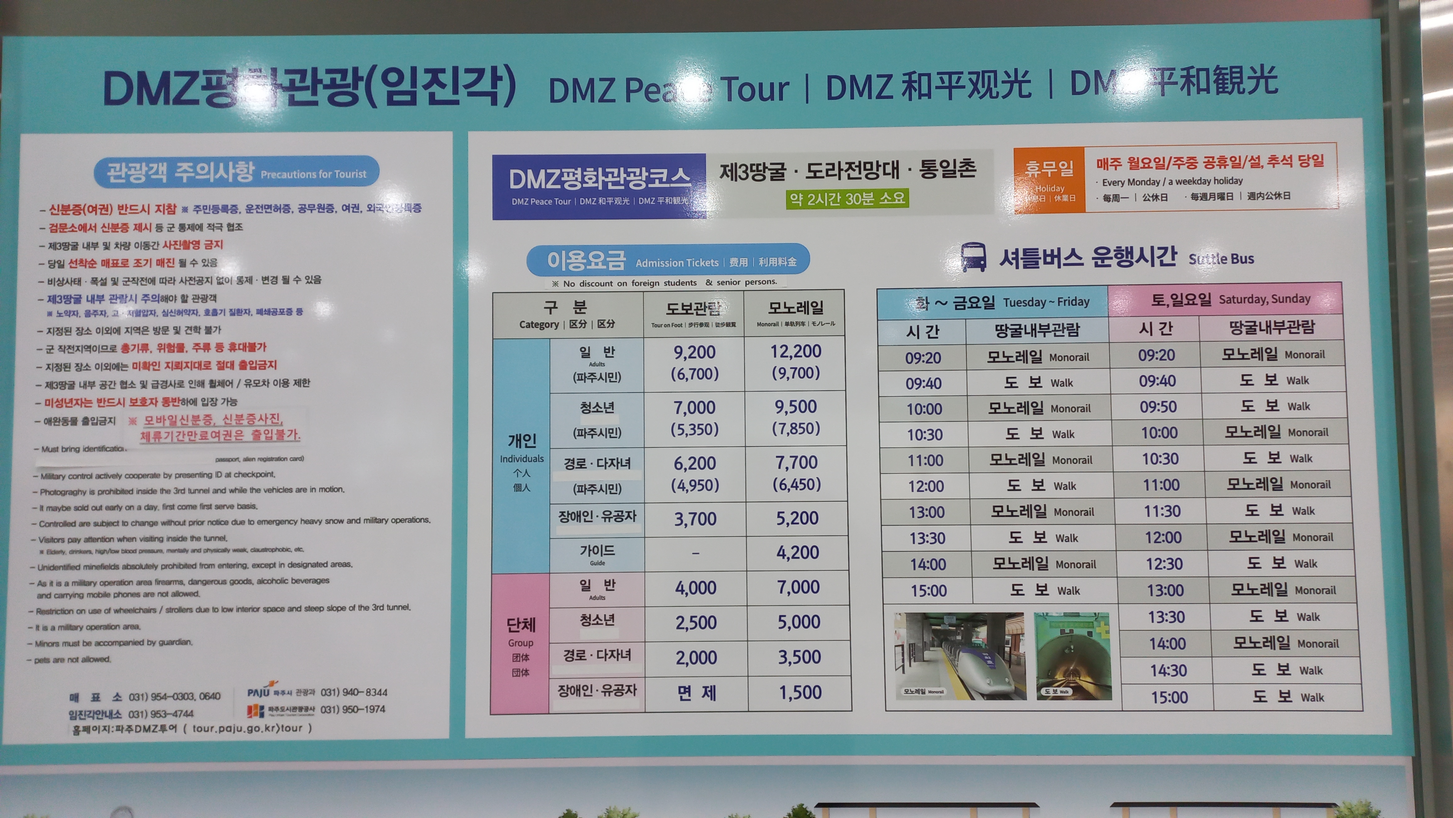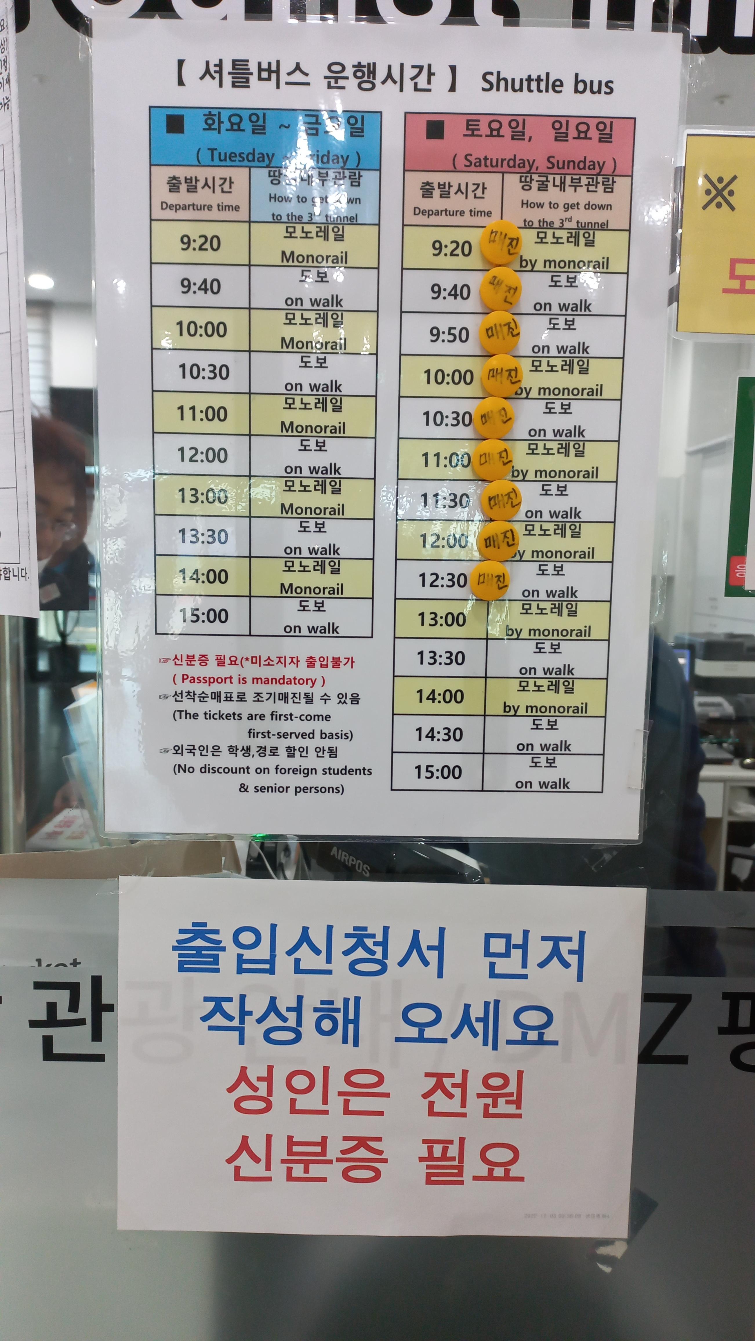 (모노레일은 제3땅굴 들어갈 때 타며, 불편하다면 모노레일 이용 권장)