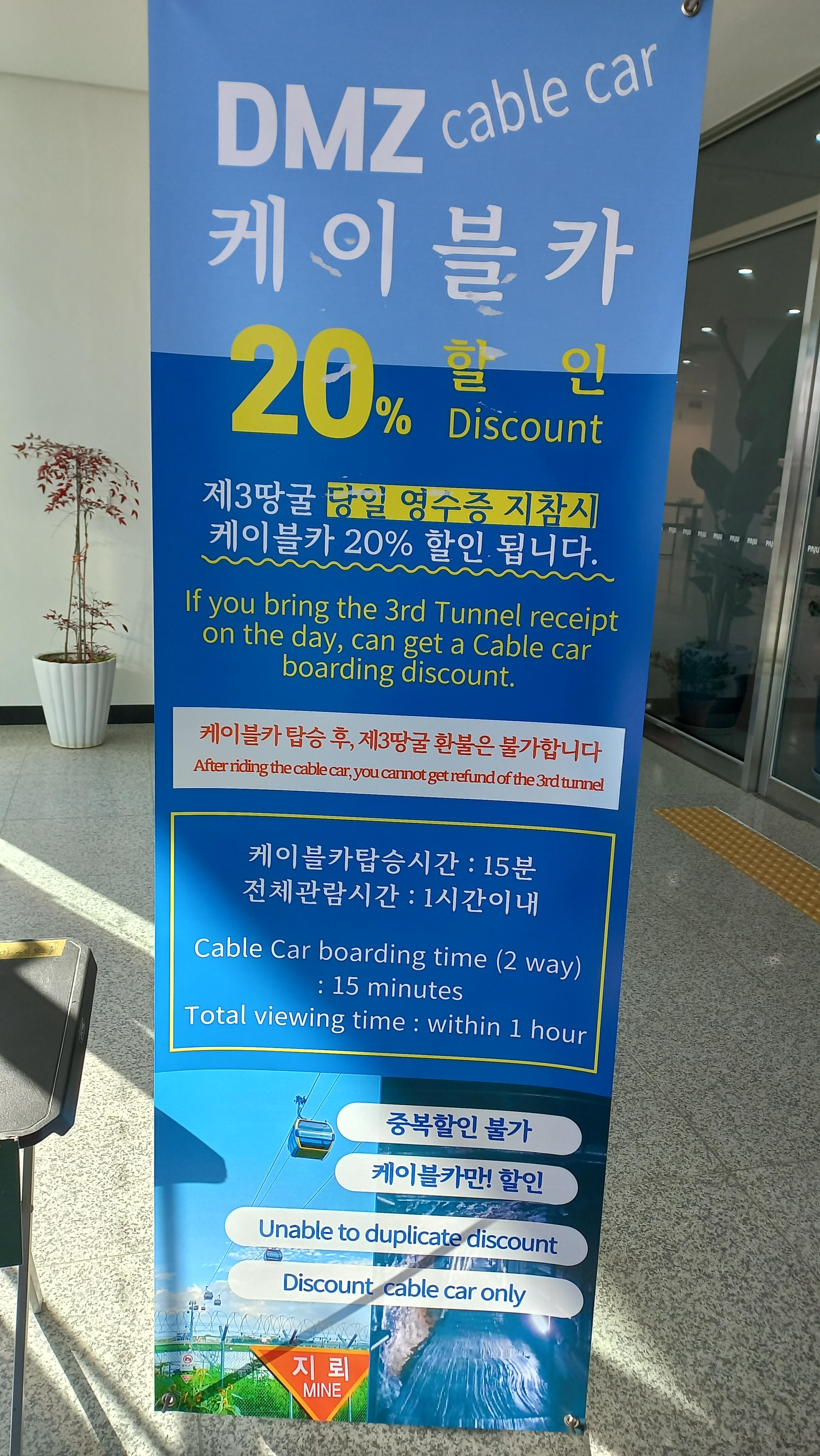 파주 DMZ평화관광(안보관광)을 이용하면 DMZ 케이블카가 20% 할인됩니다.