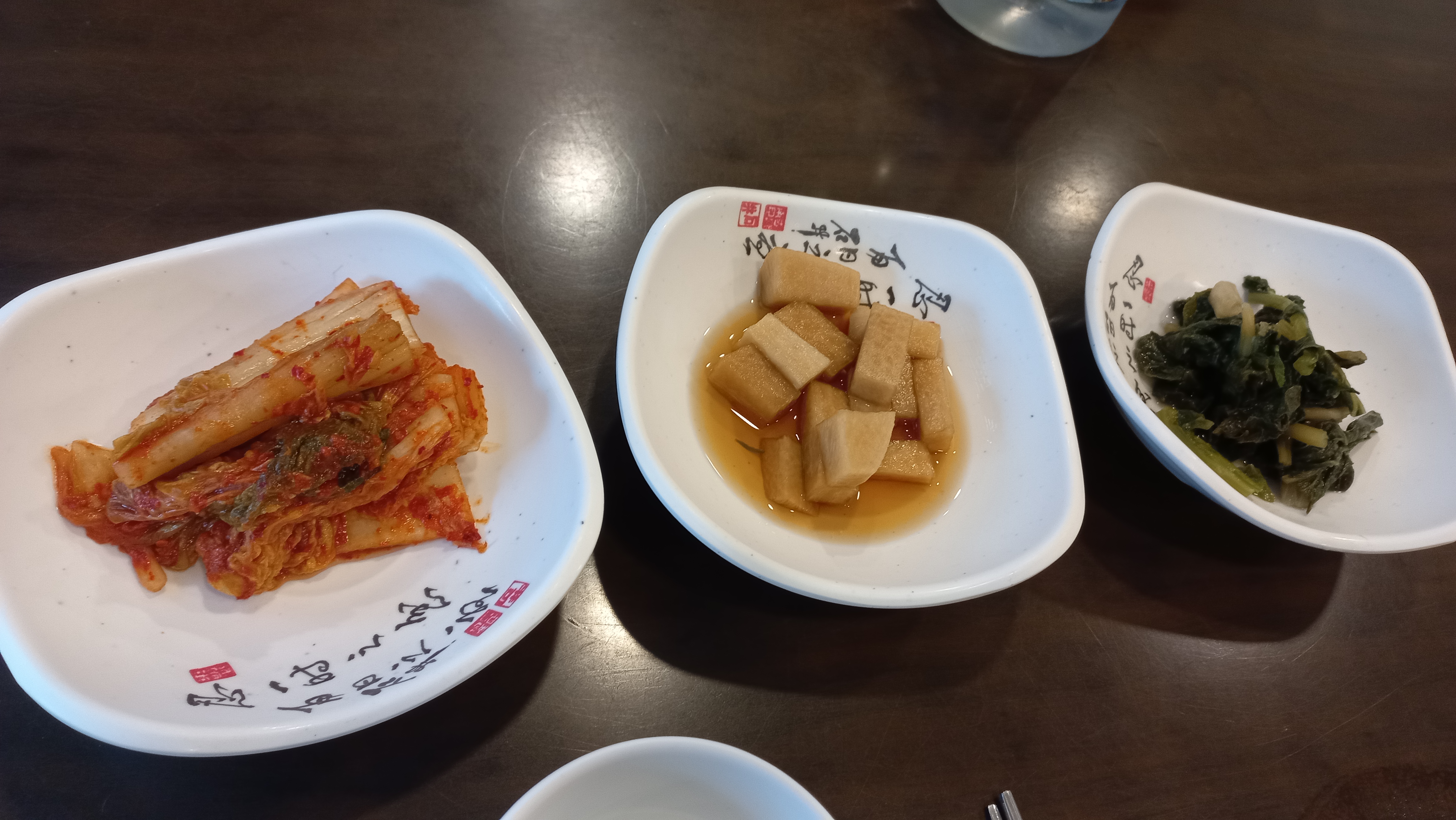 반찬은 3가지, 순무 절임과 김치, 갓김치가 반찬으로 나옵니다.