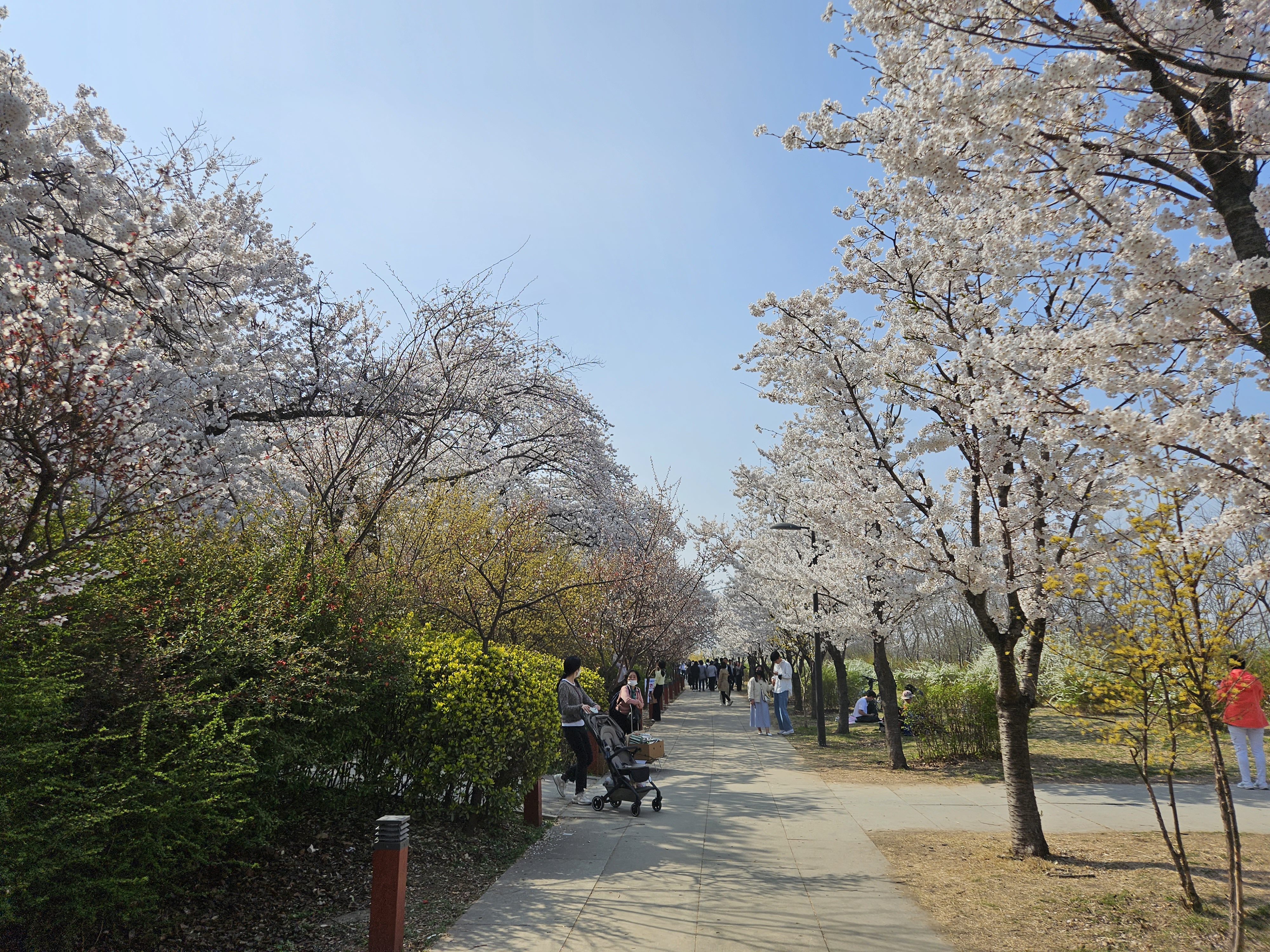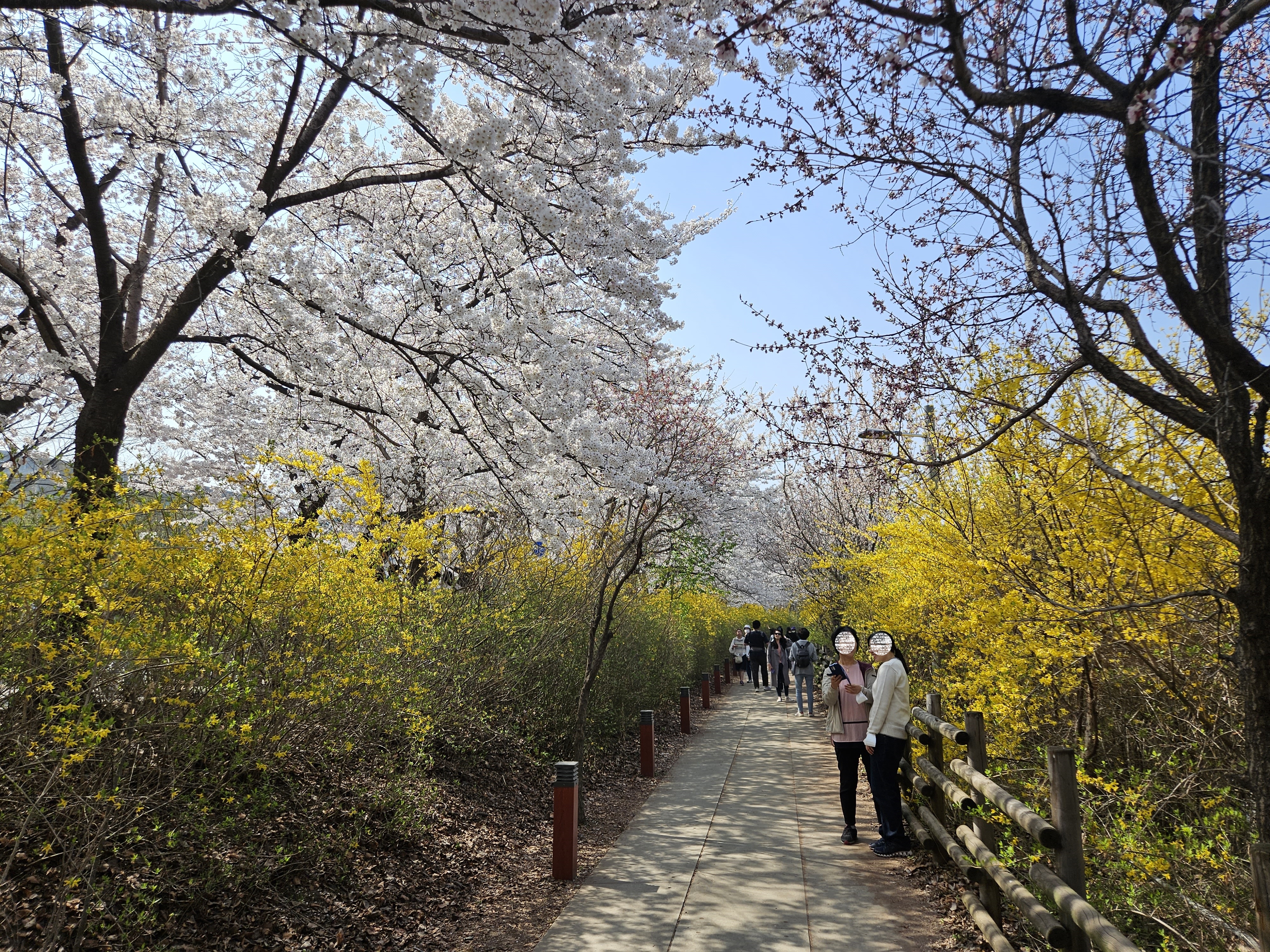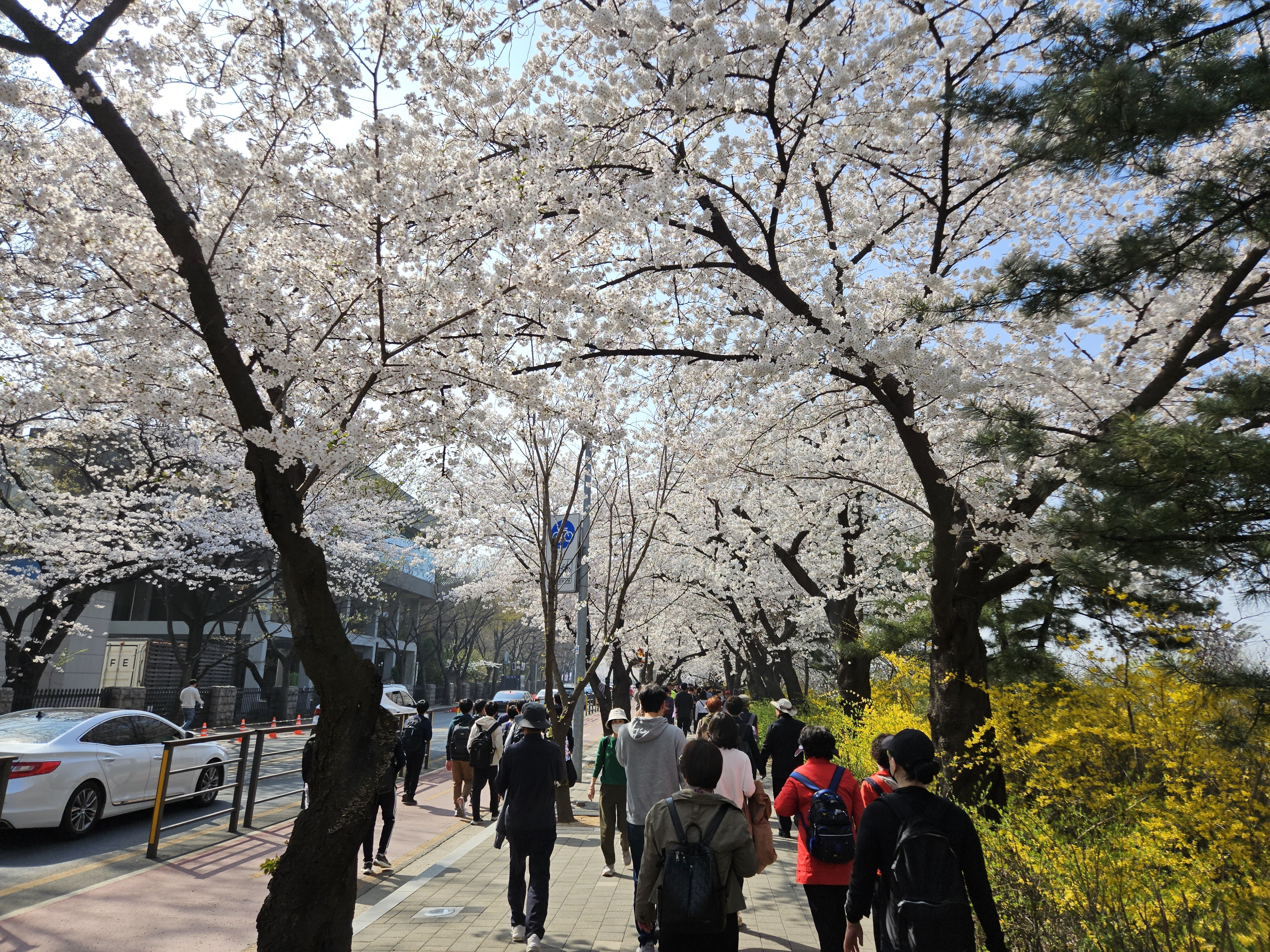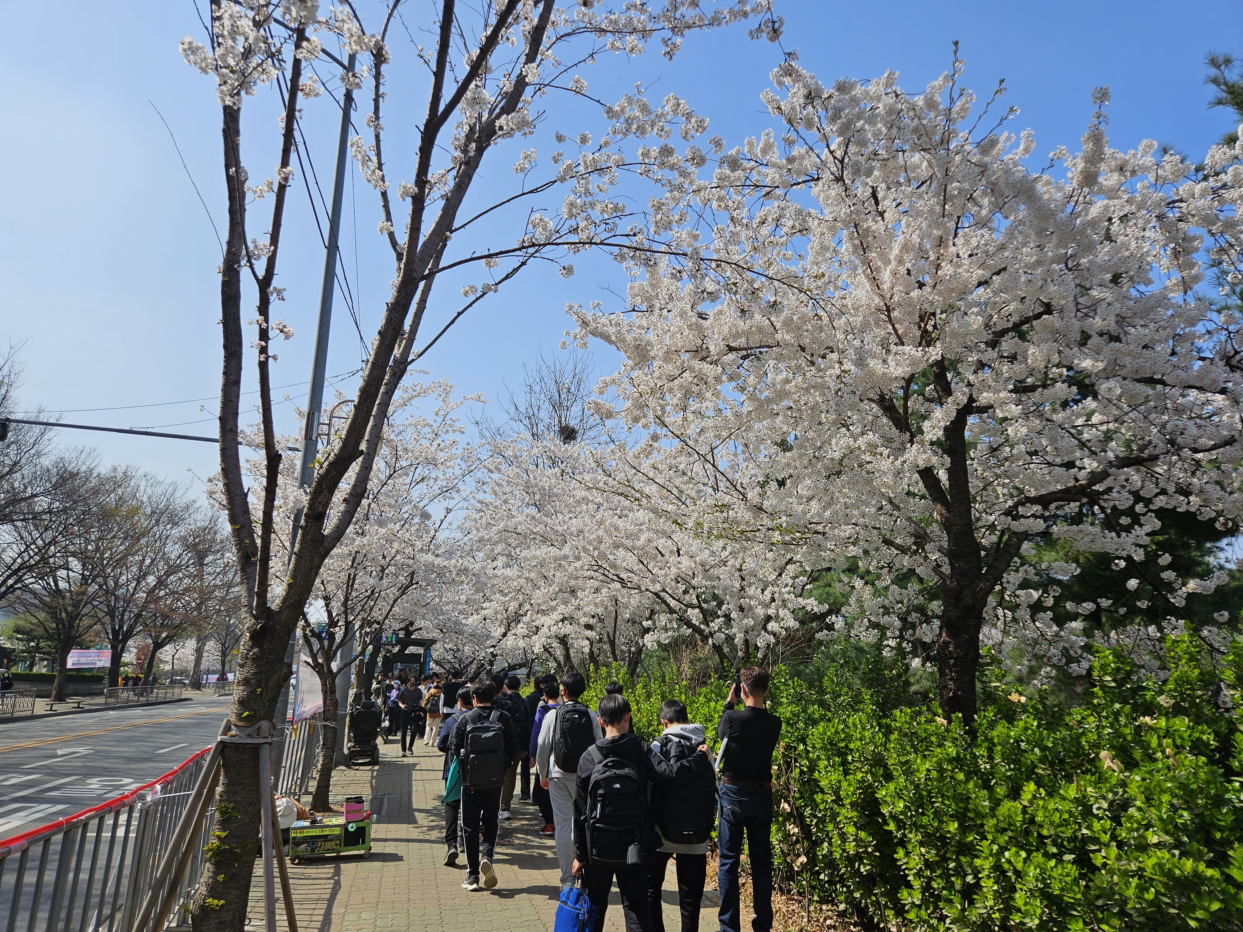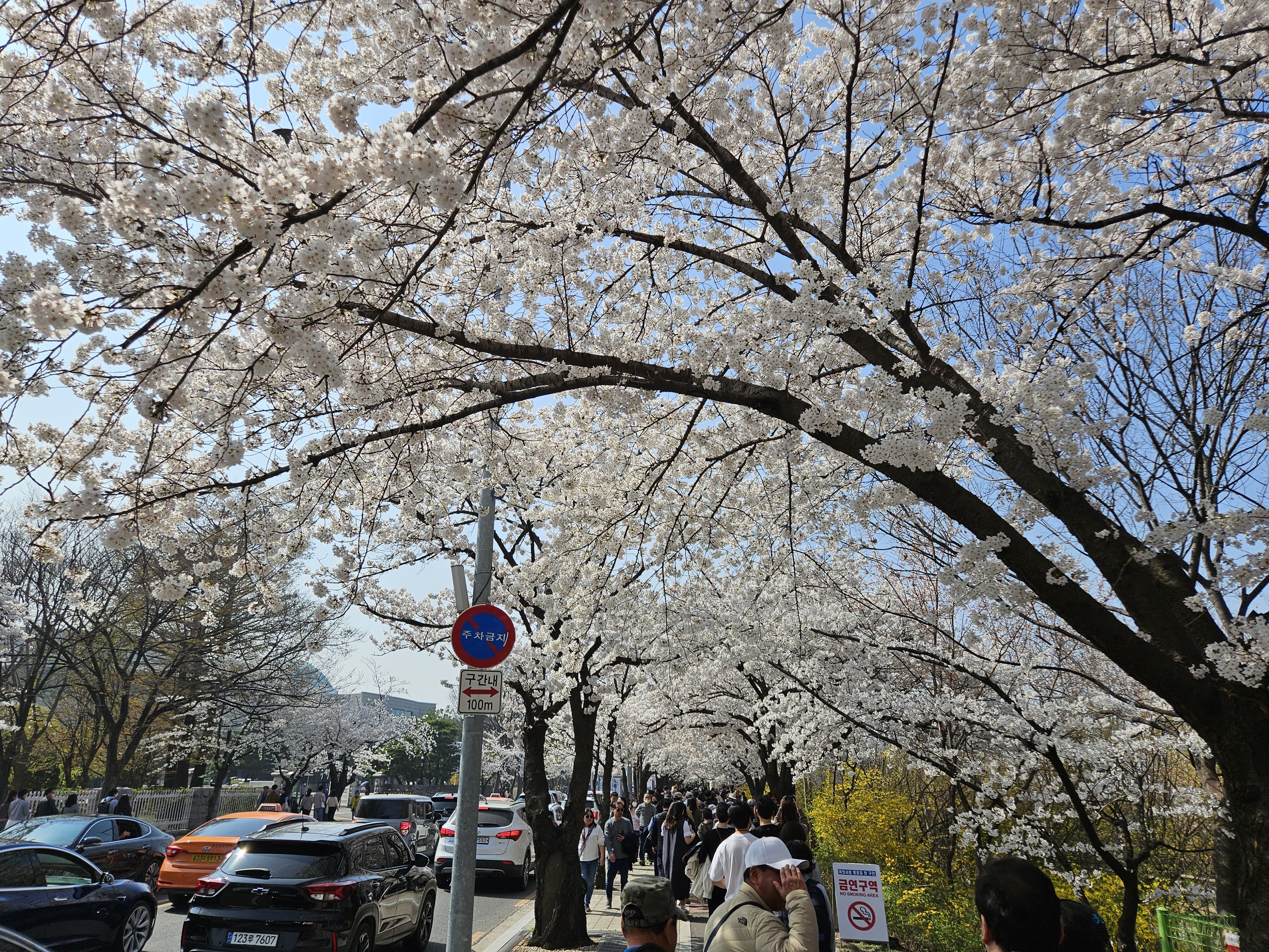 금요일 오후, 평일인데도 만개한 벚꽃을 구경하기 위해 인산인해입니다.
