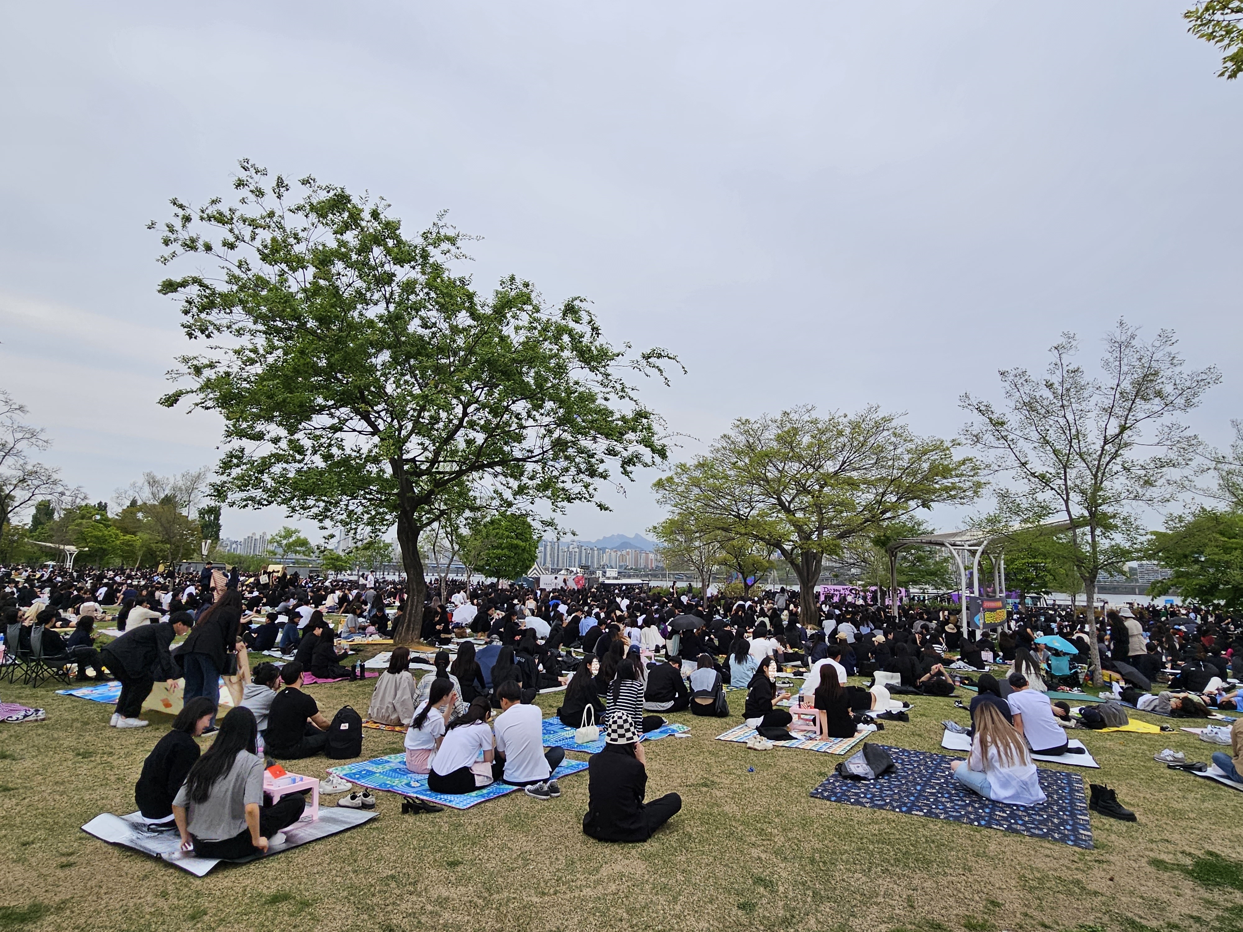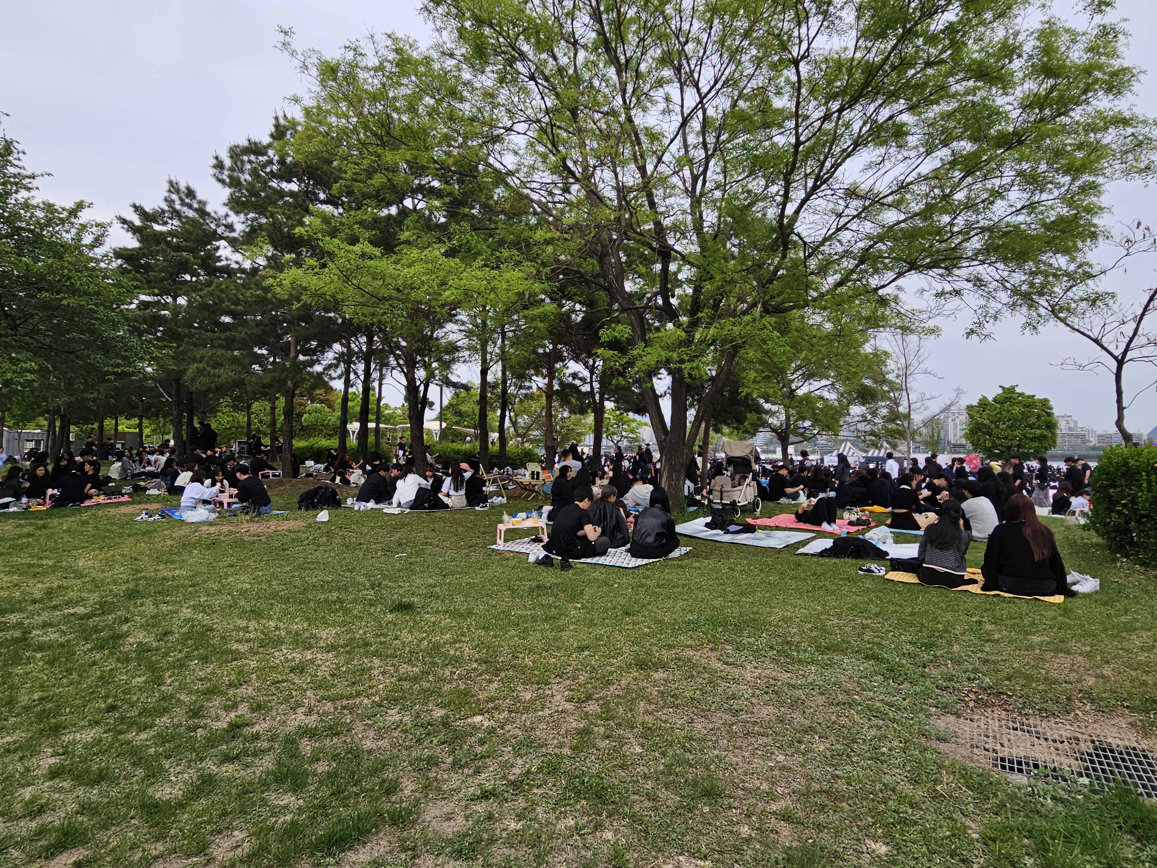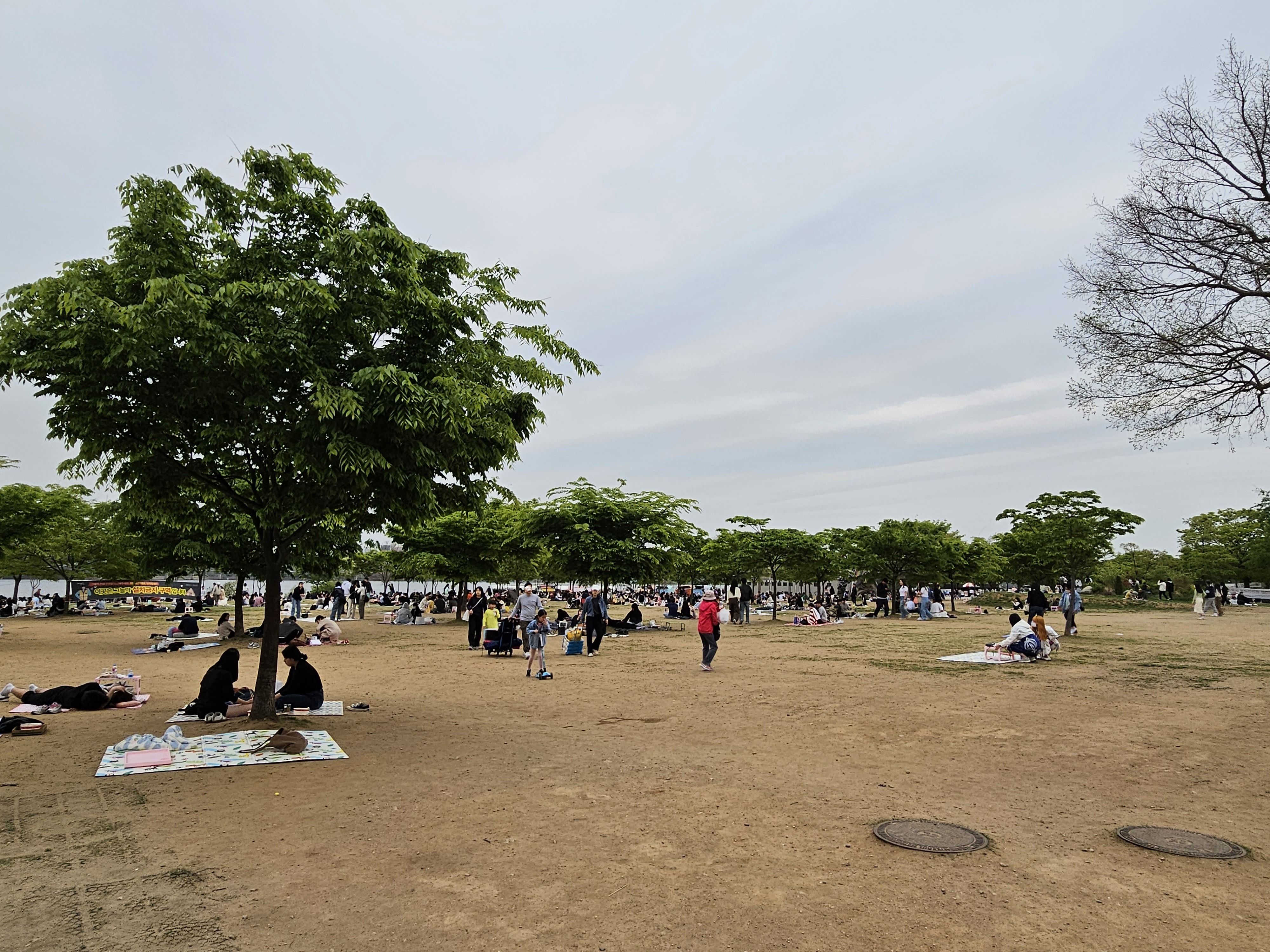 나무 그늘아래엔 돗자리를 펴고 휴일을 즐기는 모습이 무척 정겹습니다.
