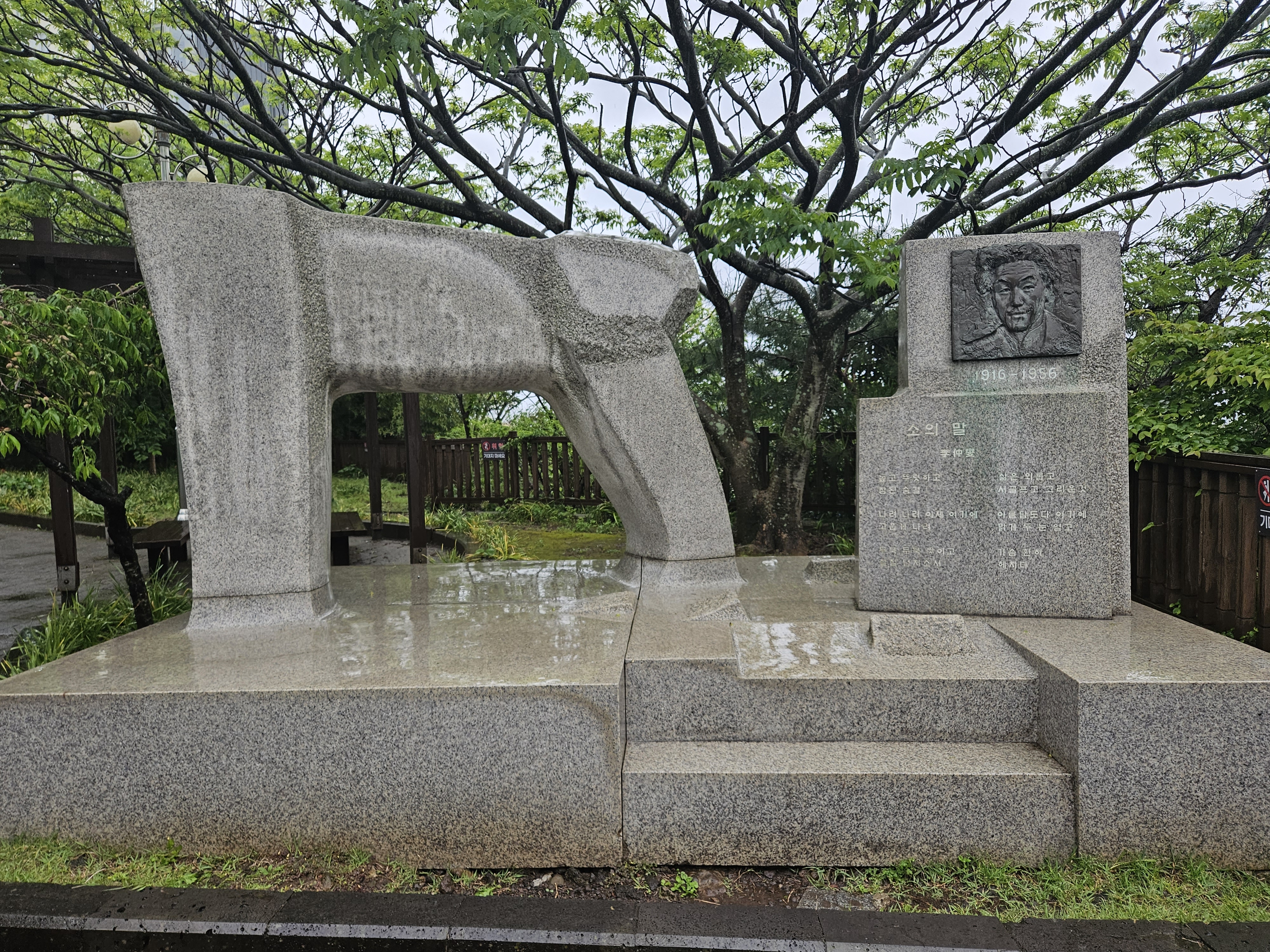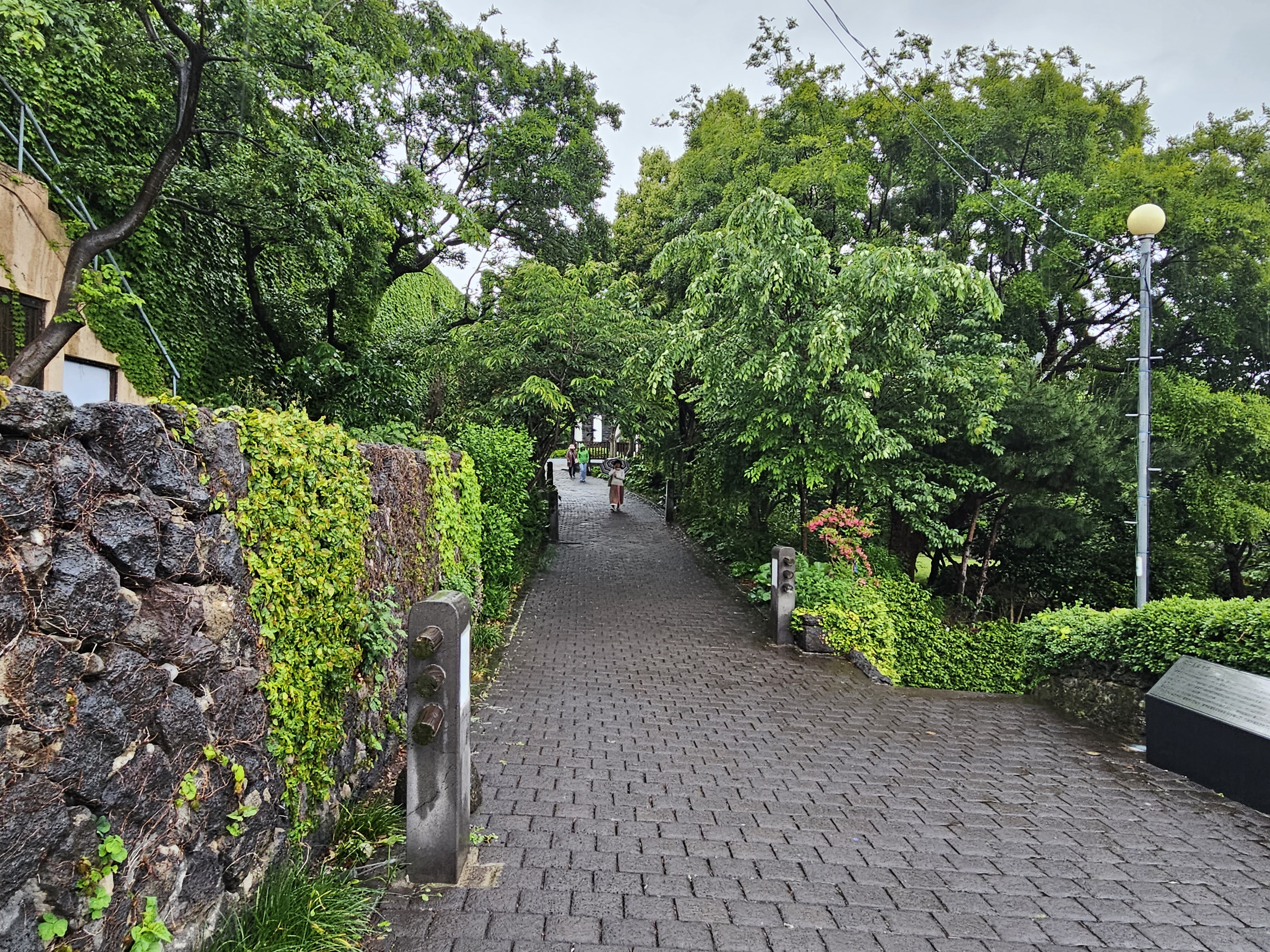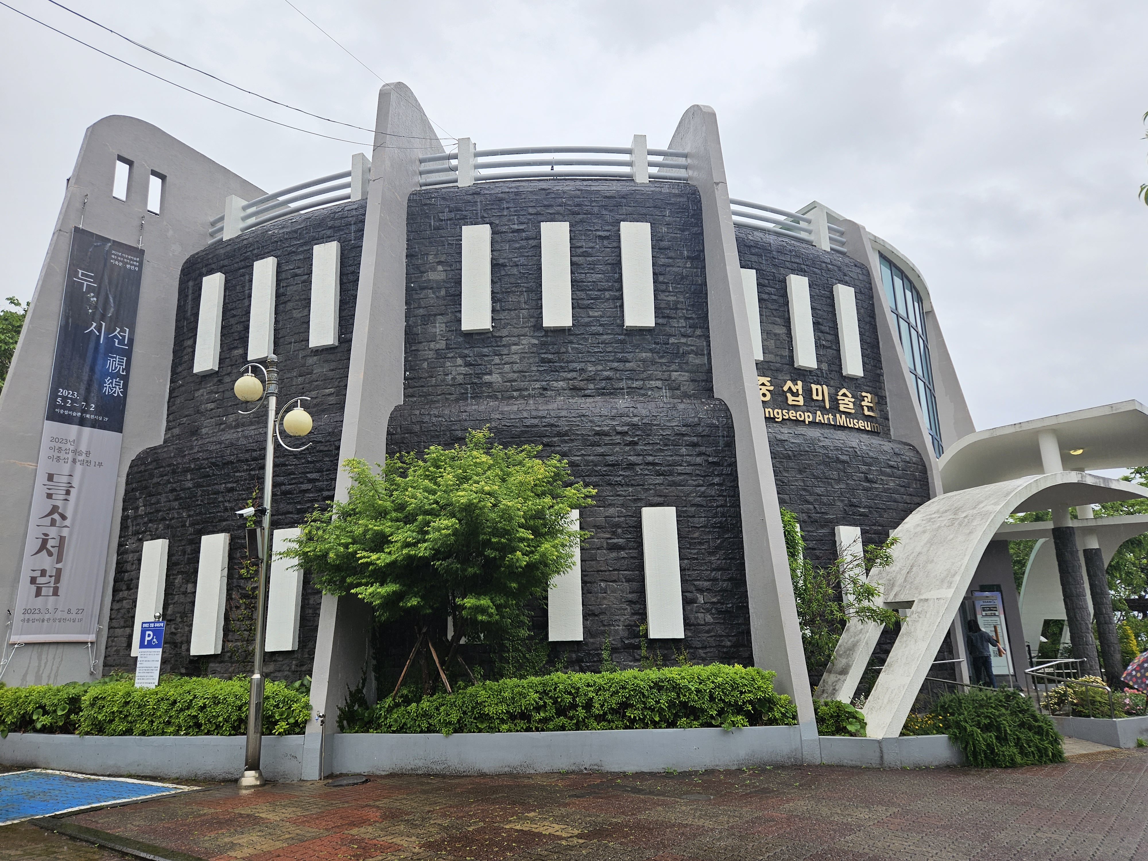 비가 내리고 있는 가운데 이중섭 미술관 진입로는 촉촉이 젖어 있습니다.