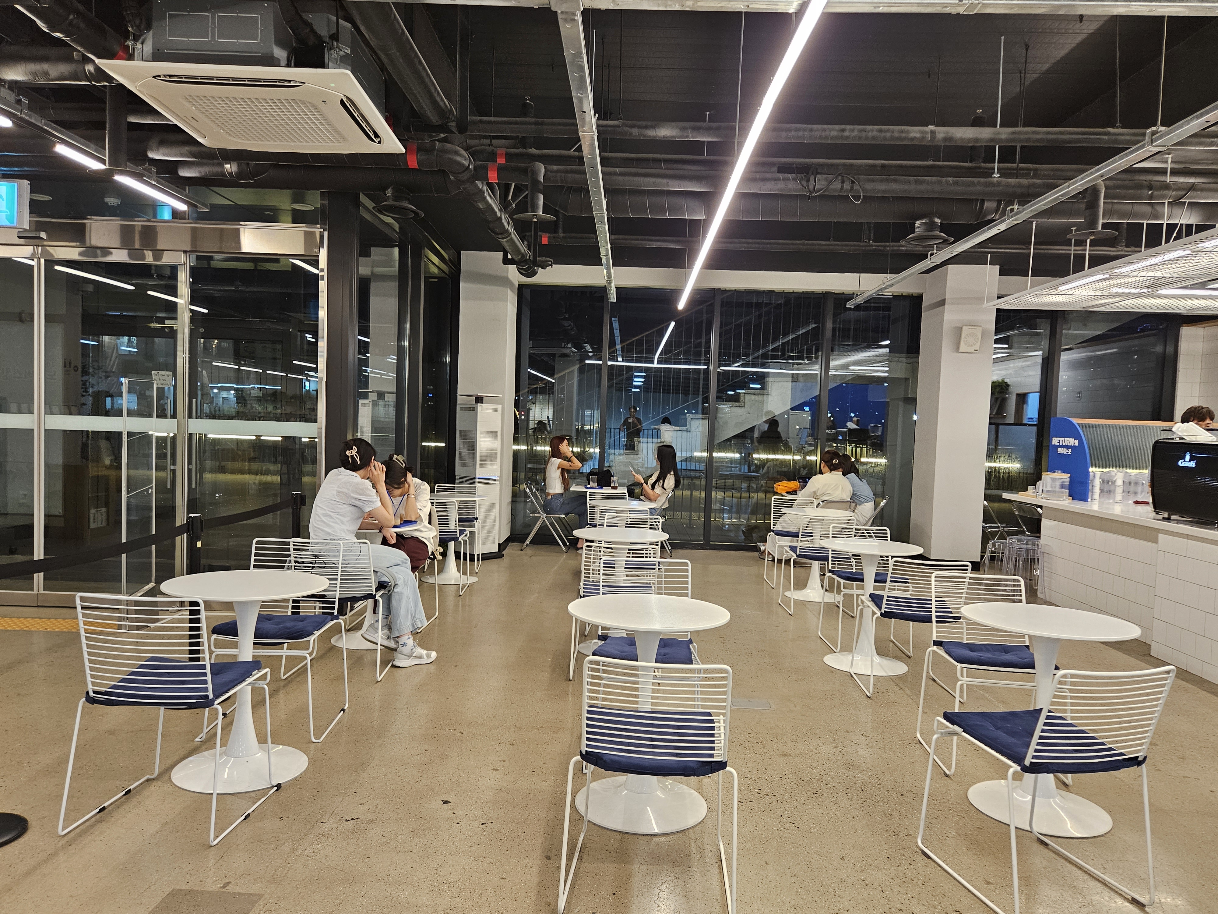 1층엔 커피 반입이 금지되어 있어서 2층 라운지에서 마시고 구경하면 됩니다.