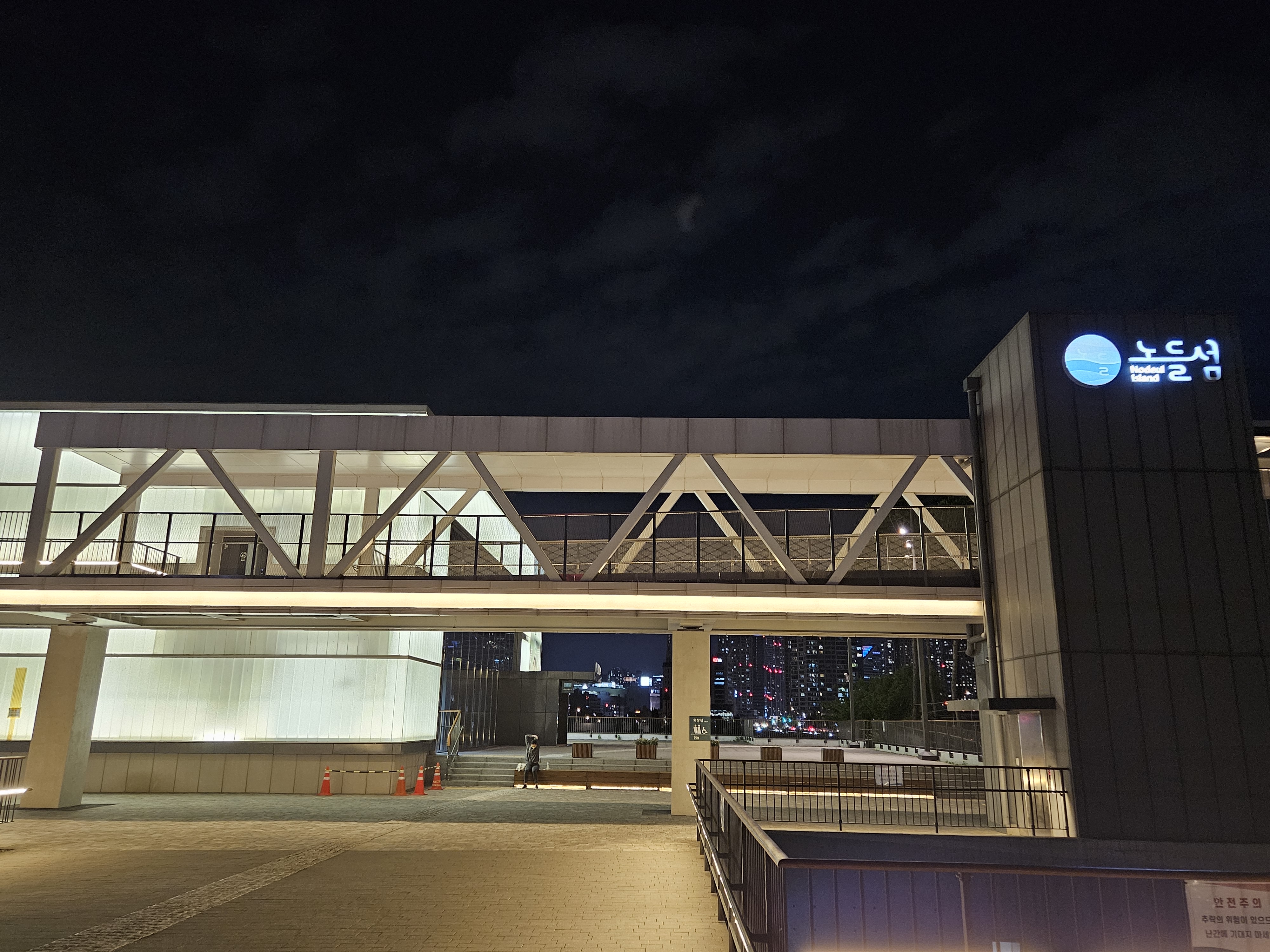 노들섬은 한강대교 중간에 위치한 타원형 모양의 한강 섬으로 백로가 놀던 돌이란 의미의 노돌에서 유래했다고 합니다.