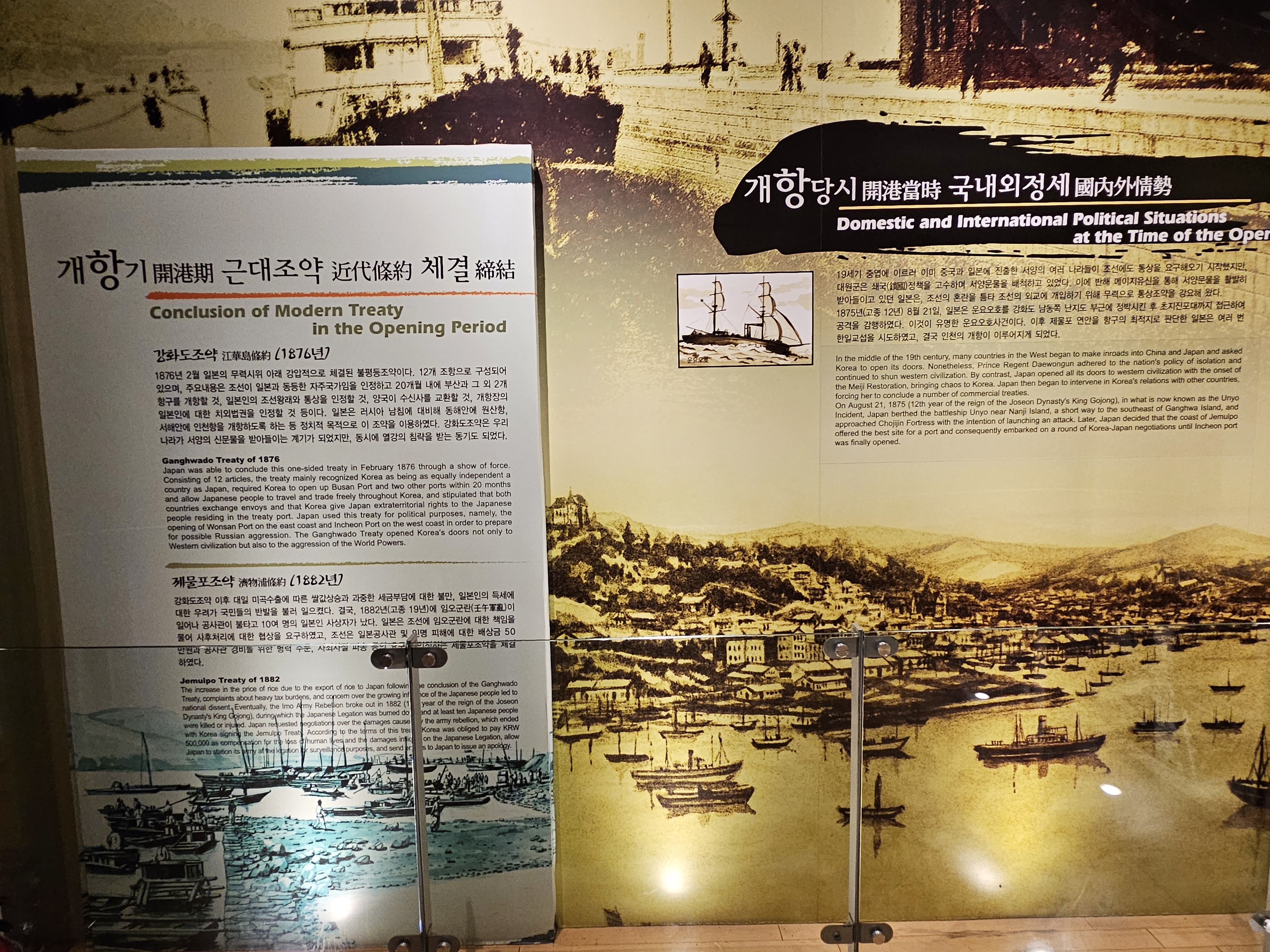 이때 부산과 그 외 2개(인천항, 원산항)의 항구를 개방, 일본인의 조선왕래와 통상 인정, 수신사 교환, 개항장의 일본인에 대한 치외법권 인정 등이 담겼습니다.