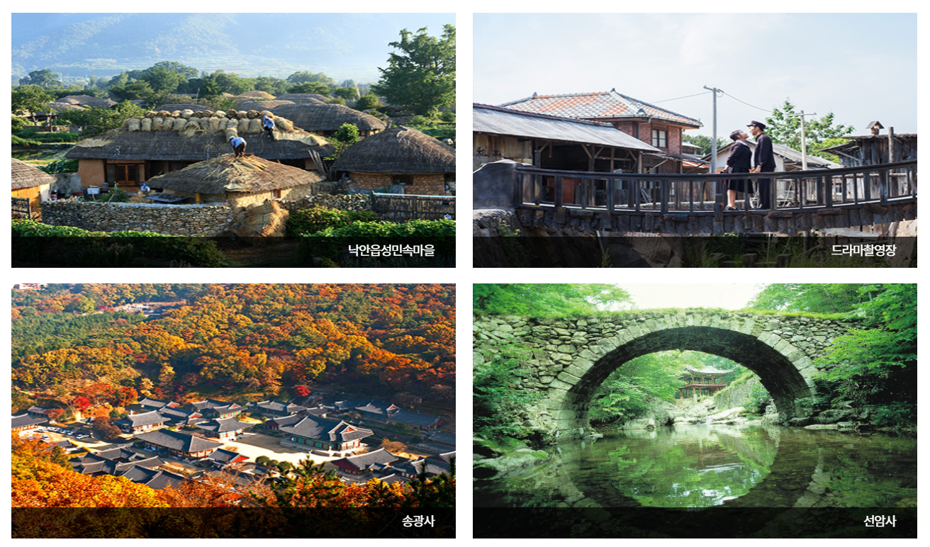 순천시 전역은 유네스코 생물권 보전 지역 등재, 람사르 습지도시 인증, 2020 동아시아 문화도시 지정을 받는 등 세계 100대 생태관광지이자 세계 5대 연안습지인 순천만습지, 유네스코 세계문화유산인 선암사, 대한민국 제1호 순천만국가정원, 과거와 현재의 아름다운 동행 낙안읍성, 과거로의 시간 여행지 드라마촬영장까지 다양한 관광자원을 가지고 있습니다.
