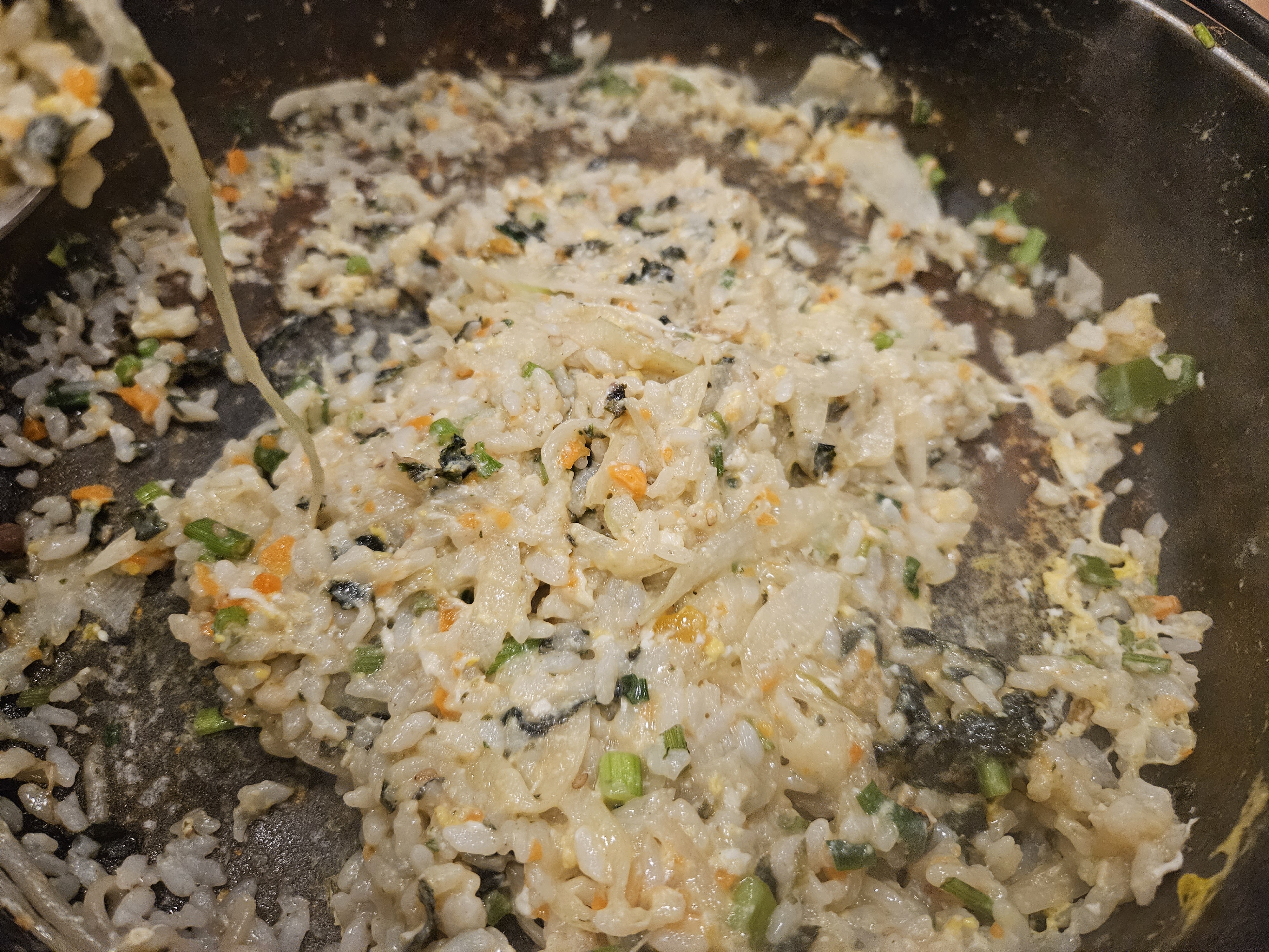 육수를 조금 넣으니 죽이라기보다는 볶음밥이 된 모양입니다.