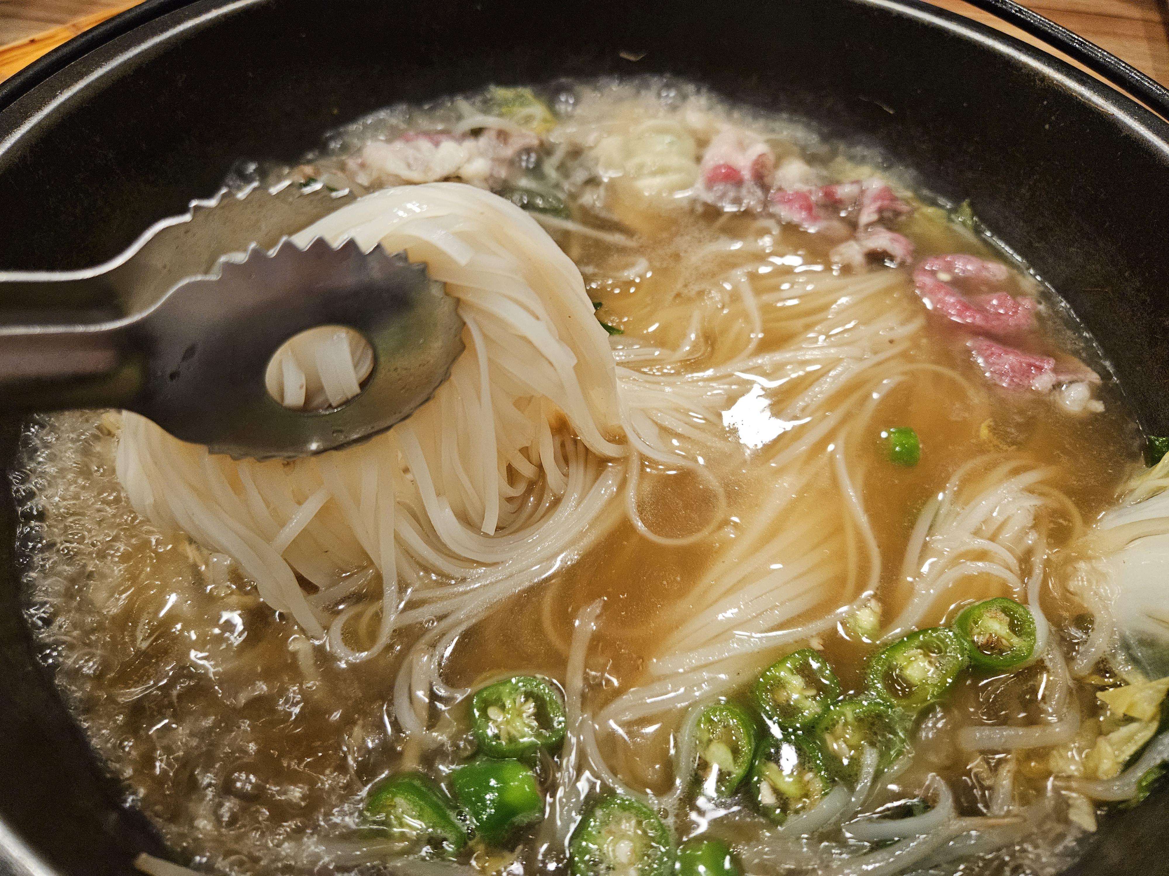 밀푀유나베를 다 먹은 후 쌀국수와 재료들을 투하
