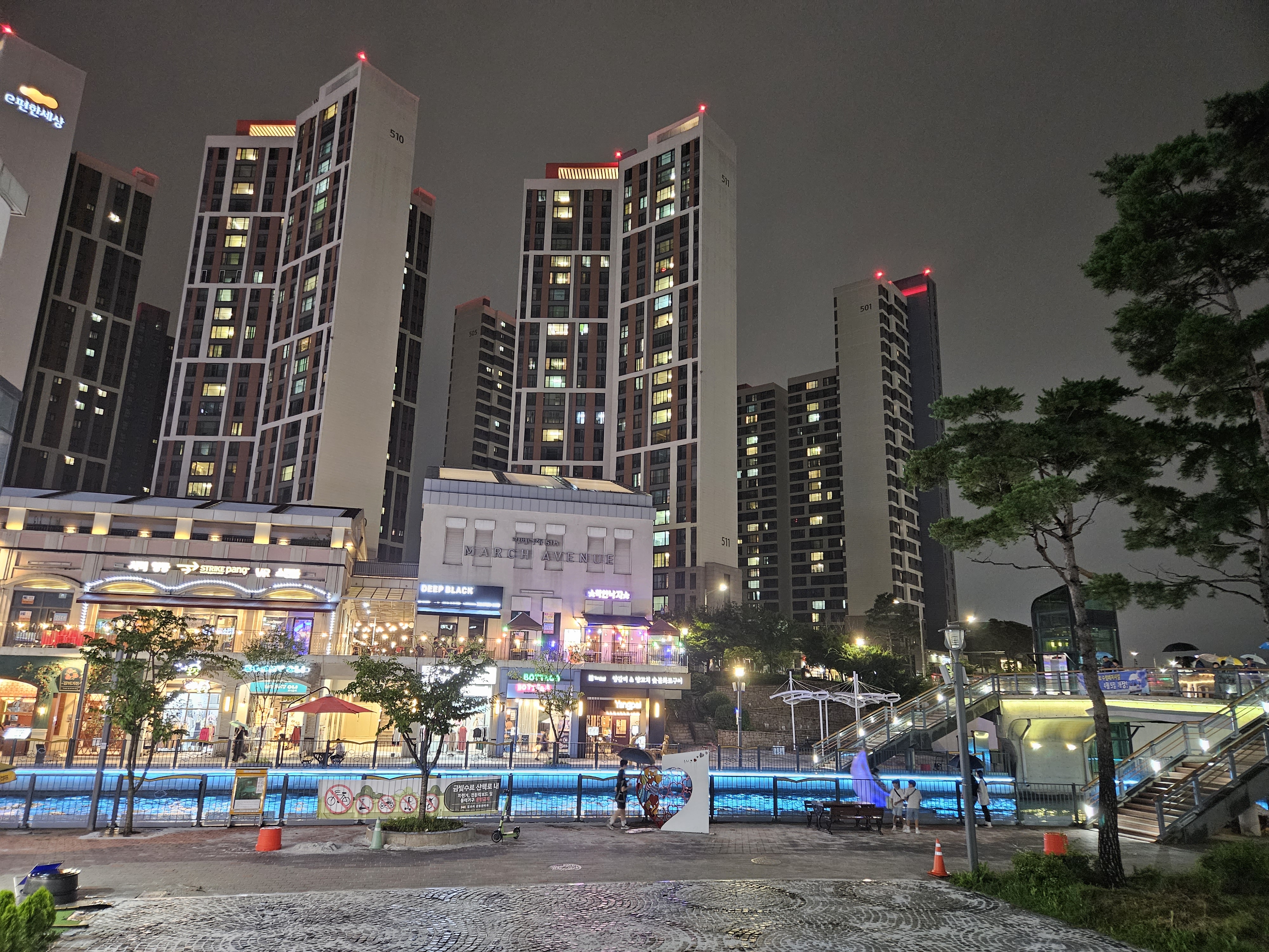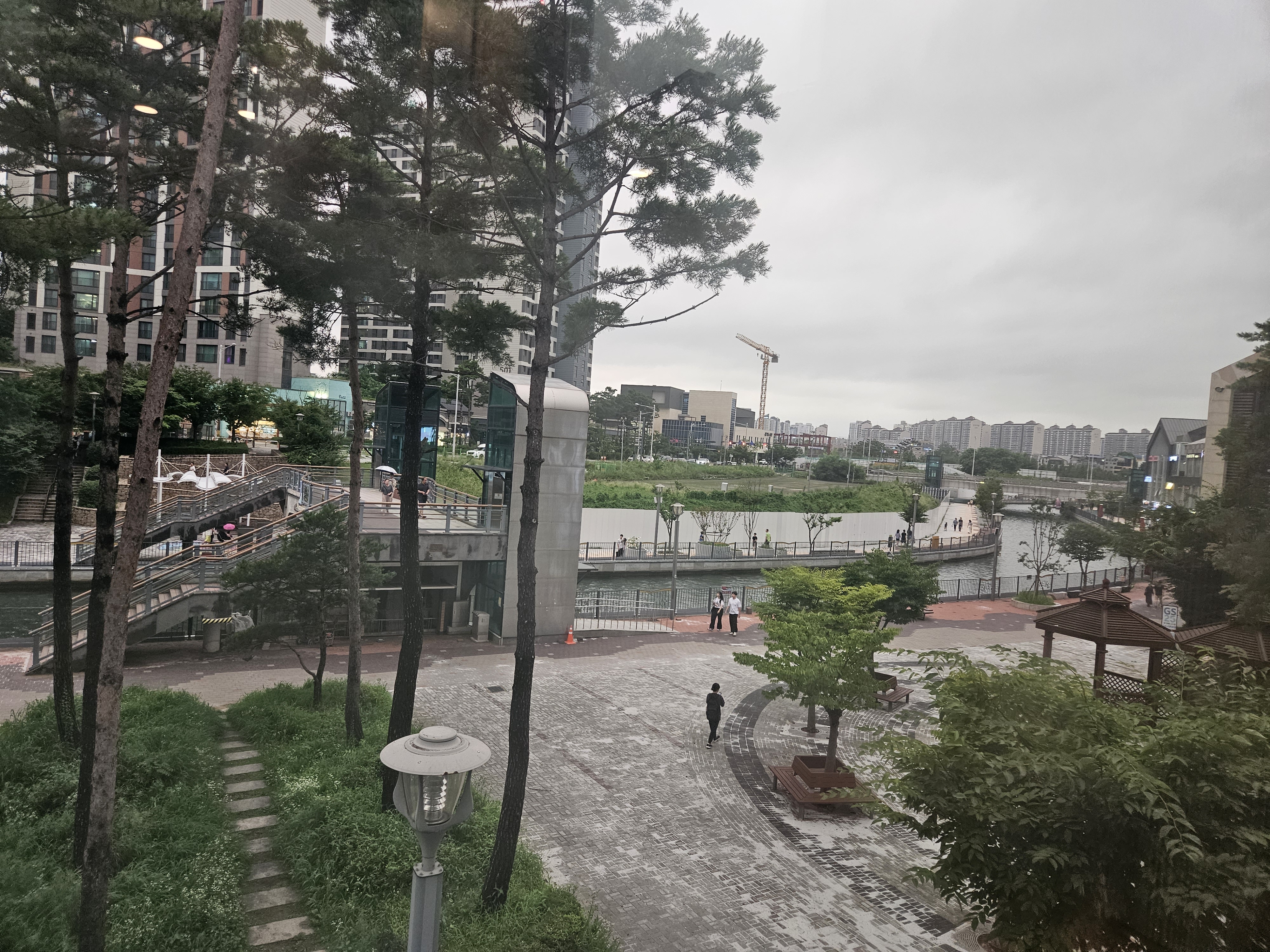 김포 홍대스앤샤에서 바라본 라베니체 금빛수로와 한강신도시 아파트 모습