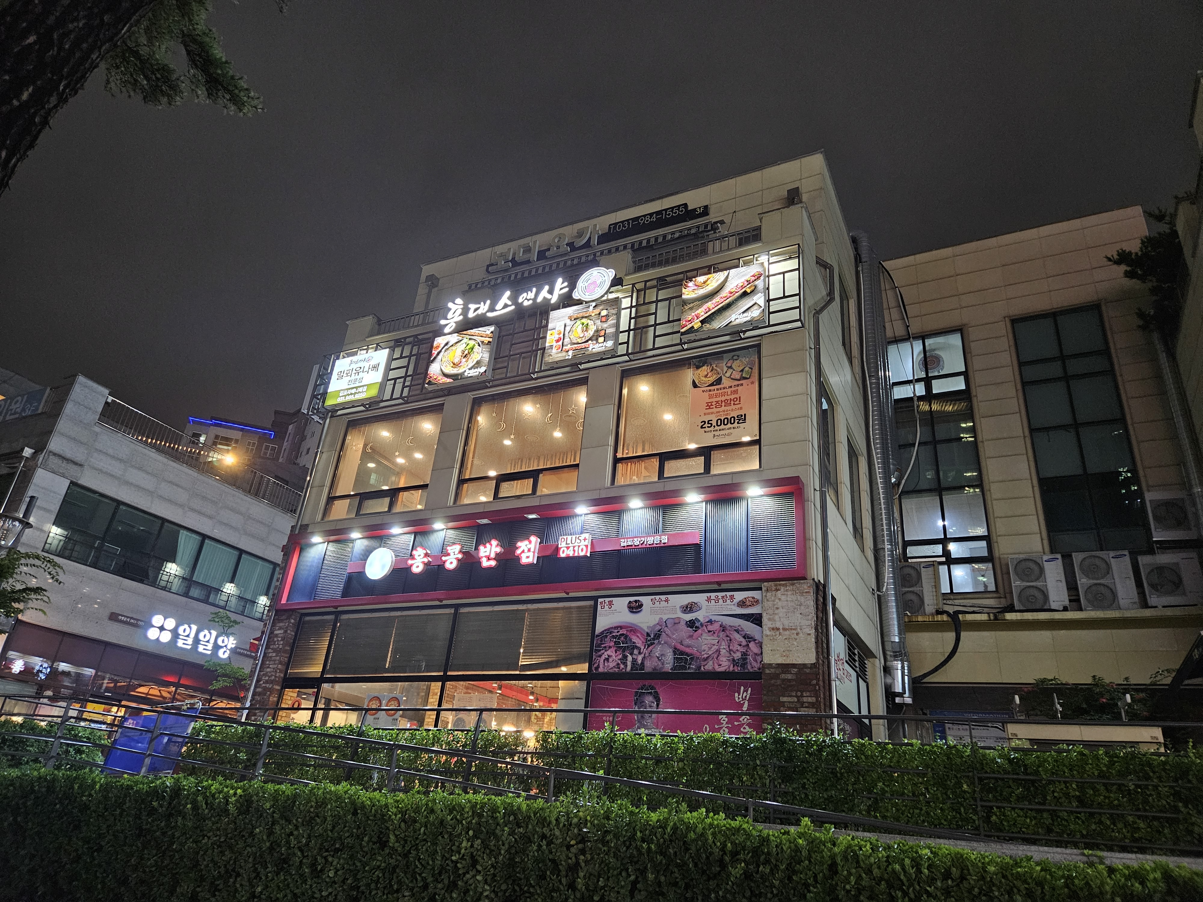 아래층에 홍콩반점이 있고, 옆에는 빽다방, 메가커피 등의 카페가 있습니다.