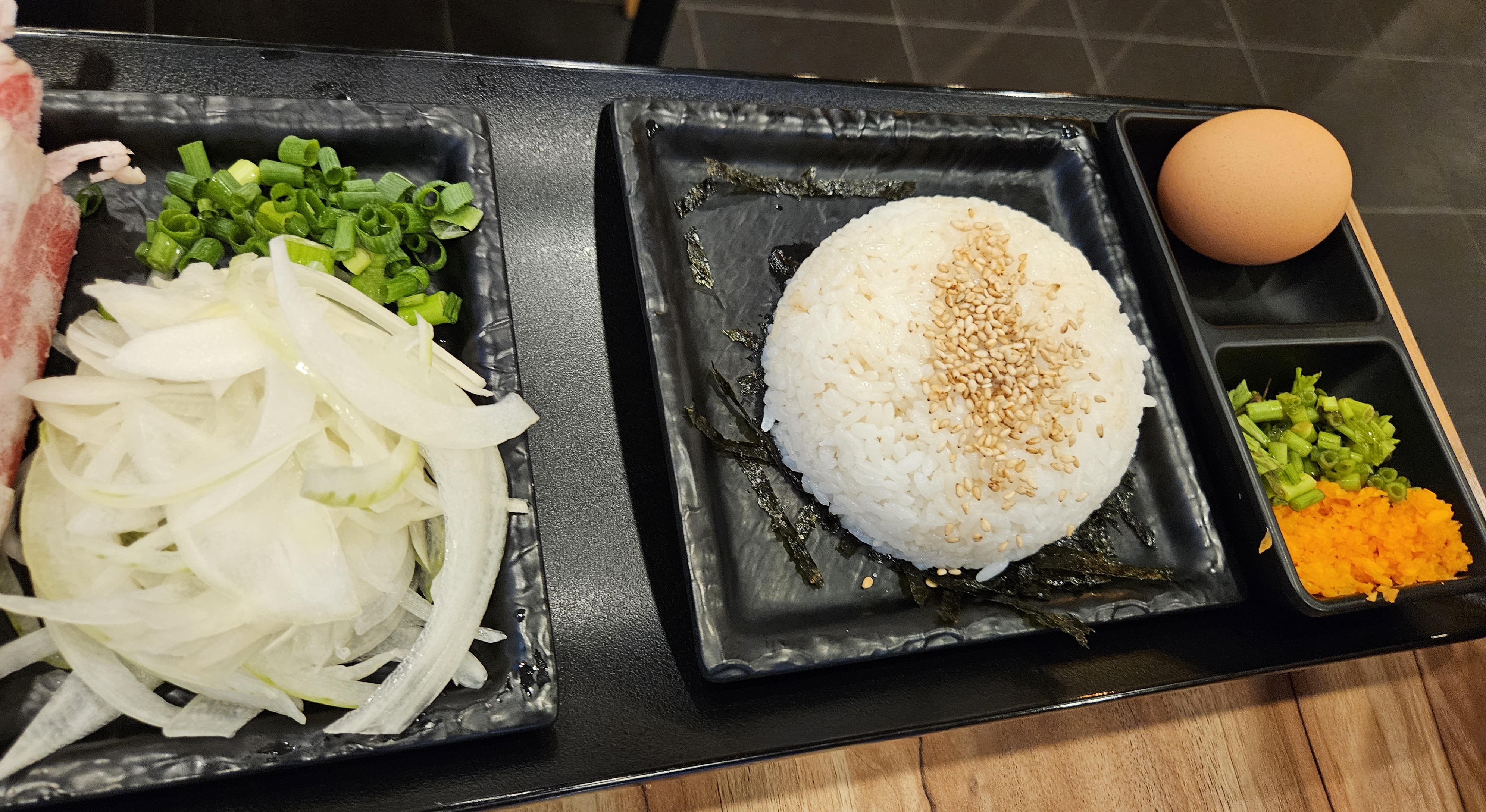 우리는 밀푀유나베+양지칼국수+야채죽 세트를 주문했습니다.