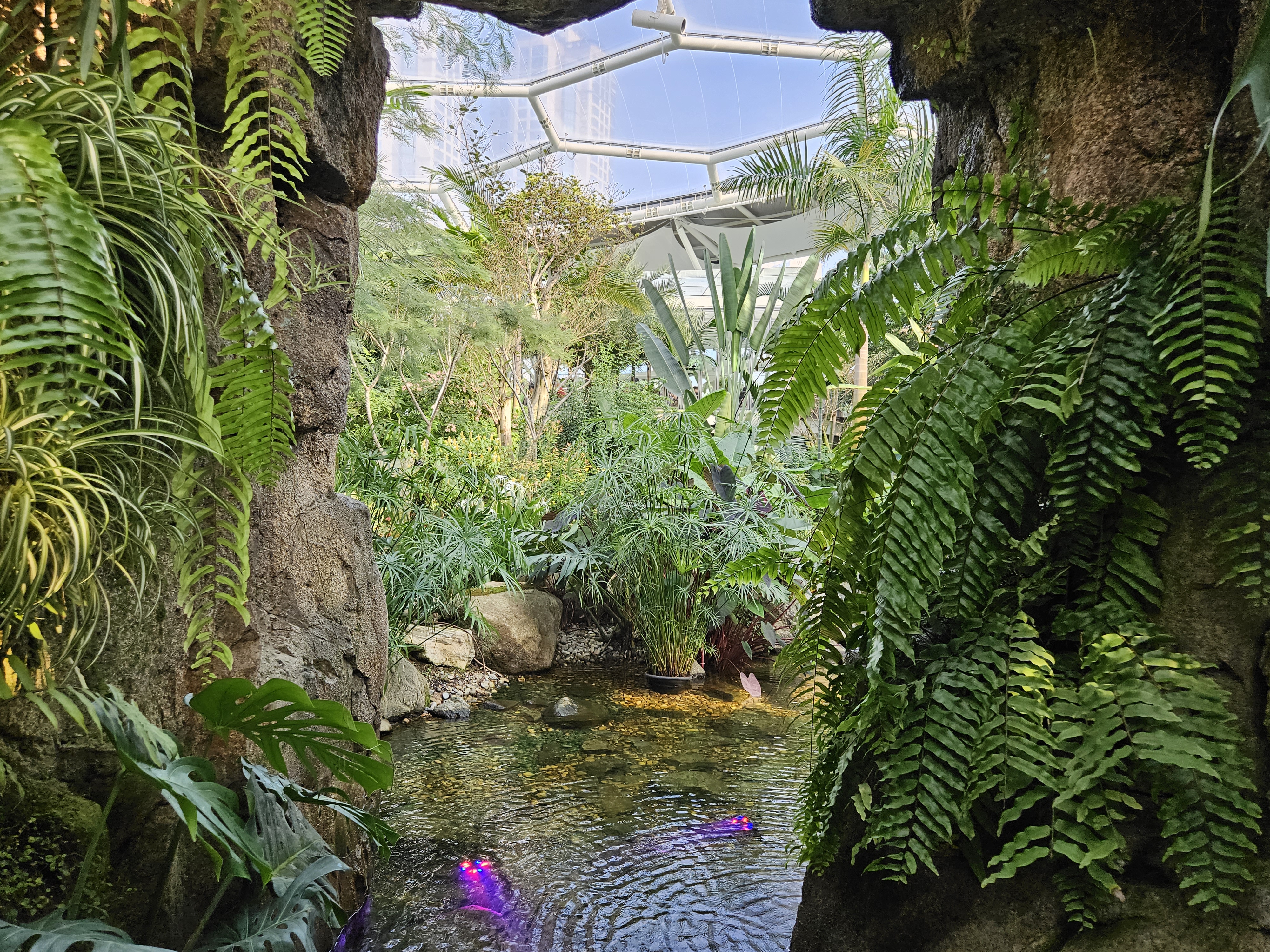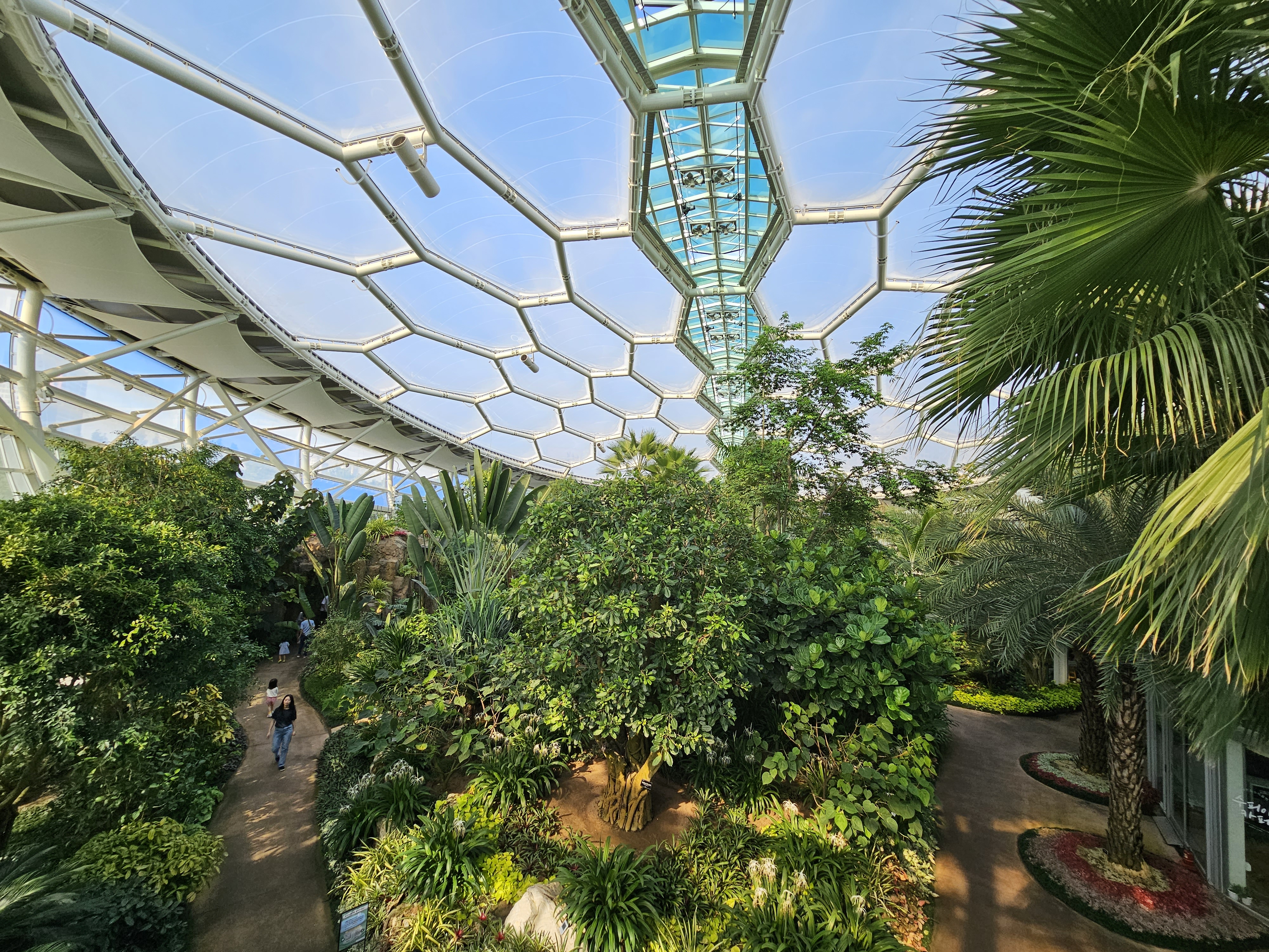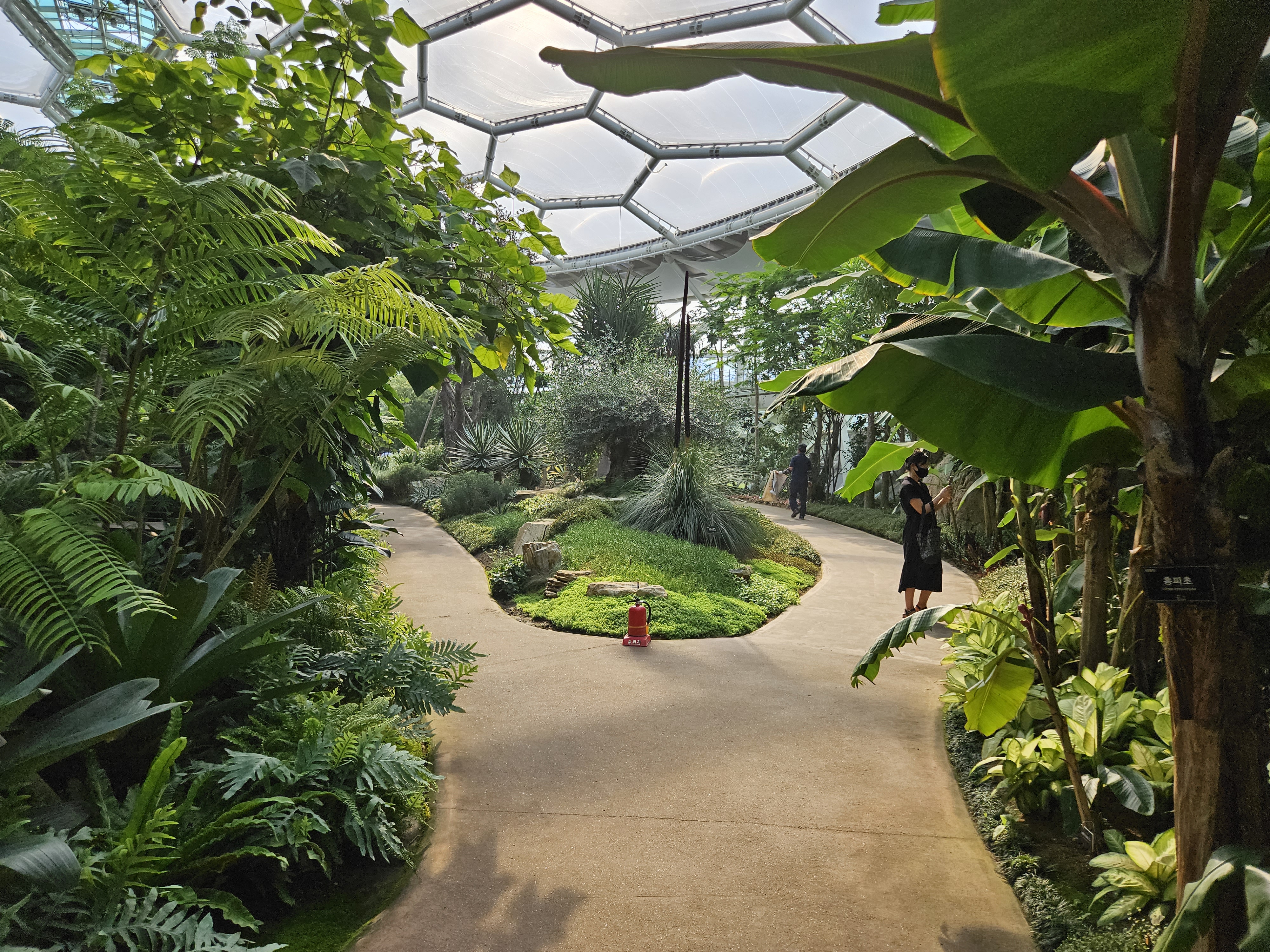 기획 프로그램, 특별 전시를 위한 테마 온실 등으로 구성되어 있고, 2층에는 190m 길이의 스카이워크가 설치되어 있습니다.