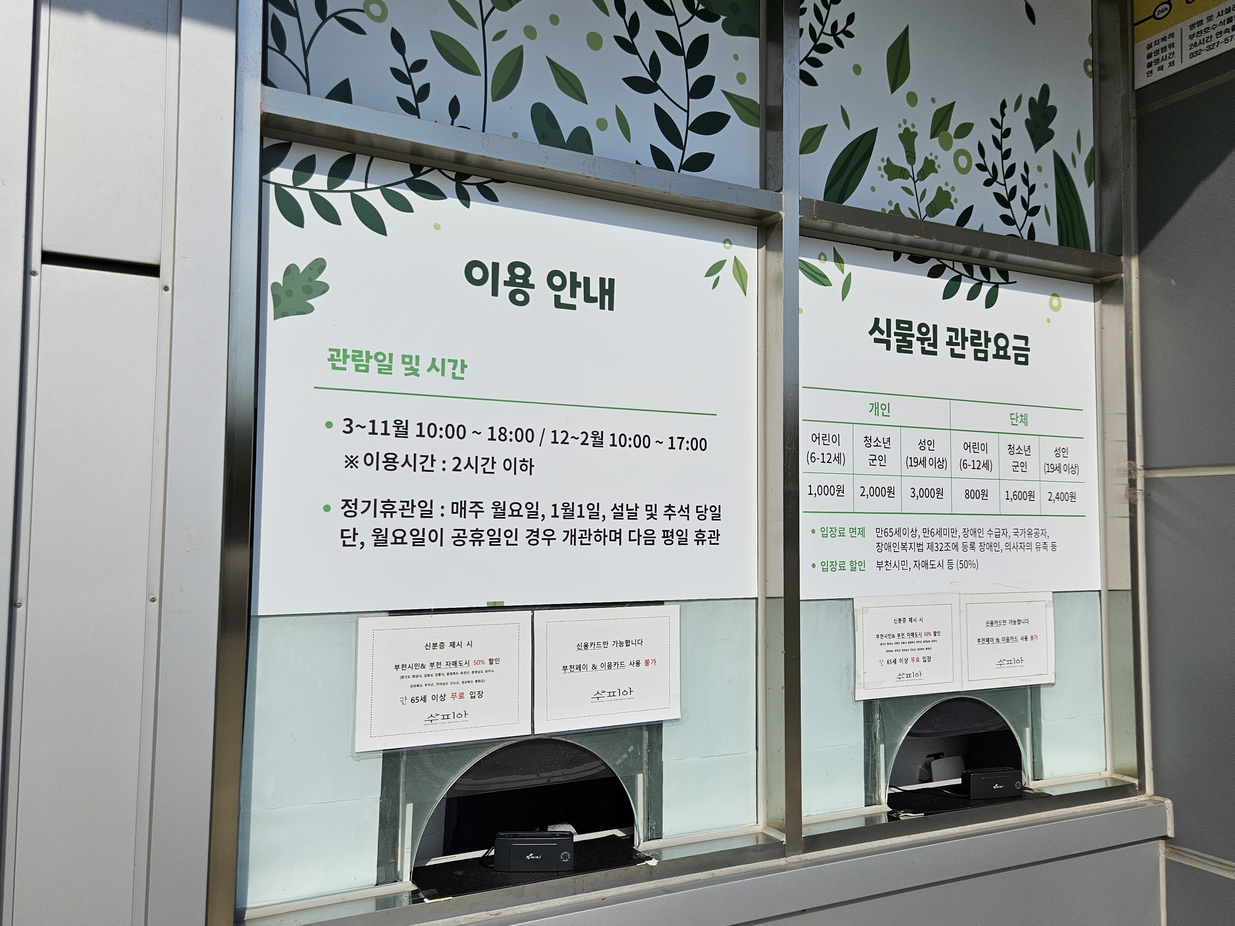 입장료 할인 부천시민 50%, 자매도시 50%, 경로/장애인/기초생활/유공자 등 무료