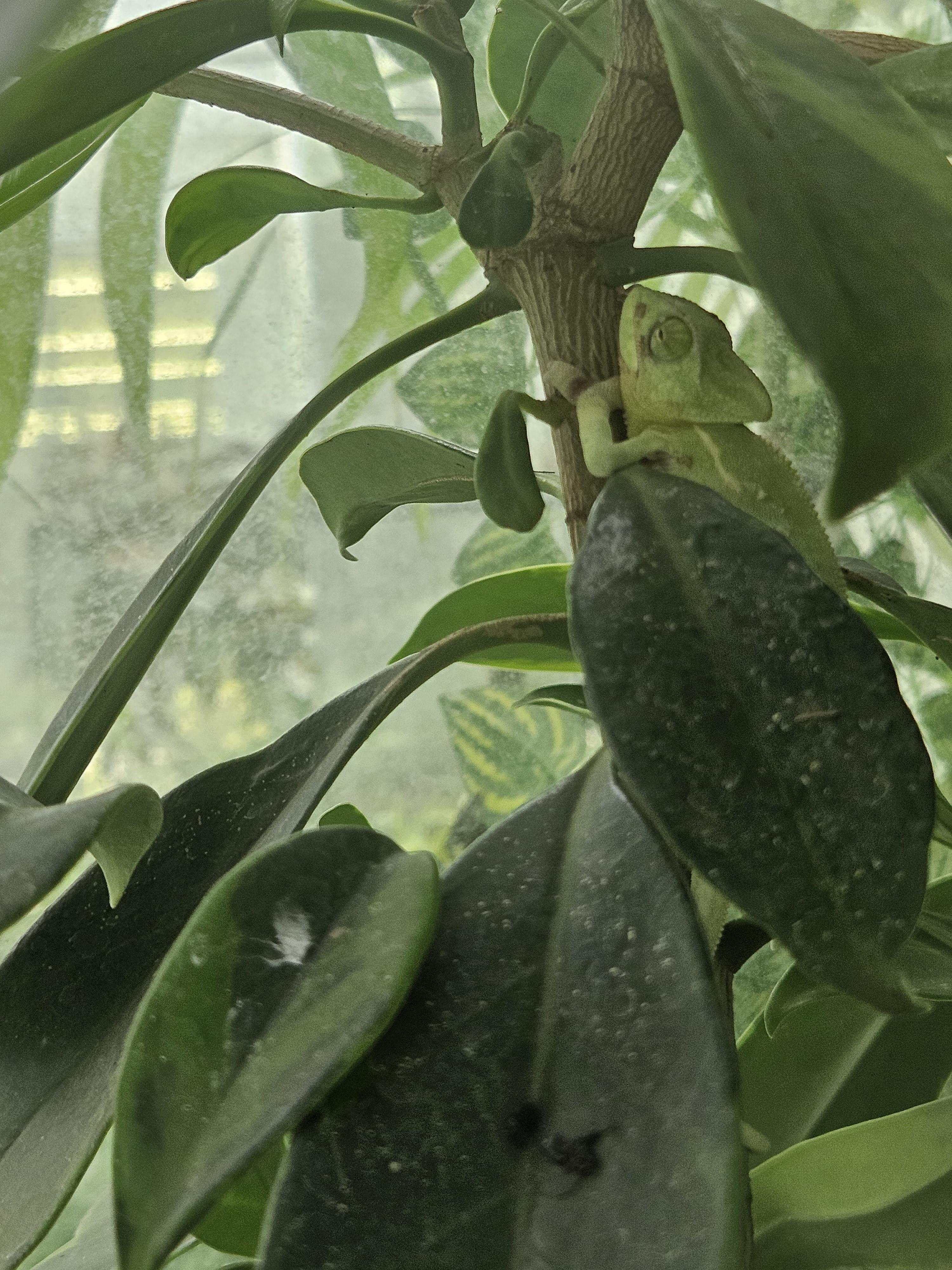 눈이 양쪽이 따로 돌아가고 이곳저곳을 관찰하며 사냥할 수 있고, 긴 혓바닥으로 멀리 있는 곤충을 사냥한다고 합니다.