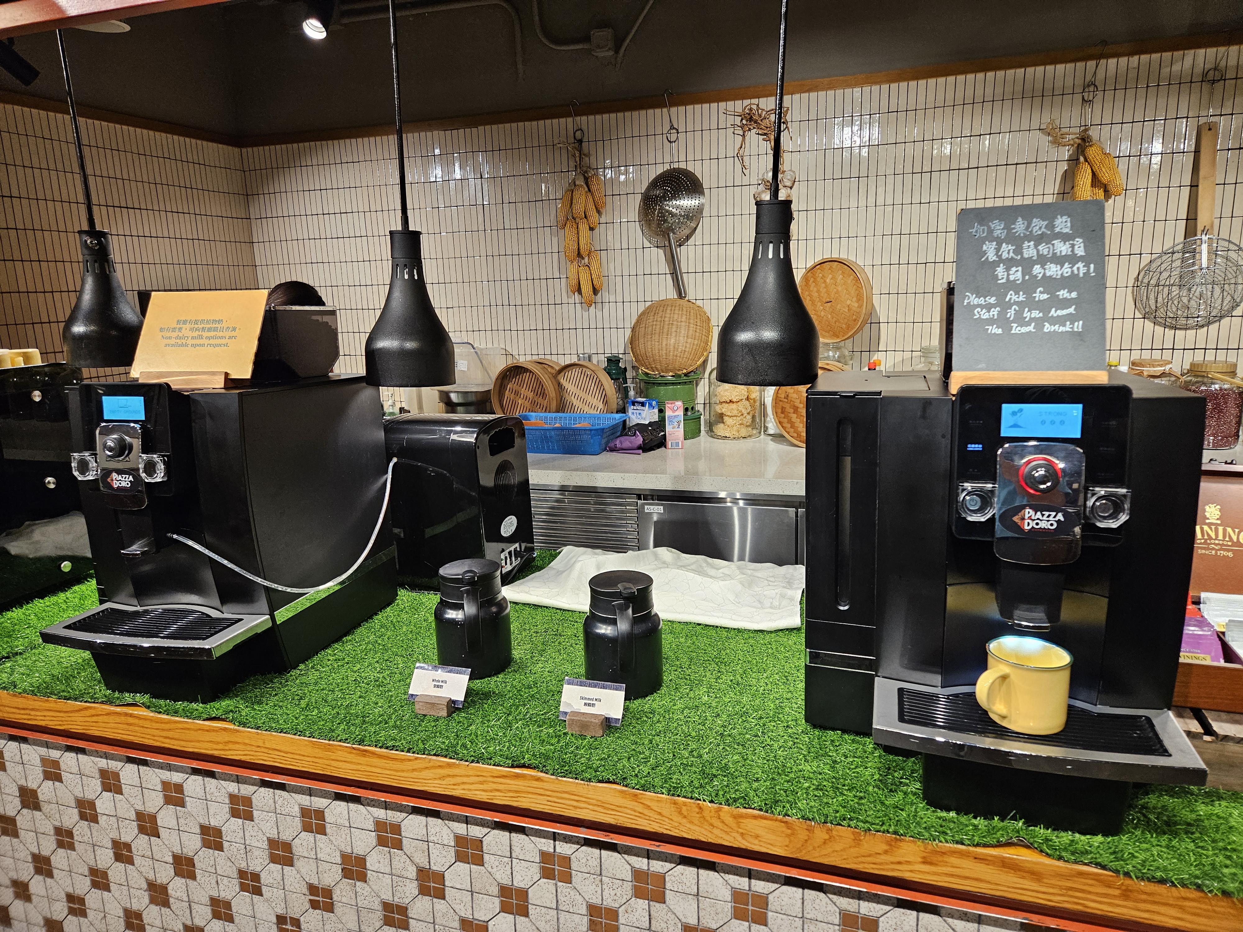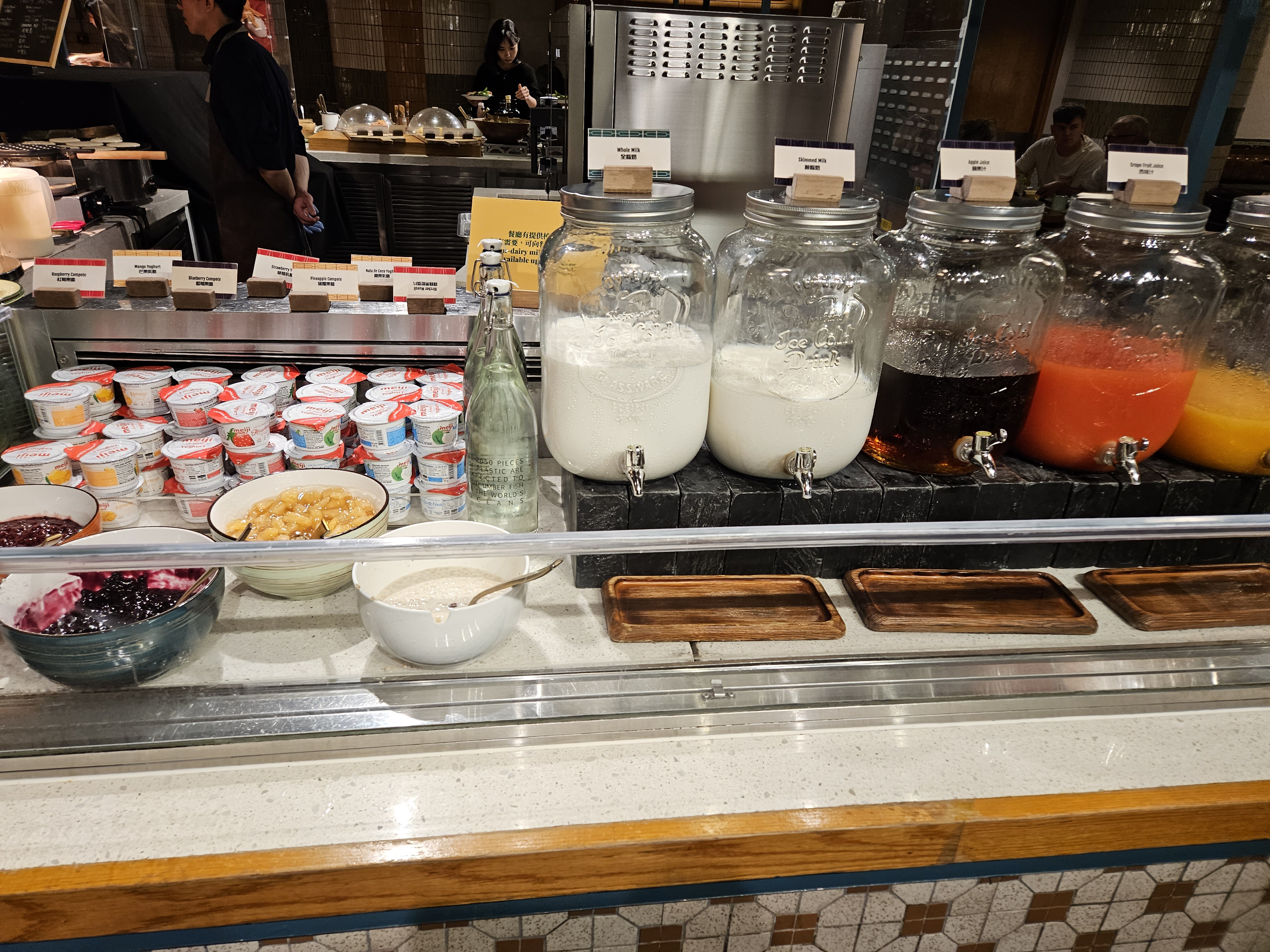 하나는 중국음식, 빵과 샐러드, 양식, 음료와 커피 등의 공간이 있습니다.