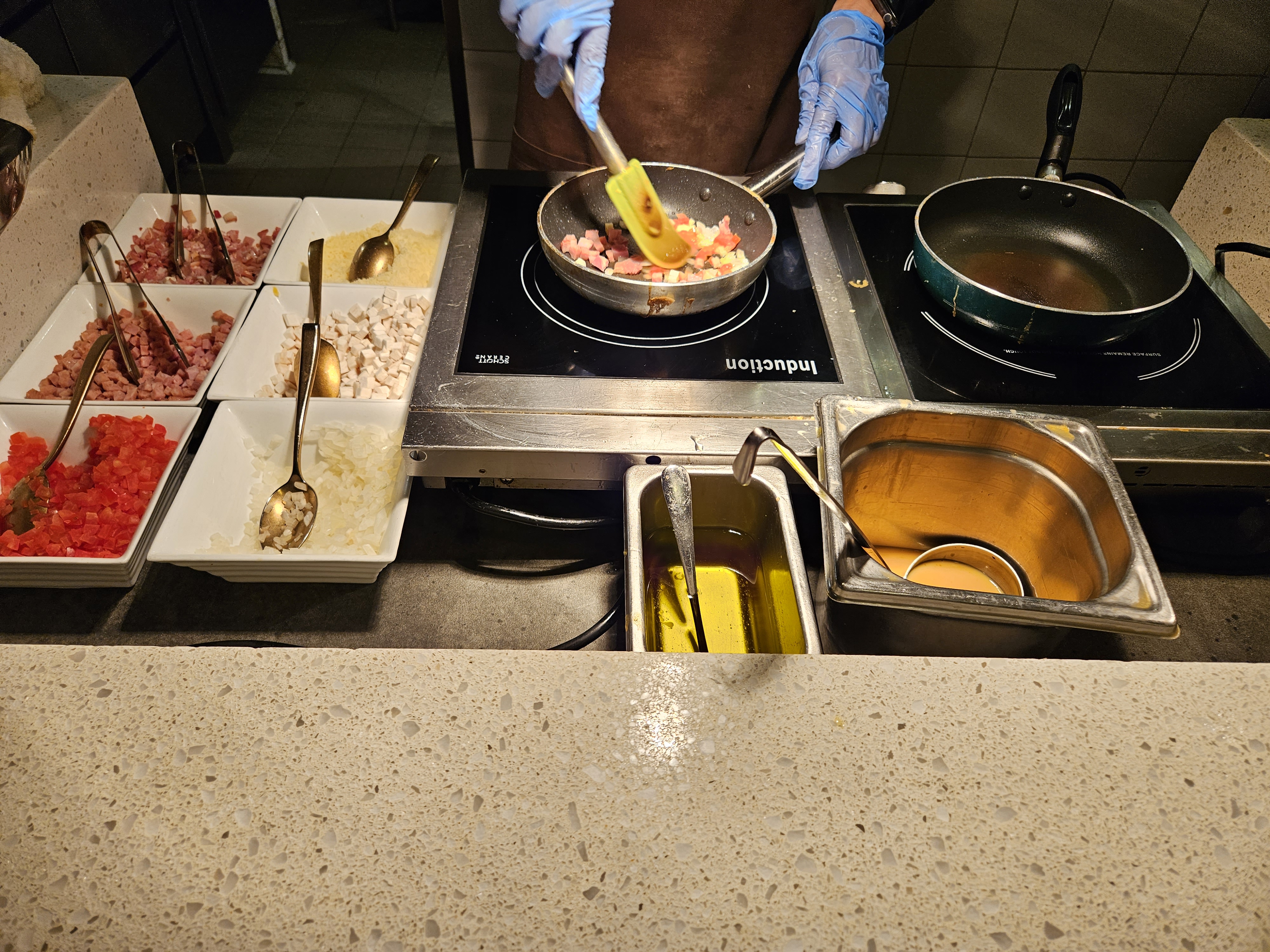 여러가지 토핑으로 오믈렛을 만들어 주는데 기호에 따라 토핑을 원하는 대로 고를 수 있습니다.