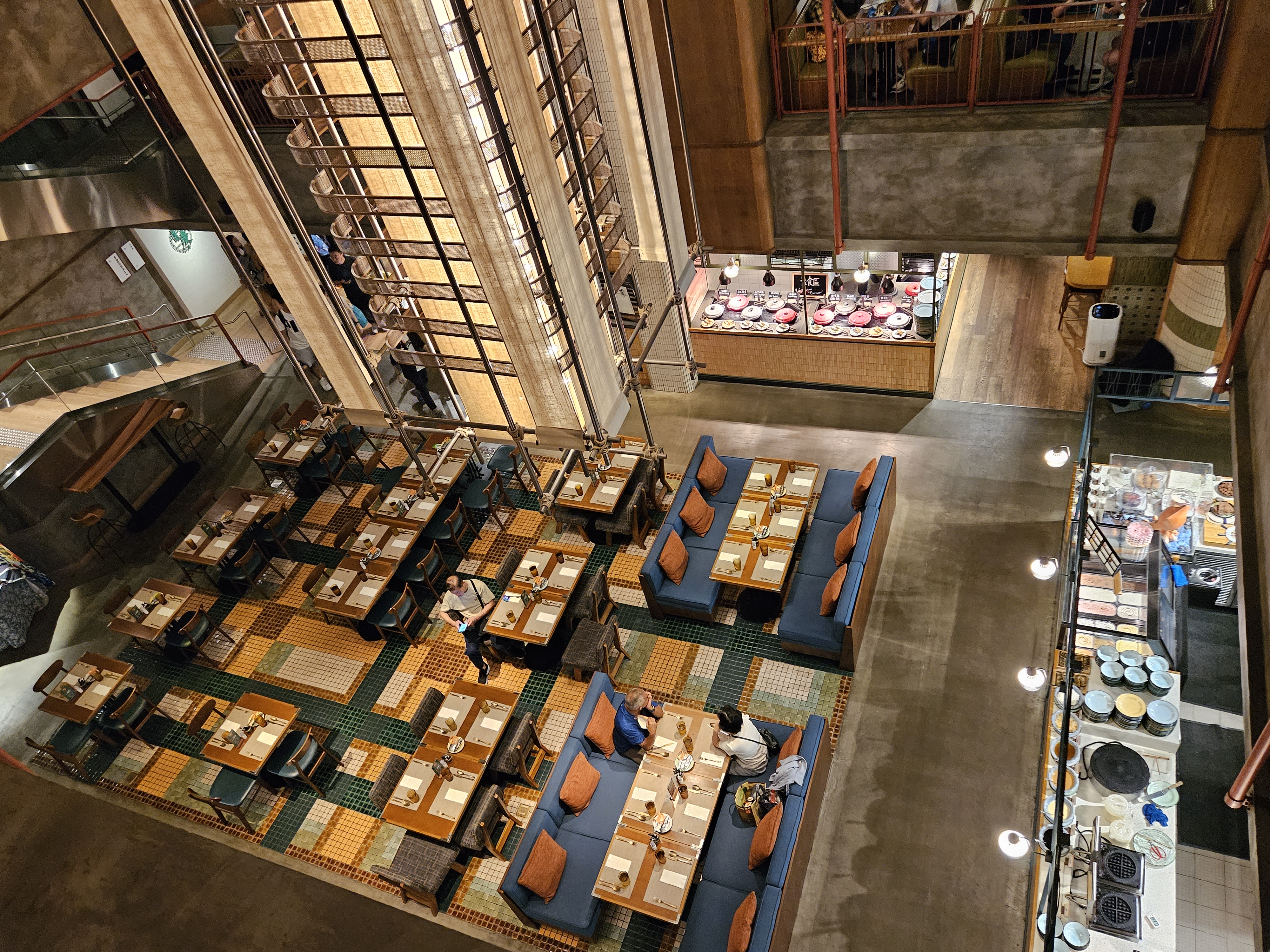 1층 프런트데스크에서 바라본 레스토랑 모습입니다.