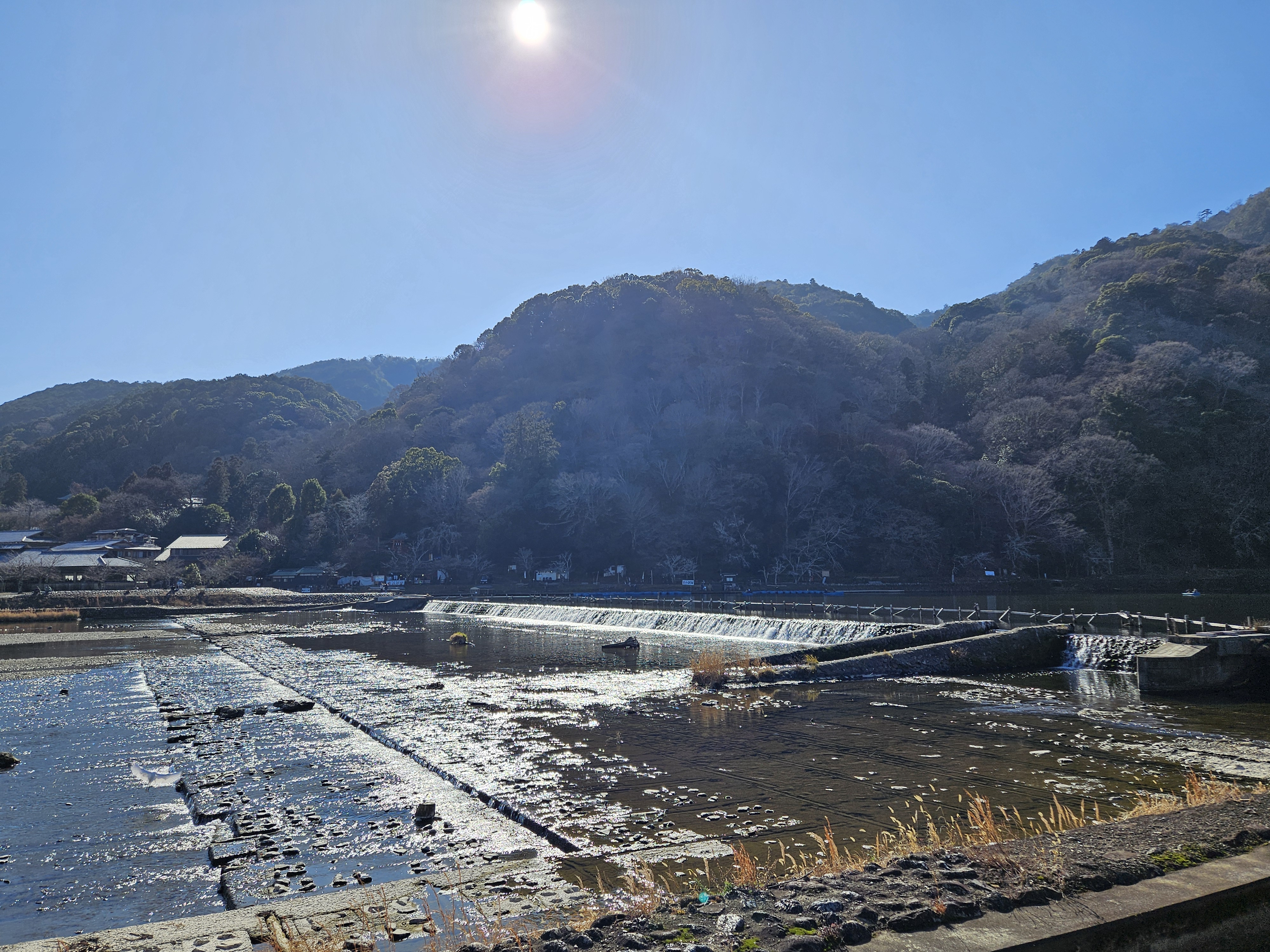 도게츠교를 건너면서 바라본 아라비카 교토 %커피(응커피) 매장