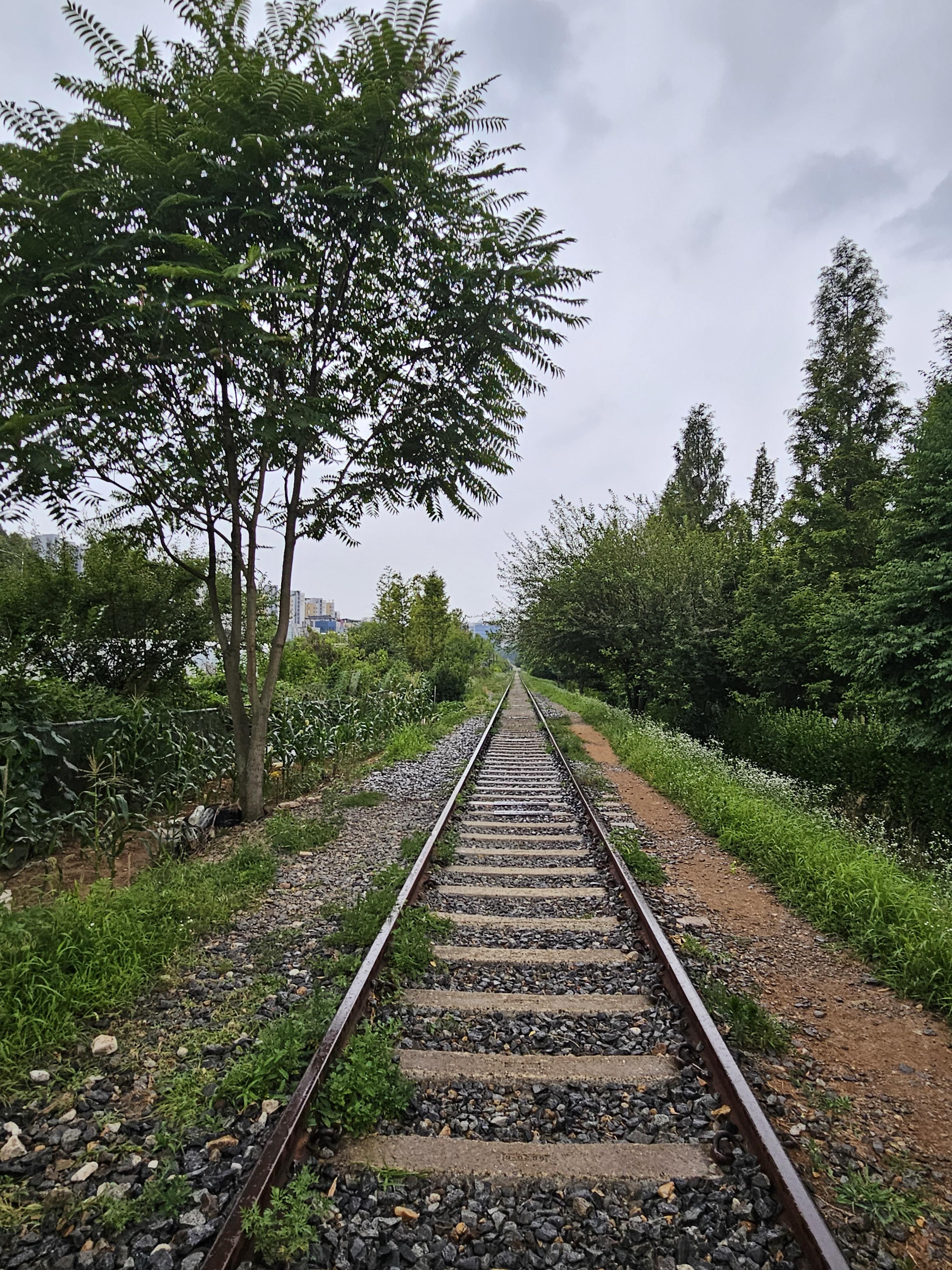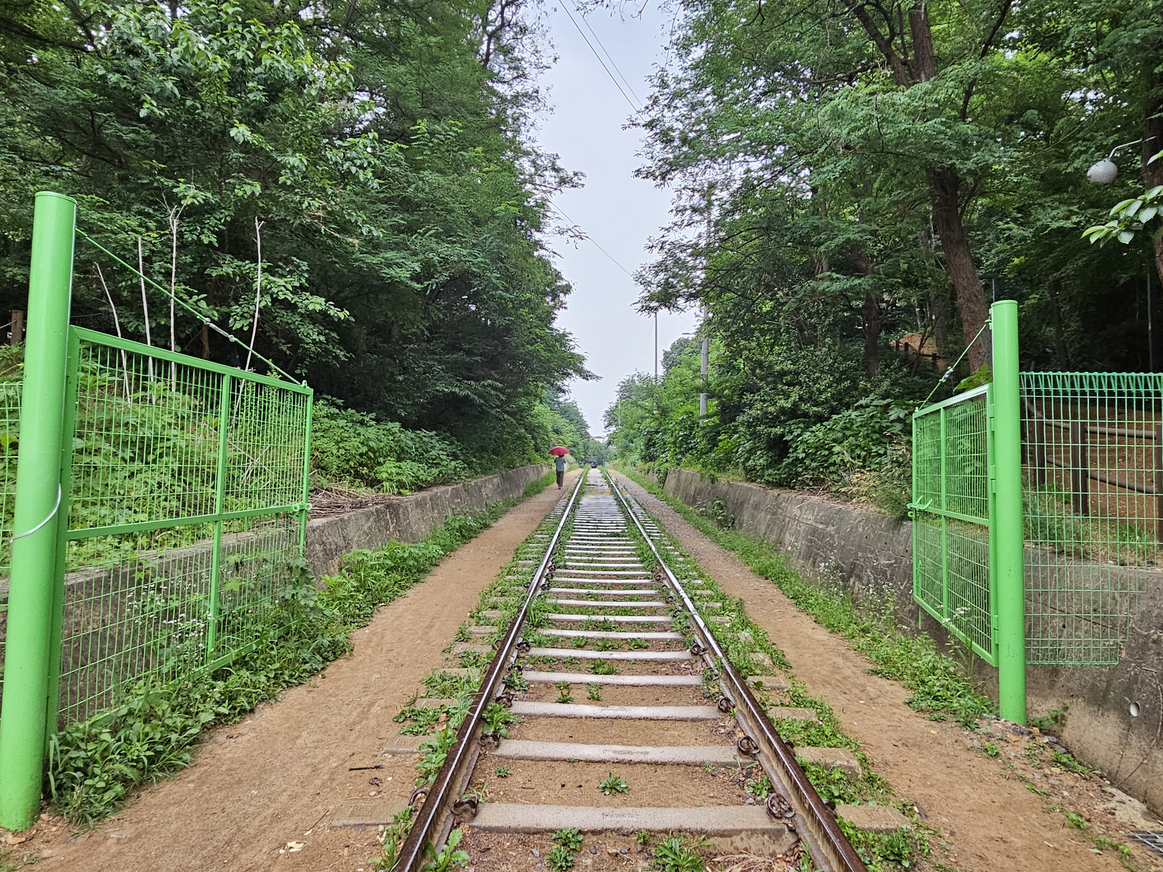 서울수목원 북쪽 KB 숲센터에서 나오면 바로 항동 철길이 있습니다.