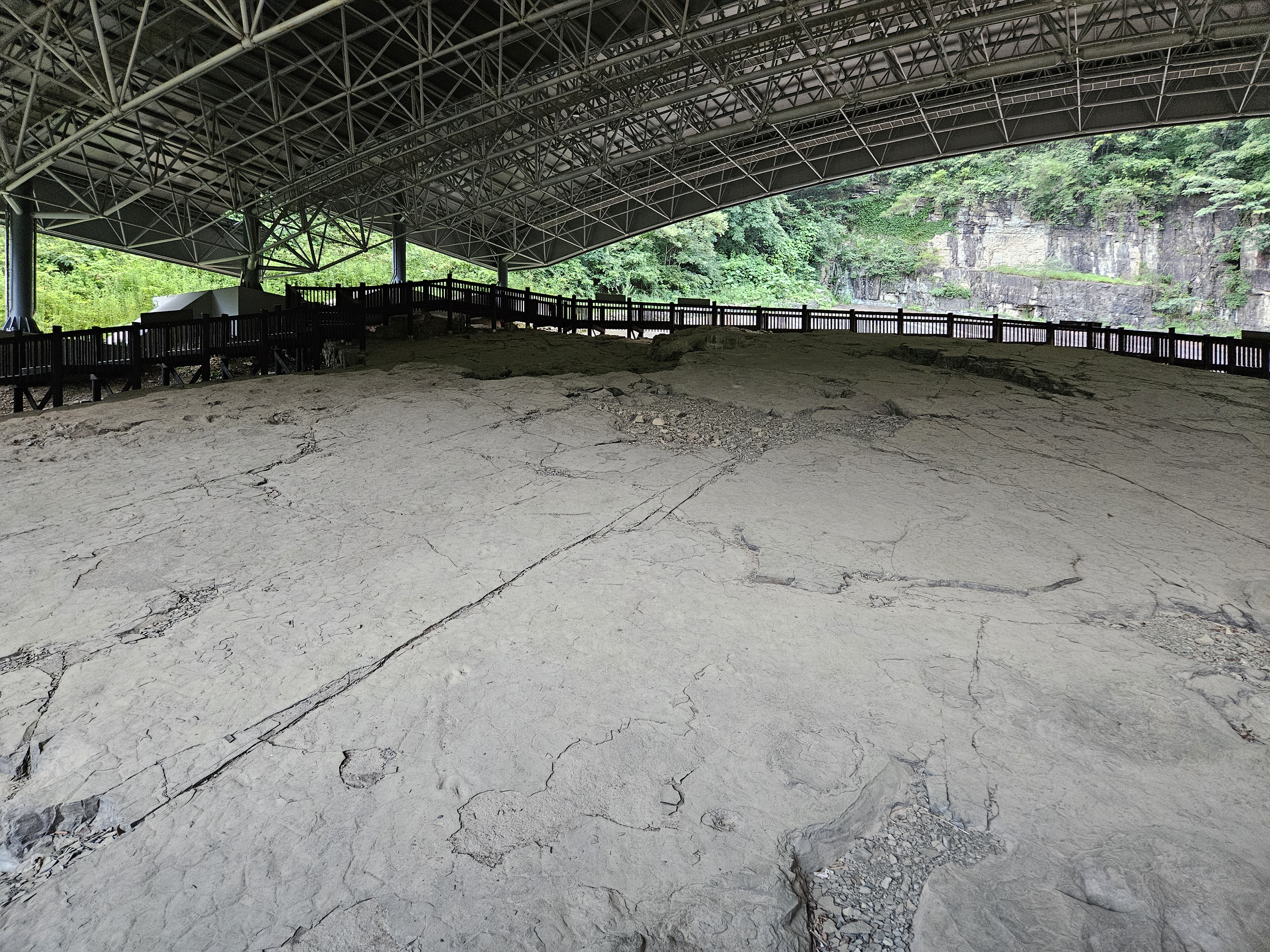 5개의 층준에서 1,800여개의 수각류와 용각류, 조각류 공룡발자국이 73개 보행렬로 나타나 연흔(물결자국)과 건열(v자 모양으로 갈라진 흔적) 등 교과서적 퇴적구조가 풍부한 곳입니다.