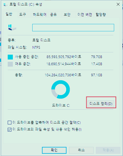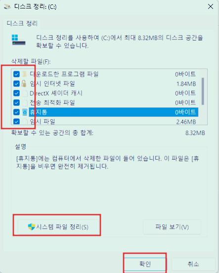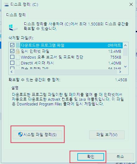 4. 디스크정리를 통한 하드용량 확보하기