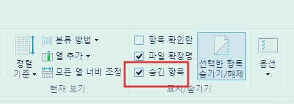 탐색기 상단에서 [숨긴 항목] 부분을 체크 해야 해당 폴더가 나옵니다.