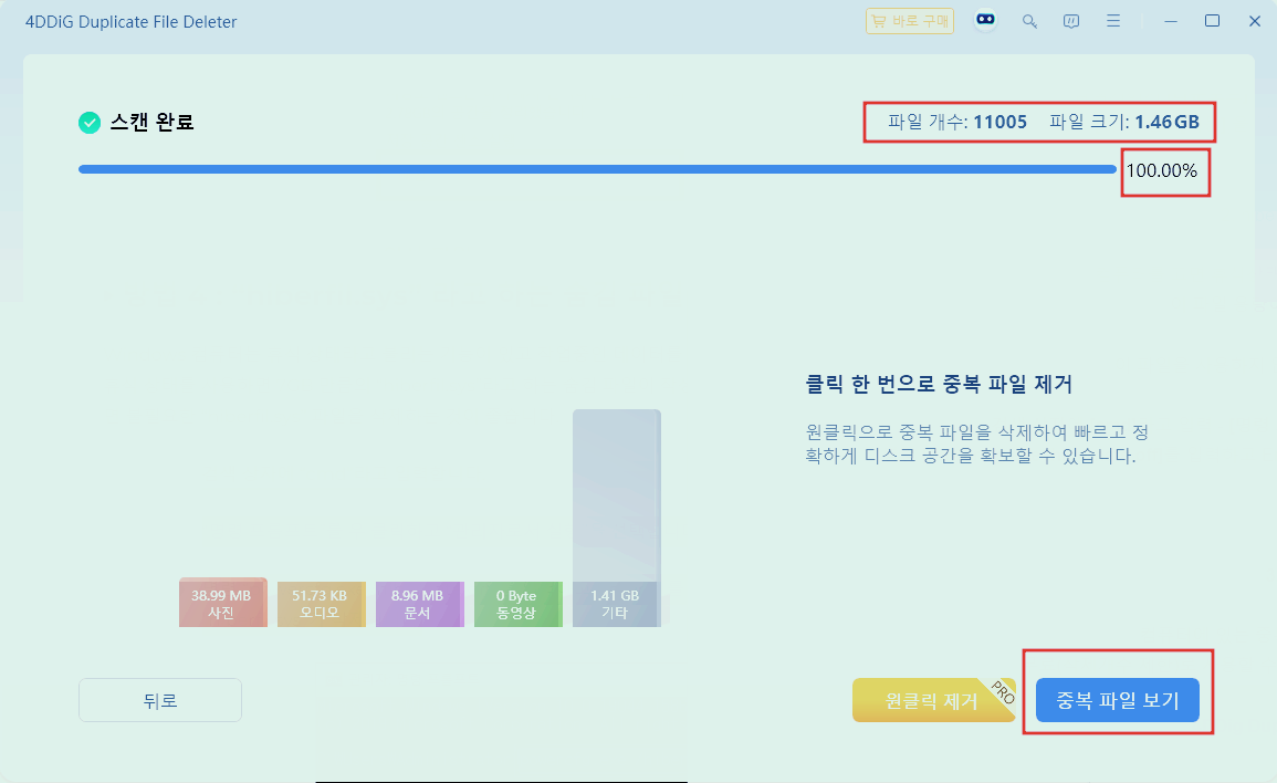몇 분 후에 중복파일을 찾은 후 스캔 완료가 떴습니다.