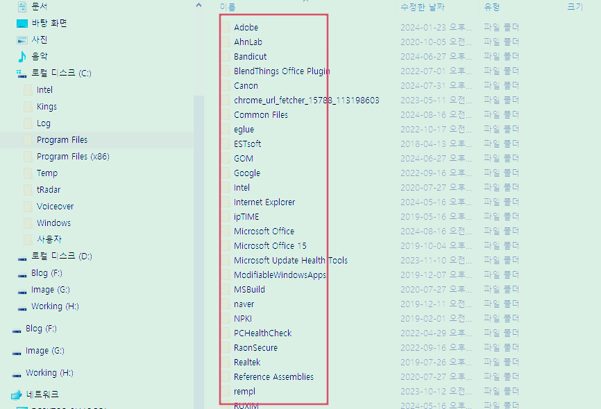 컴퓨터에 응용프로그램을 설치한 후 필요가 없어서 삭제를 하면 자동으로 [Program Files], [Program Files x86]에 있는 관련 파일들도 깔끔하게 삭제해 주면 좋겠지만, 그렇지 못한 경우가 많습니다.
