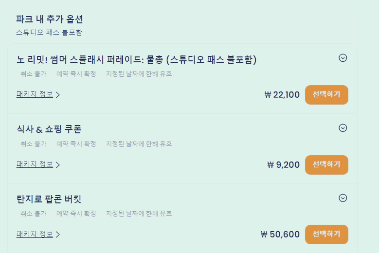 탄지로 팝콘 버킷 등의 파크 내 추가 옵션도 있습니다.