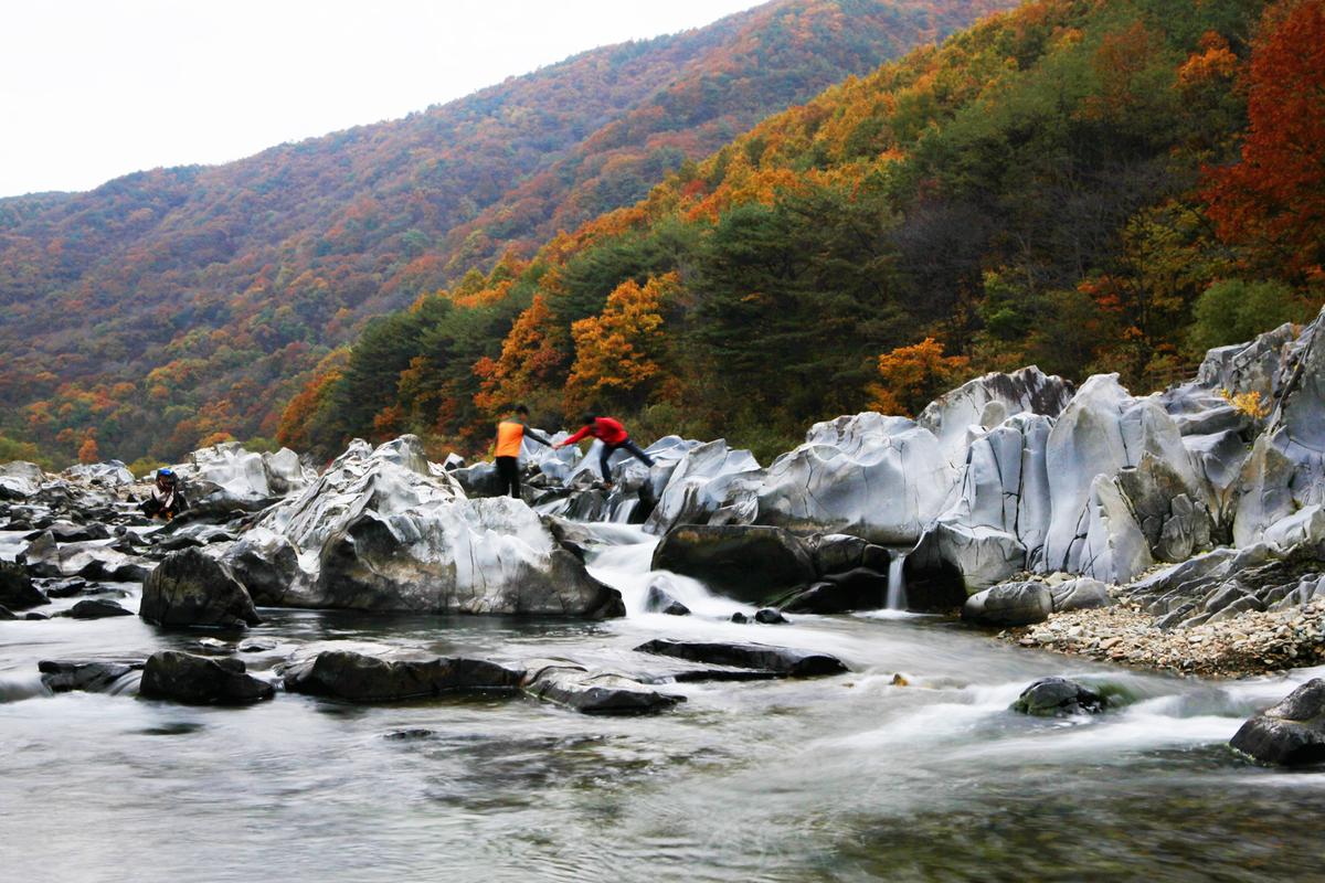 깨끗한 물이 사철 흐르고 있을 뿐 아니라, 죽순처럼 우뚝 솟은 기암괴석과 울창한 수림으로 둘러싸여 있어 마치 별천지와 같은 분위기를 자아내고 있는데요.