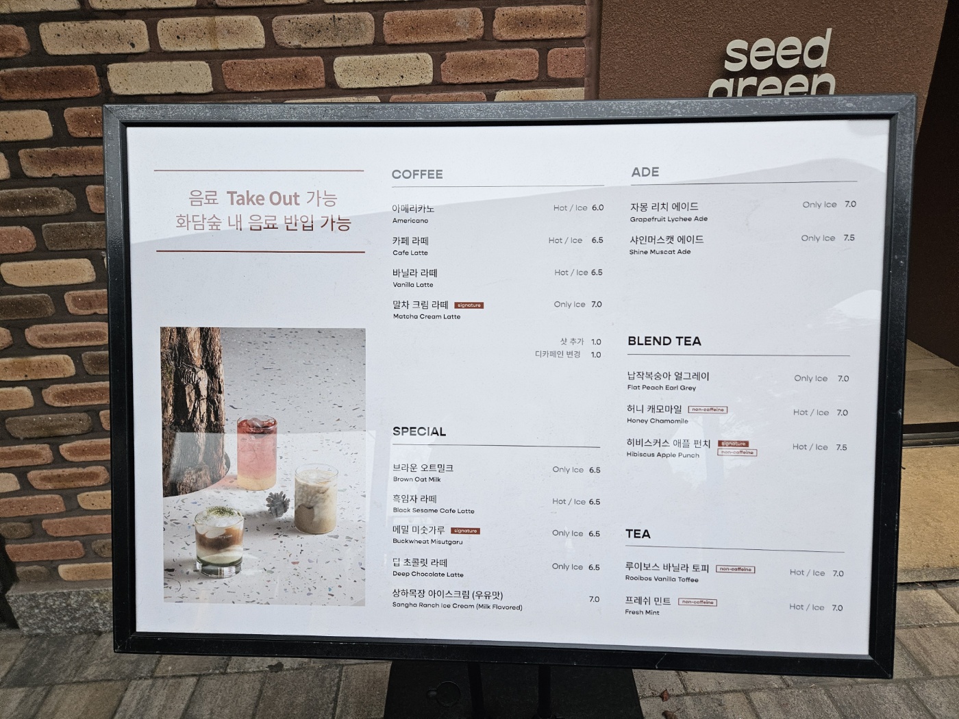 아메리카노 6,000원, 카페라떼 6,500원 등