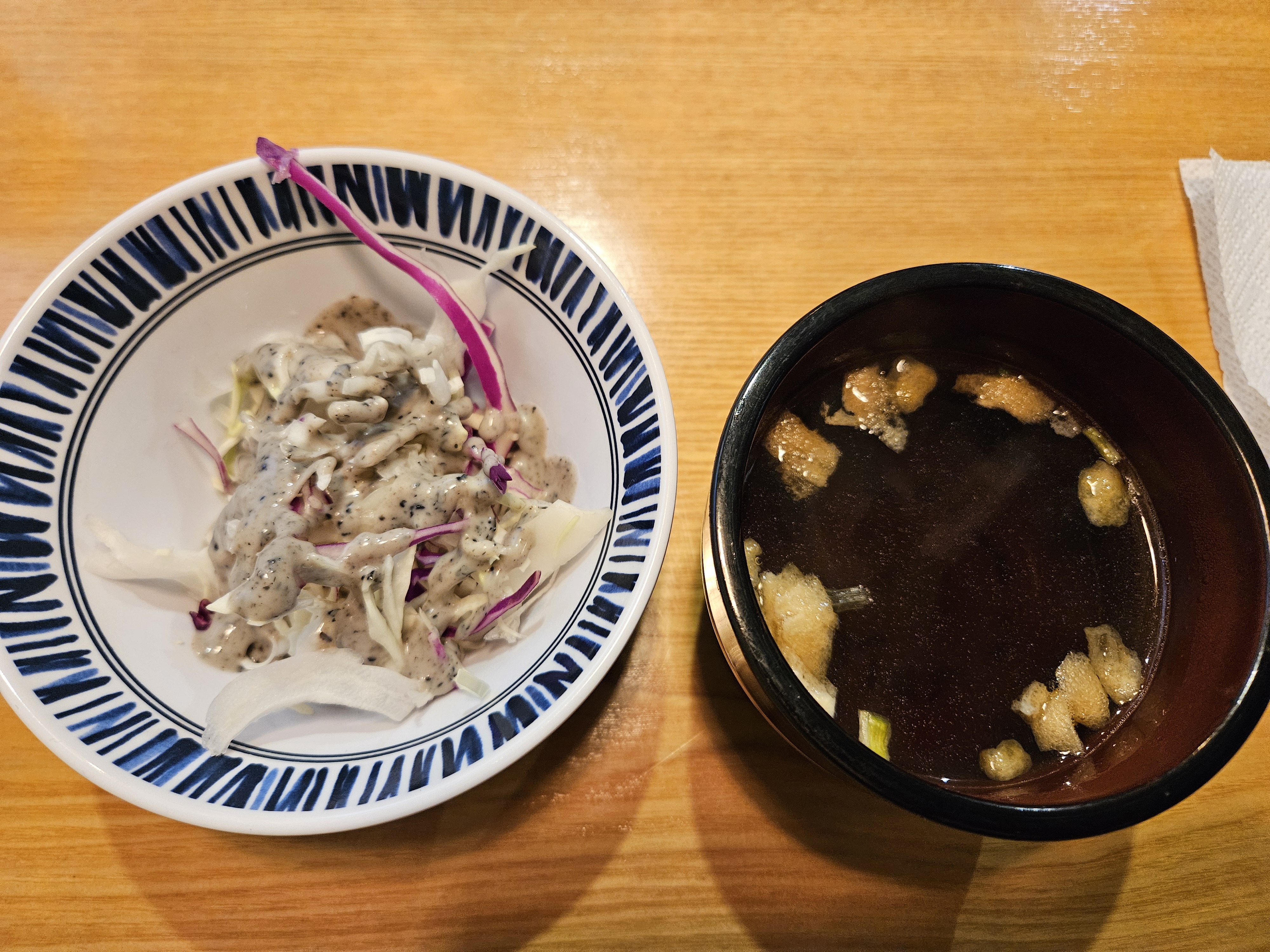 샐러드와 시원한 국물이 먼저 나오네요.