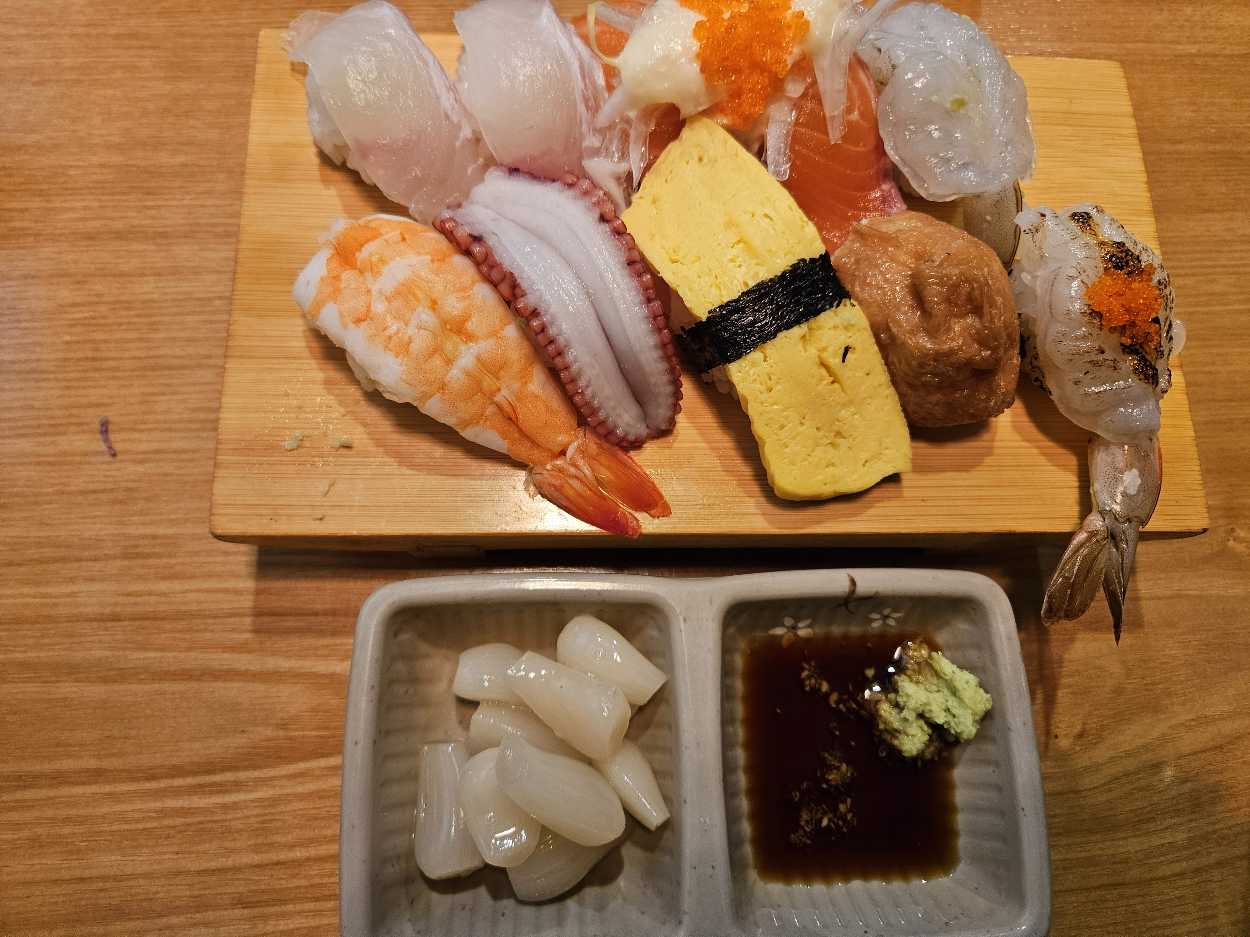 겨자소스는 별도로 간장과 함께 찍어 먹으면 되는데, 하나같이 마음에 쏙 드는 초밥 맛집입니다.