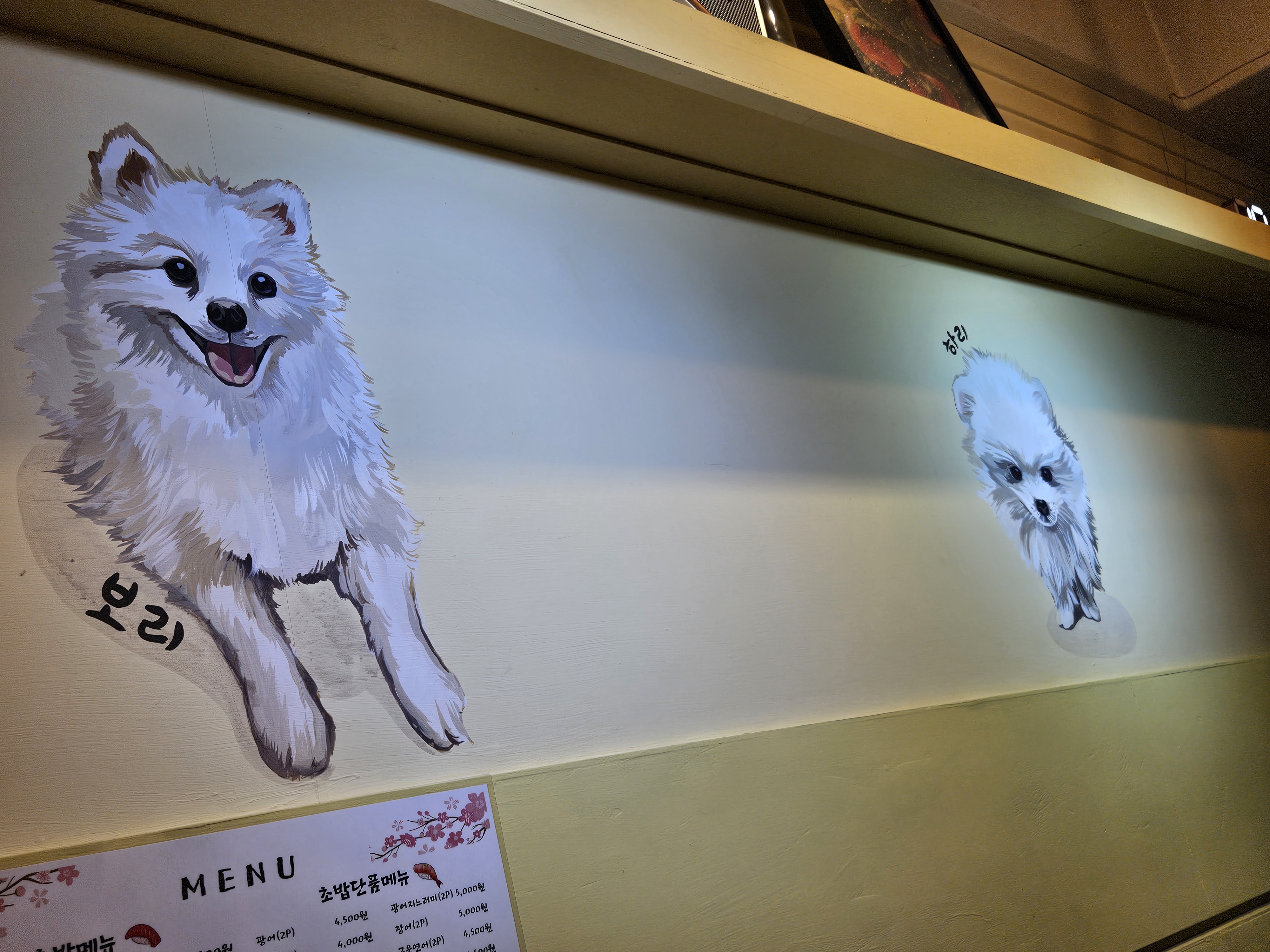 하리보가 뭔가 싶었는데, 벽에 그려진 걸 보니 집에서 키우는 하리와 보리의 이름을 딴 것 같네요.