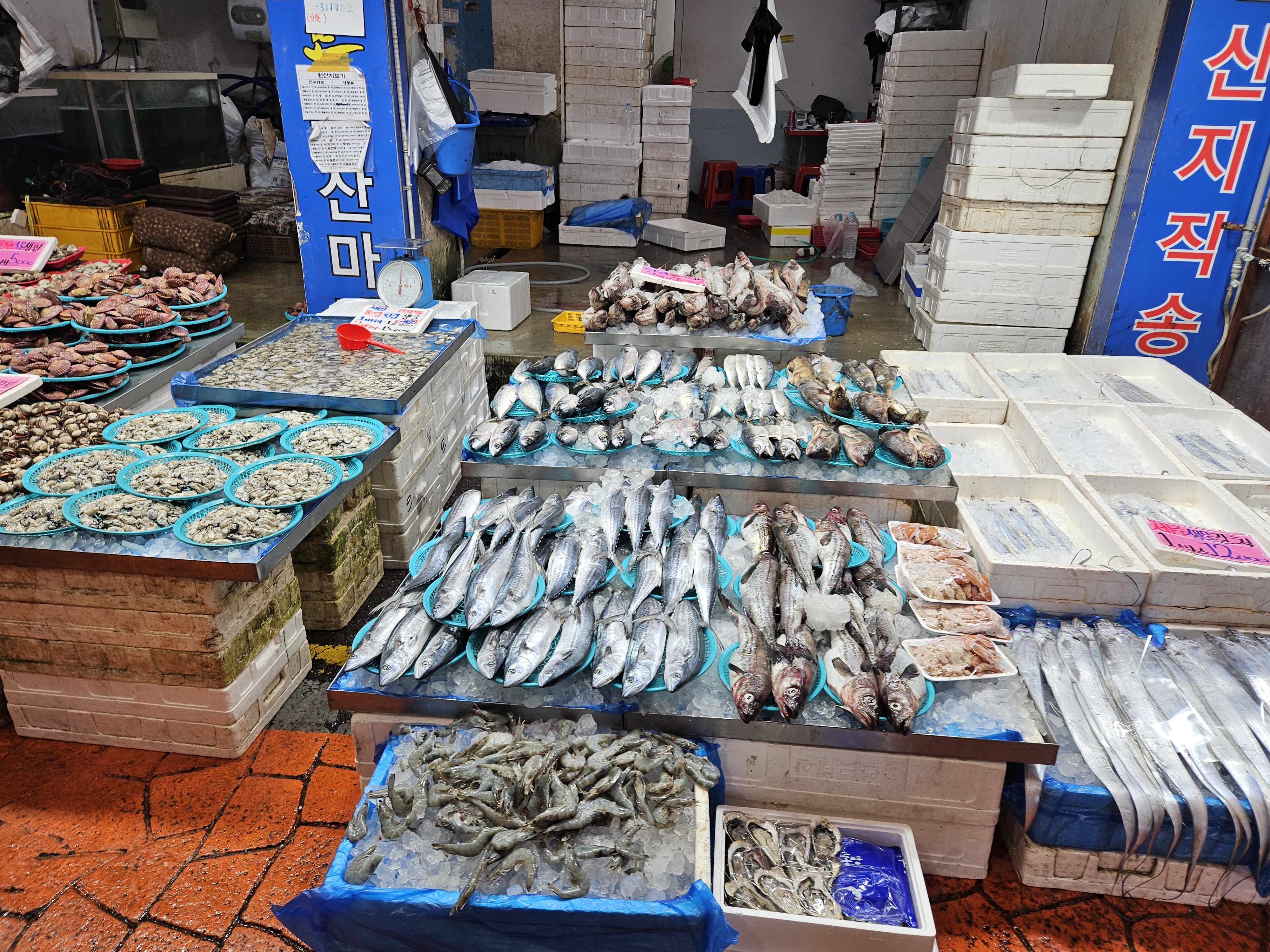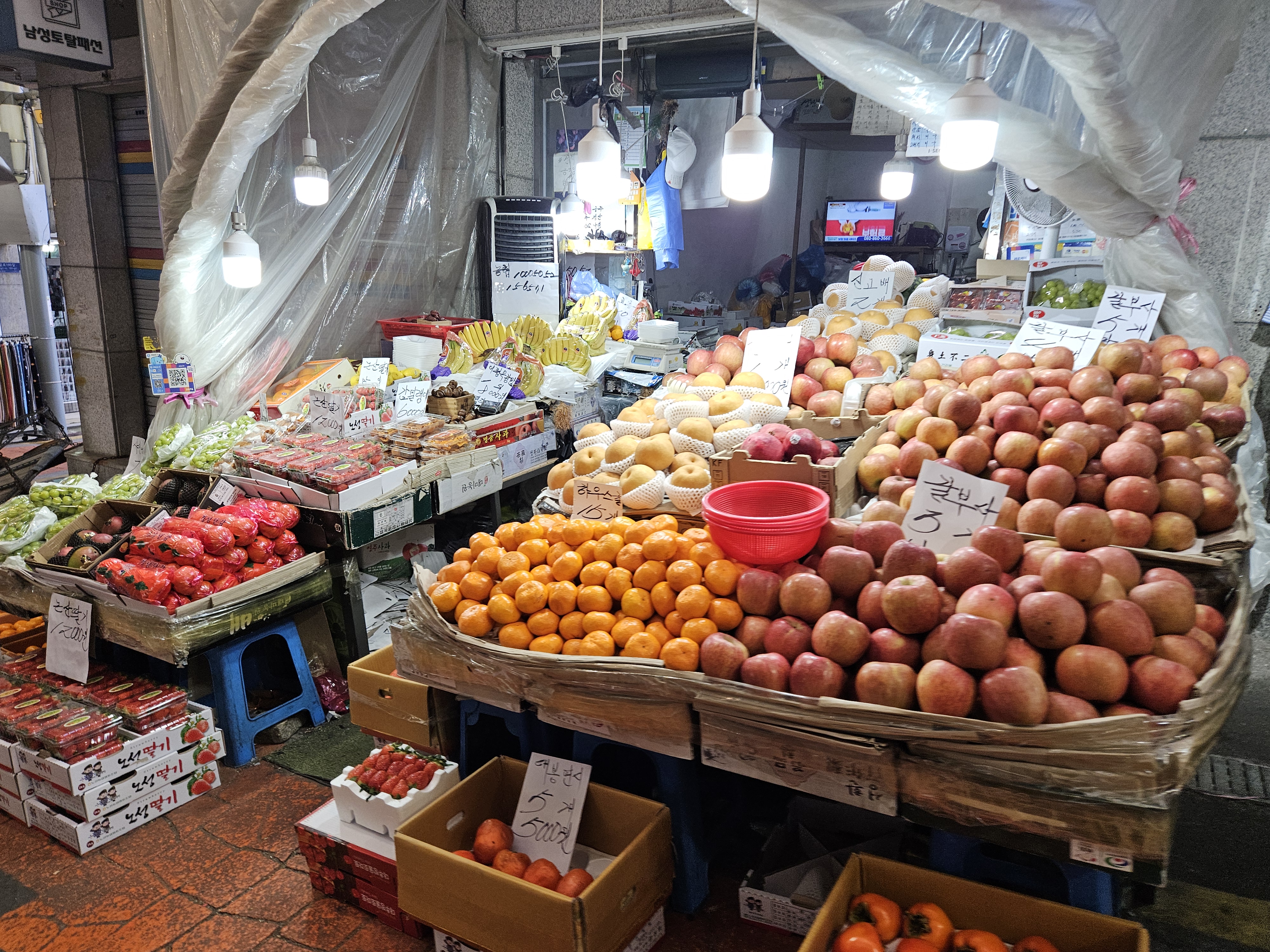 전통시장에서 빠질 수 없는 생선과 과일가게