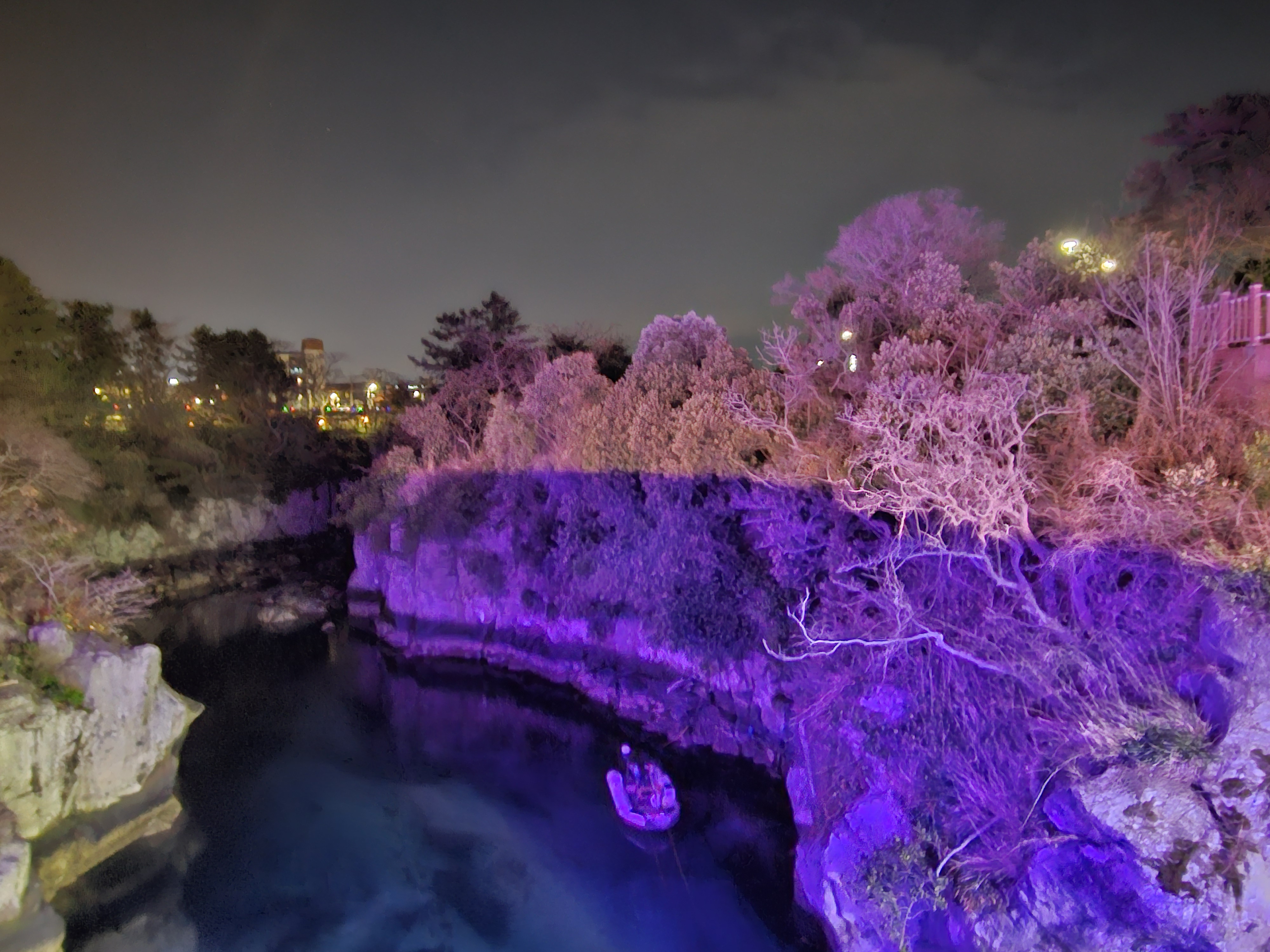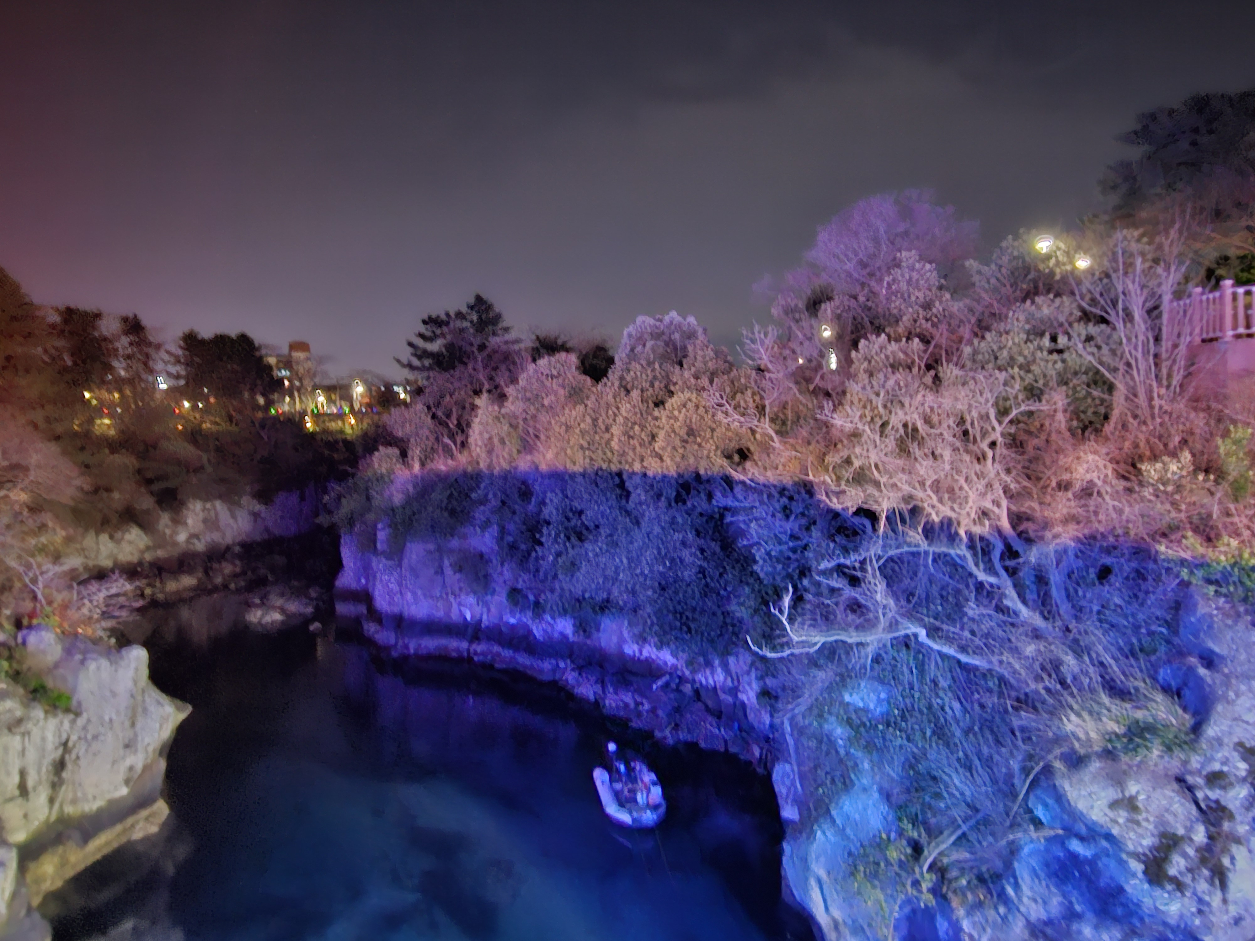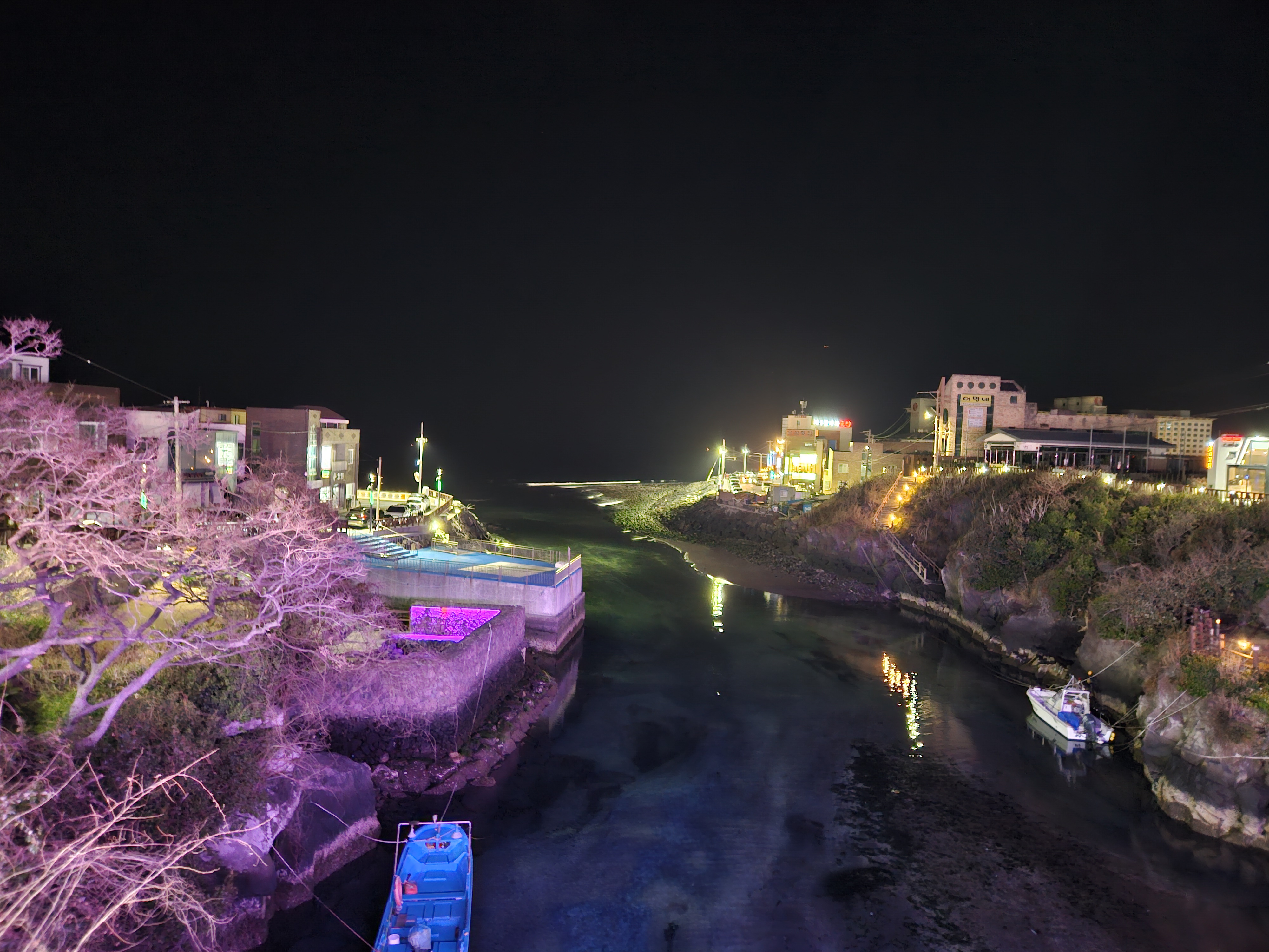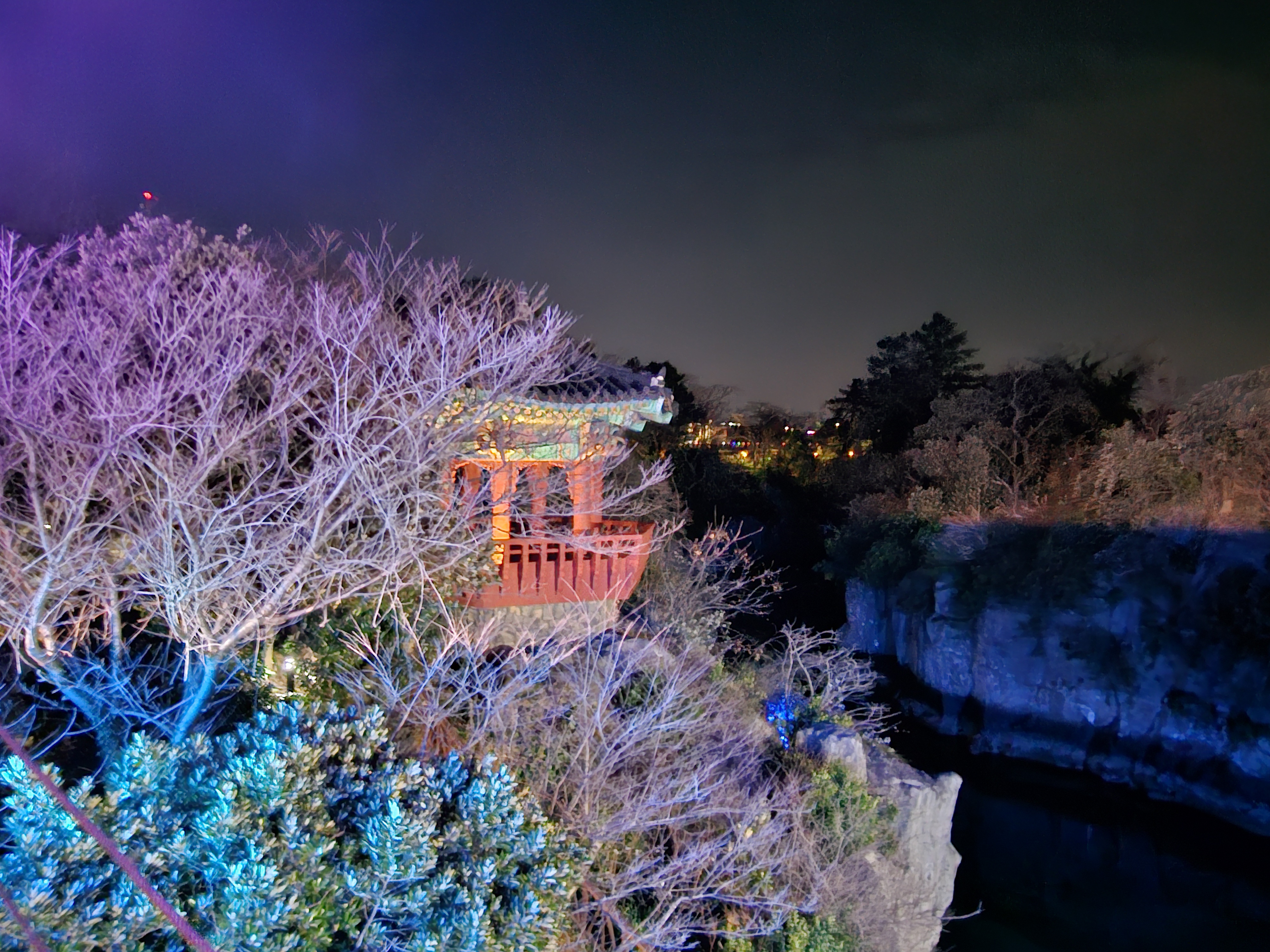 추우니까 시내와 가깝고 많이 걷지 않아도 아름다운 야경을 볼 수 있는 명소라고 하면 용연 구름다리가 아닌가 싶습니다.