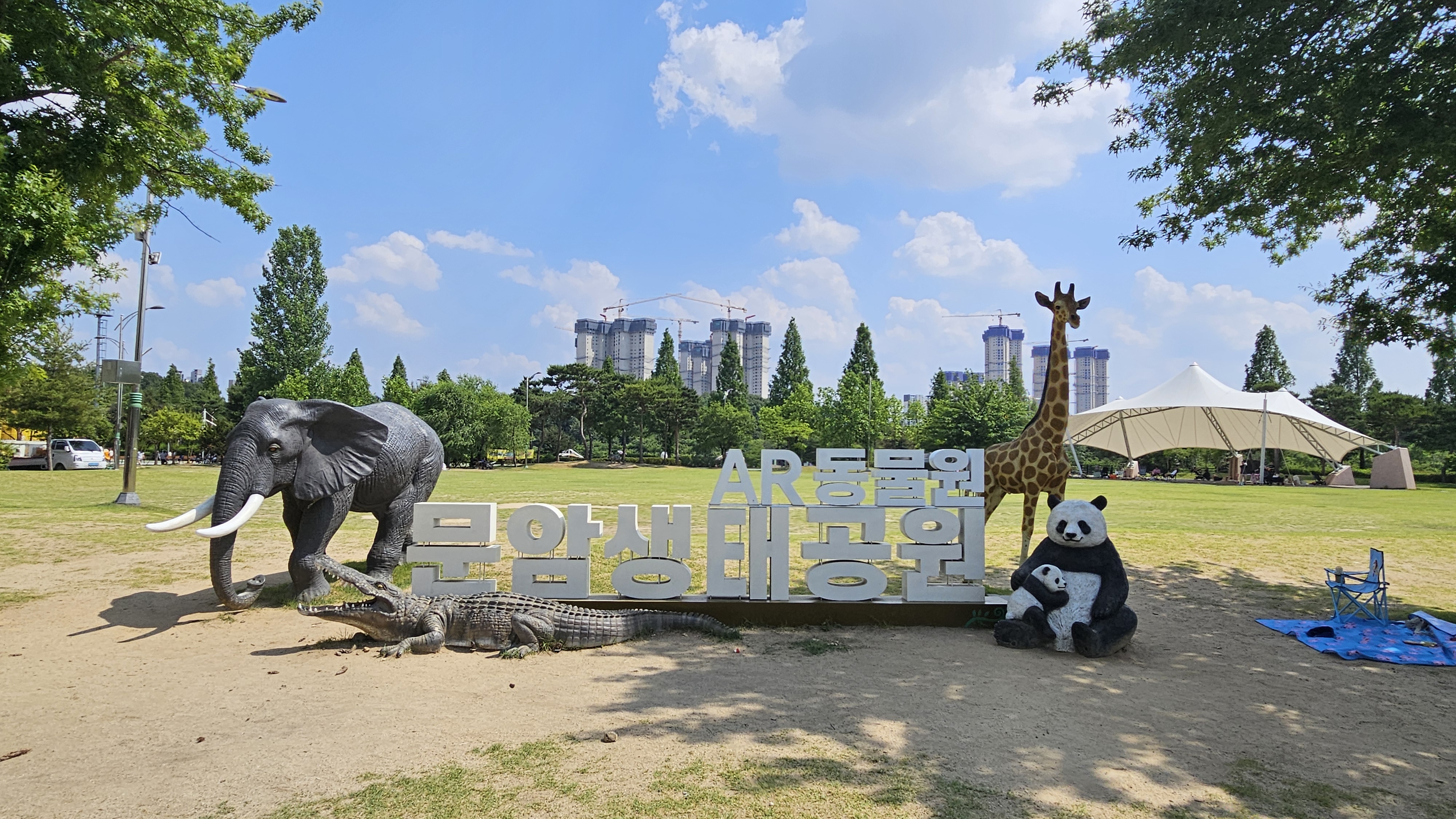 주차장을 기점으로 인공폭포와 어린이 놀이터, 바닥분수 AR동물원 포토존, 잔디광장과 야외공연장 등이 있고,