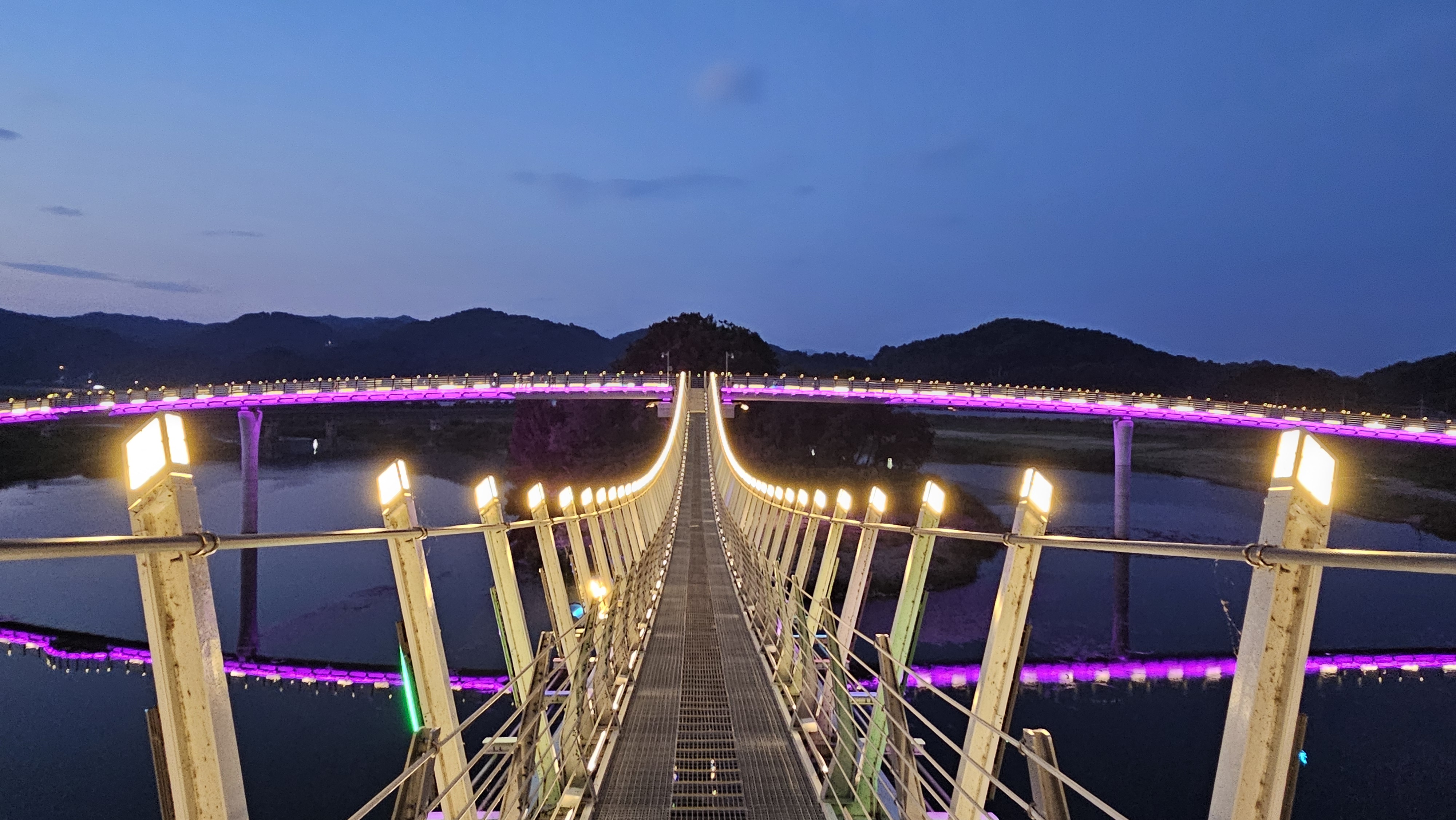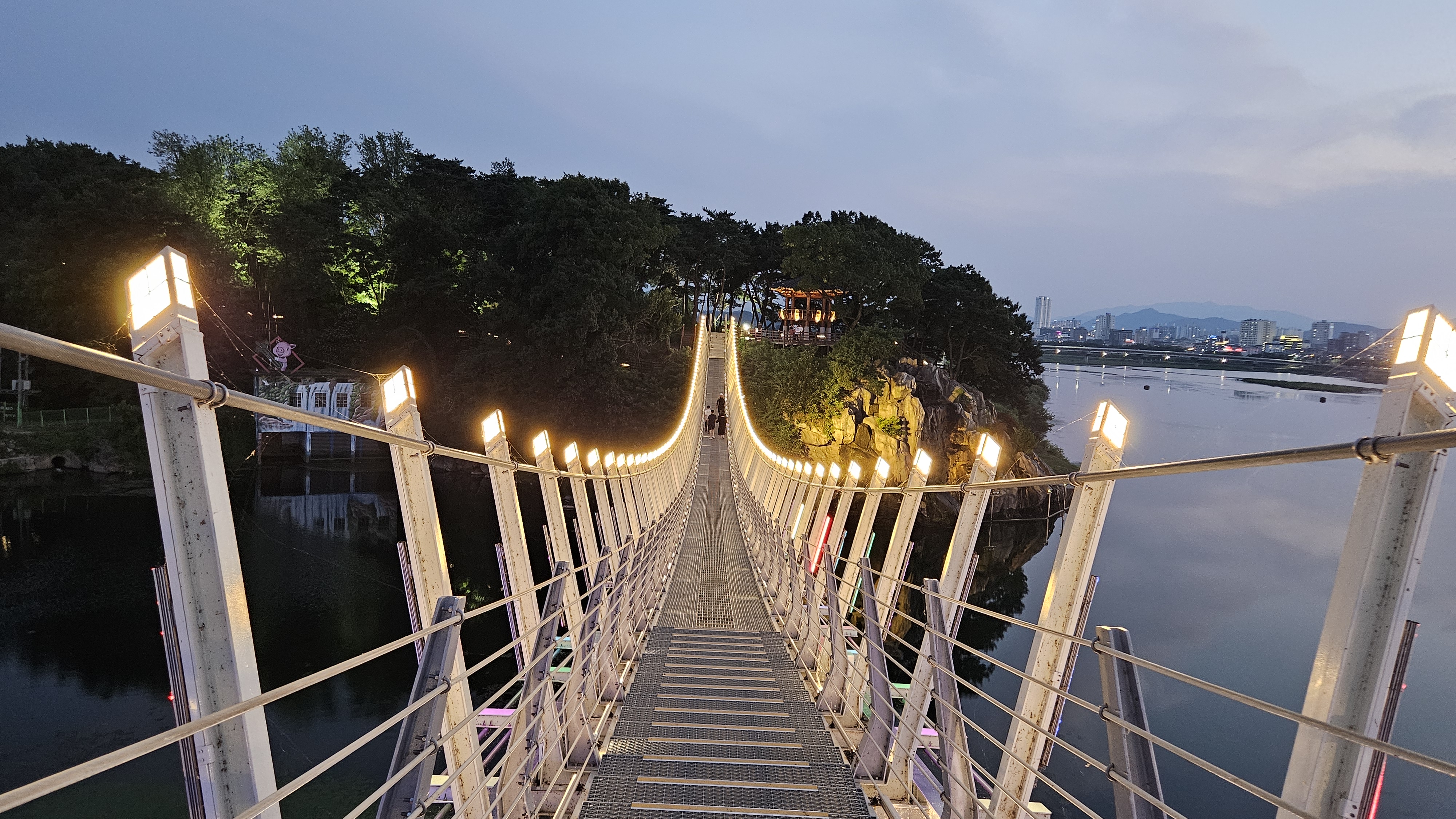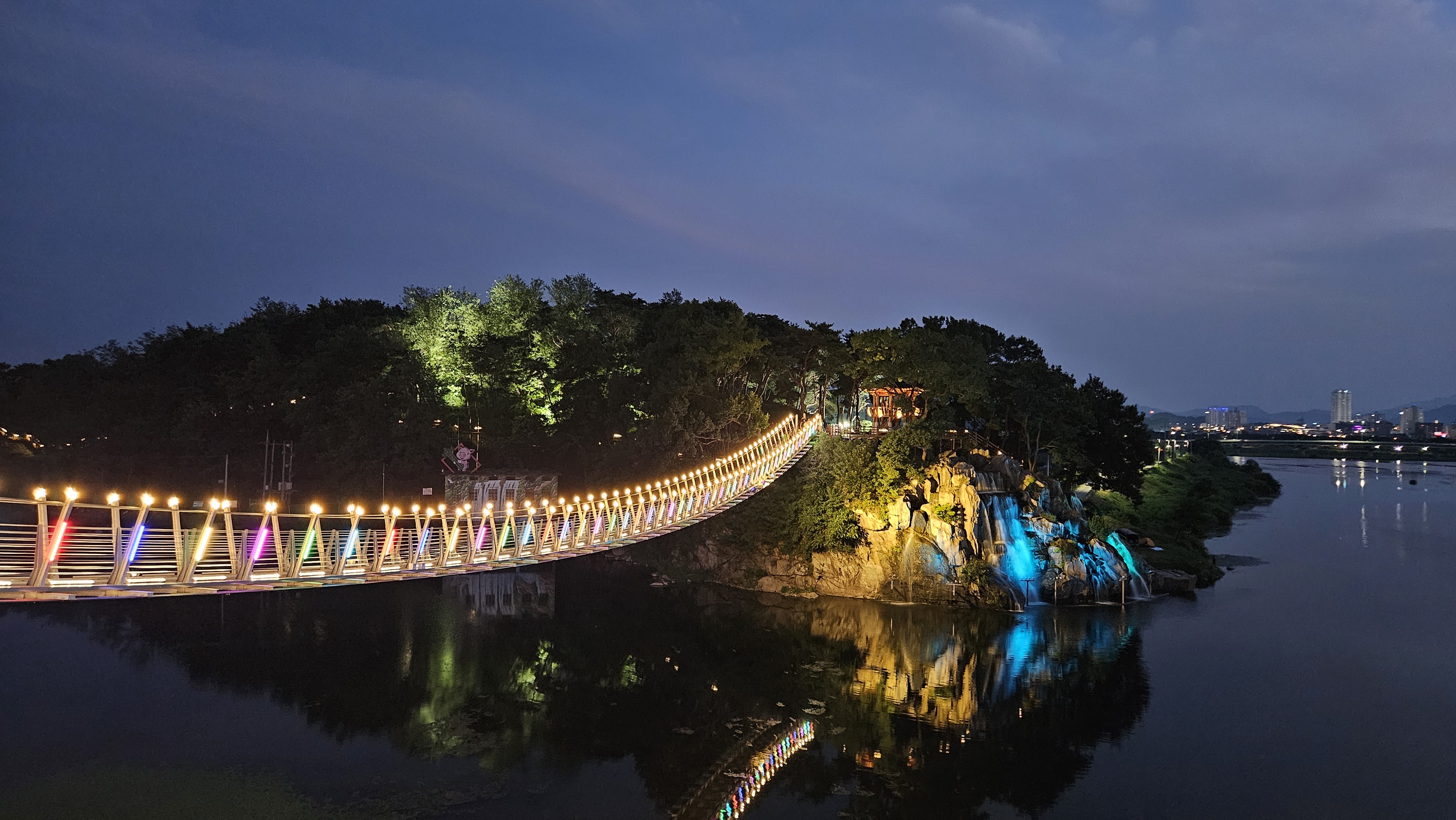 주변이 어두워지면서 점점 아름다워지는 영강 출렁다리